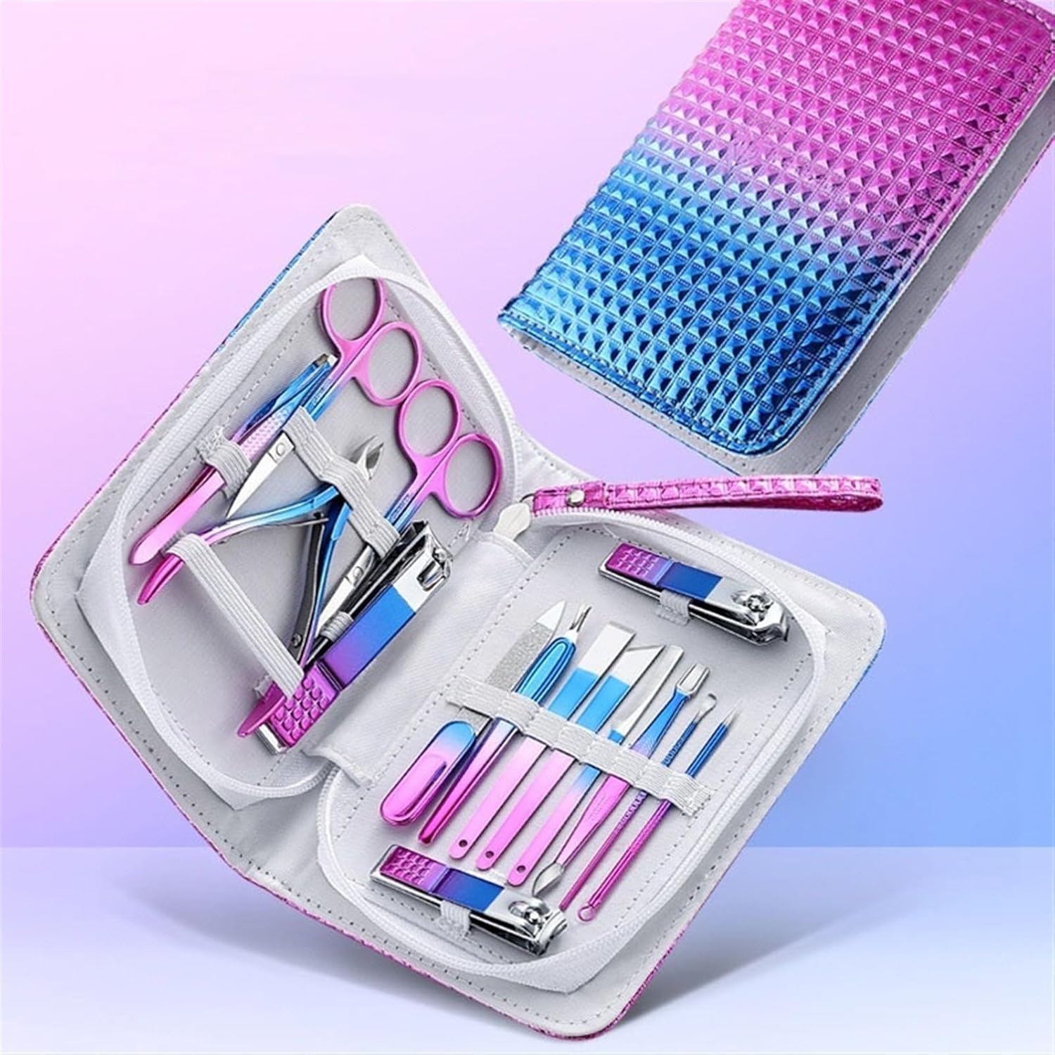 【Design ergonomico per il massimo comfort】 Questi strumenti per manicure sono realizzati con principi ergonomici per garantire un'esperienza di cura delle unghie confortevole e sicura a casa, rendendo la tua routine di cura senza sforzo. 【Costruzione in acciaio inossidabile di alta qualità】 Realizzato in acciaio inossidabile di alta qualità al 100%, il set per pedicure e tagliaunghie offre durata, nitidezza eccezionale e longevità per tutte le esigenze di cura delle unghie. 【Kit manicure completo】 Include 18 strumenti essenziali per la cura completa di mani, viso e piedi, fornendo tutto il necessario per una cura completa in un unico comodo set. PRESA E PRECISIONE OTTIMALI - Sviluppati per una maneggevolezza confortevole, gli strumenti hanno una presa ottimale. Le forbici per unghie affilate tagliano facilmente anche le unghie spesse e prevengono crepe e schegge. 【Confezione elegante e portatile】 Il set manicure presenta una straordinaria finitura iridescente e viene fornito in una borsa sottile e portatile con cerniera in pelle PU, che lo rende un'opzione regalo elegante e pratica.