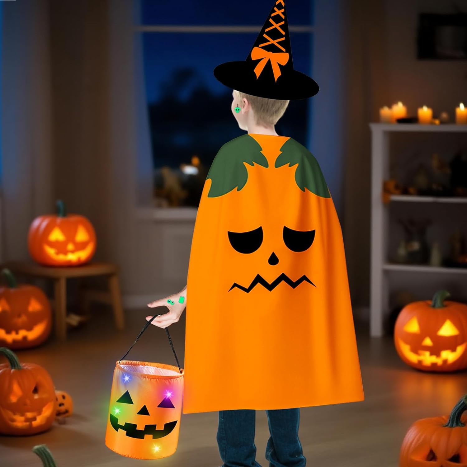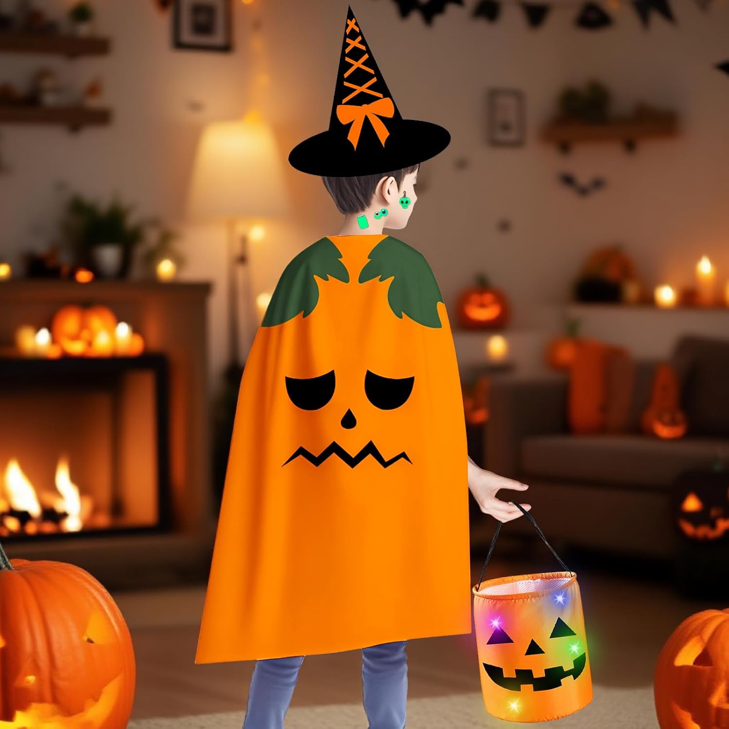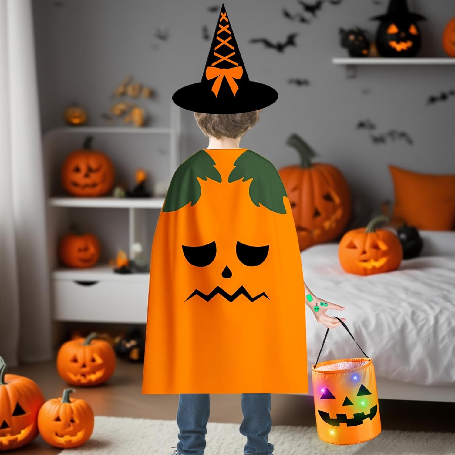 Descrizione prodotto Questo set di costumi di Halloween è stato sviluppato appositamente per i bambini e offre un'esperienza completa di Halloween. Con un mantello di zucca con espressione facciale piangente, un cappello magico, un sacchetto di zucca, luci colorate e adesivi che si illuminano al buio, il vostro bambino sarà al centro dell'attenzione di Halloween. 1. Materiali di alta qualità: il mantello, il cappello e la borsa a mano di zucca sono realizzati in tessuto di fibra sintetica di alta qualità, che garantisce comfort, traspirabilità e durata. Gli adesivi temporanei per tatuaggi sono realizzati in carta e colla di alta qualità e garantiscono un effetto realistico. 2. Dimensioni e design pratici: il mantello a forma di zucca è lungo 100 cm e dispone di un cordoncino per indossarlo e toglierlo facilmente. La borsa da zucca misura circa 30 cm x 25 cm e il cappello magico circa 32 cm x 38 cm. Questo set è adatto per bambini dai 3 ai 12 anni e una statura compresa tra 100 cm e 140 cm. 3. Accessori speciali: gli adesivi per tatuaggi che si illuminano al buio, i bambini possono decorare la loro pelle con motivi spaventosi, rendendoli più visibili di notte. Nella borsa della zucca possono essere inserite luci colorate per migliorare l'atmosfera di Halloween. Specifiche: - Collo zucca: lunghezza 100 centimetri, con coulisse. - Borsa da zucca: dimensioni circa 30 centimetri x 25 centimetri. - Cappello magico: dimensioni circa 32 cm x 38 cm. - Adatto per bambini: dai 3 ai 12 anni, taglia da 100 a 140 cm. Note importanti: - Si prega di controllare attentamente le misure prima di ordinare, per assicurarsi che siano adatte al vostro bambino. - Gli adesivi per tatuaggi che si illuminano al buio sono progettati per un uso temporaneo sulla pelle. Si prega di rimuoverli delicatamente per evitare irritazioni cutanee. - Le luci colorate devono essere utilizzate sotto la supervisione di un adulto per evitare incidenti. Contenuto della confezione: - 1 mantello di zucca di Halloween (con motivo viso piangente) - 1 cappello magico. - 1 borsa da zucca. - Luci colorate lunghe 1,10 metri (per decorare la borsa). - 2 adesivi che si illuminano al buio. Avviso di sicurezza No