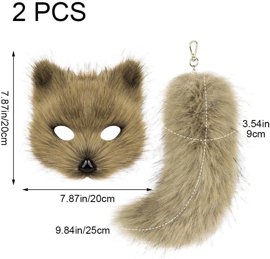 CONFORTEVOLE TRASPIRANTE: la nostra maschera di volpe presenta fori per gli occhi, naso e bocca aperti, garantendo una facile visione e respirazione. Il design confortevole e traspirante consente un'usura prolungata senza disagio. Utilizzo versatile: il nostro set di maschere a coda di volpe è adatto a vari usi, come decorazioni per borse, cosplay, feste in maschera, Halloween, feste in maschera e spettacoli teatrali. È un accessorio versatile che aggiunge divertimento ed eccitazione a qualsiasi evento. Design pratico e di dimensioni perfette: con dimensioni di circa 20 x 20 cm (7,87 x 7,87 pollici) per la maschera e 25 x 9 cm (9,84 x 3,54 pollici) per la coda, il nostro set di maschere a coda di volpe ha dimensioni perfette per la maggior parte di chi lo indossa. La coda presenta una chiusura di collegamento per indossarla facilmente. Può essere utilizzata anche come decorazione da appendere. Morbido: realizzato in plastica artificiale con pelliccia di animale, il nostro set di maschere a coda di volpe è resistente all'usura. la pelliccia è morbida e ispida, offrendo un'esperienza d'uso confortevole e traspirante senza irritazioni. Squisito realistico: il nostro set di maschere a coda di volpe è realizzato con materiali di qualità, con un design realistico dettagliato. La delicata pelliccia morbida, combinata con il design della semimaschera, nasconde efficacemente la tua identità, rendendola un ottimo accessorio per travestimenti e giochi di ruolo.