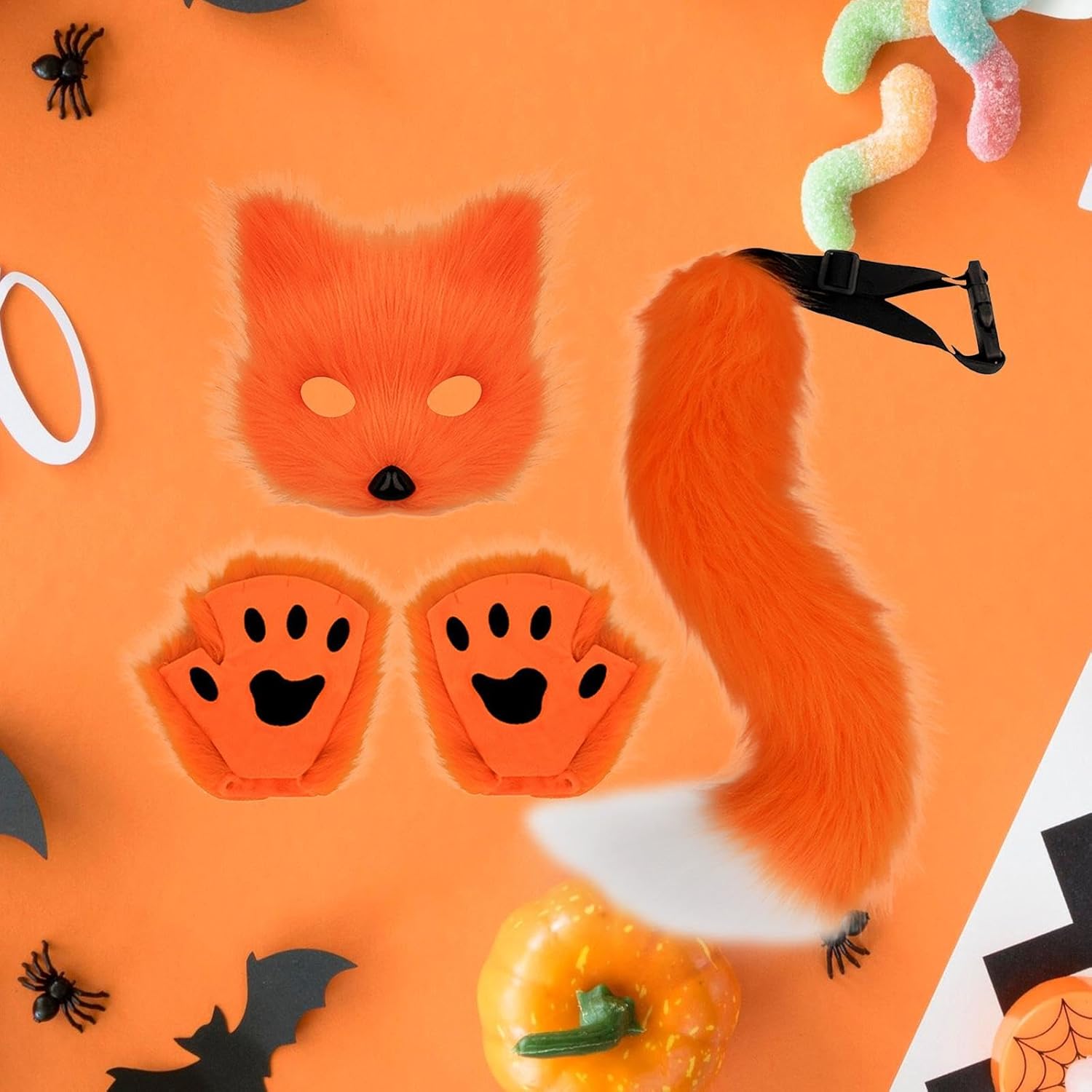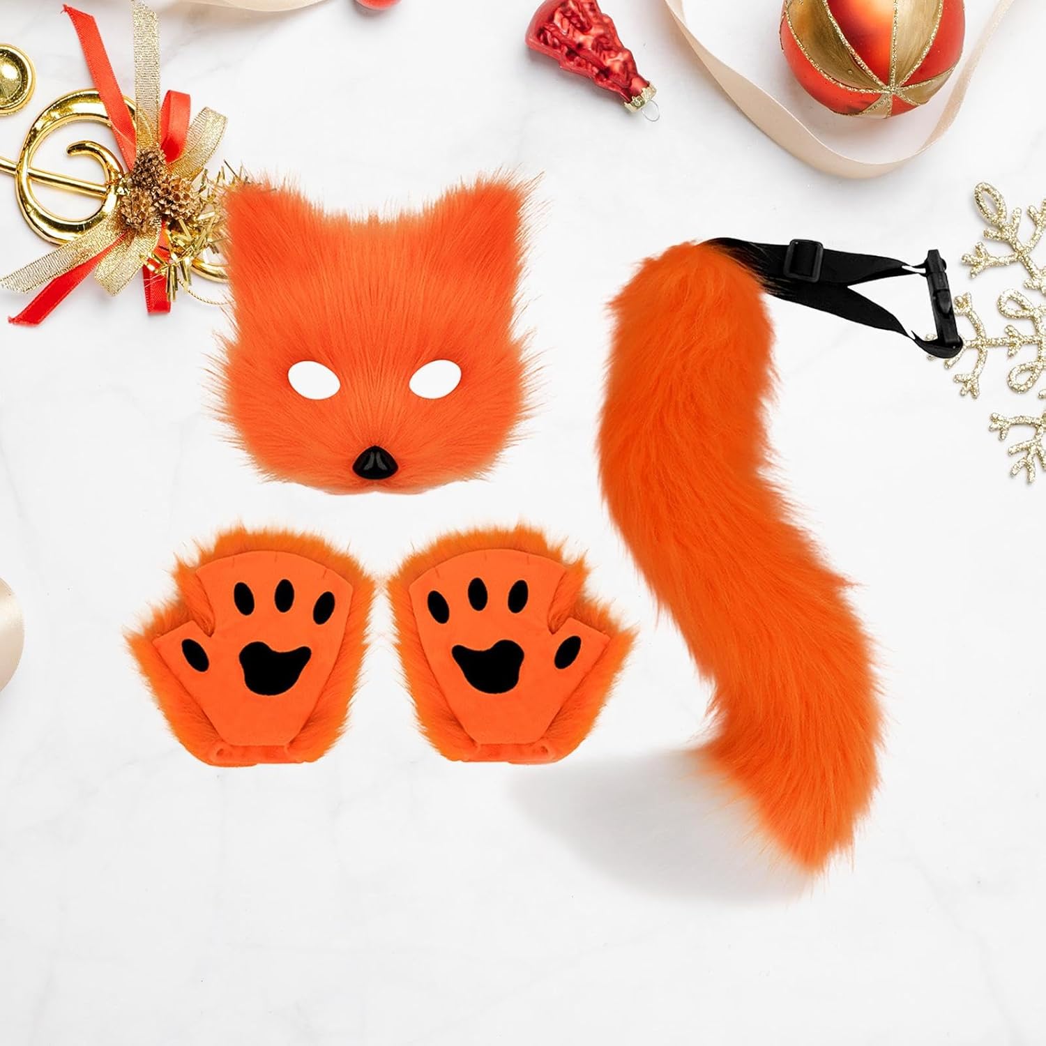 【Costume da festa】: il set di costumi presenta un design di maschera alla moda e unico, adatto a ragazzi, ragazze, bambini e adulti. 【Set di gioco di ruolo】: questo set include 1 coda, 1 maschera e 1 paio di guanti. È elegante e unico, ideale per il gioco di ruolo di Halloween. 【Materiale】: il costume da cosplay è realizzato in materiale di peluche di alta qualità, finemente dettagliato per un tocco confortevole e una lunga durata. 【Ampia applicazione】: il set di vestiti da cosplay, ideale per feste a tema, feste in maschera, eventi di gioco di ruolo, feste in maschera, celebrazioni di Halloween ecc. 【Facile da indossare】: il costume a tema animale, adatto alla maggior parte delle taglie per adulti e bambini. La coda è dotata di fibbia a sgancio rapido che può essere legata intorno alla vita.