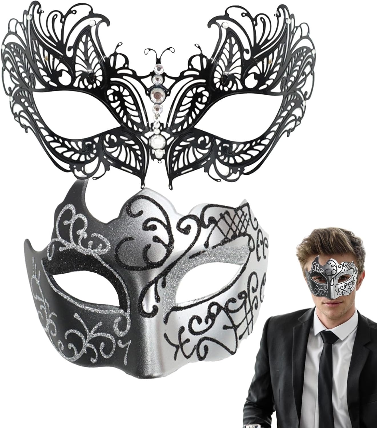 Descrizione del prodotto Aggiungi un tocco di fascino al tuo completo da ballo con questa maschera da ballo in pizzo. Questa maschera da uomo è appositamente ricoperta di polvere glitterata per metterti in risalto. È progettato per essere comodo da indossare e adatto a tutte le acconciature. Perfetto per le coppie da indossare insieme, conquisterà l'affetto di chi lo riceve. Materiale: PVC Dimensioni del prodotto: letto singolo: circa 17 x 11 cm circa. Peso unitario: ca. Peso: 34 g. Contenuto: 2 maschere di carnevale. Avviso di sicurezza Non applicabile