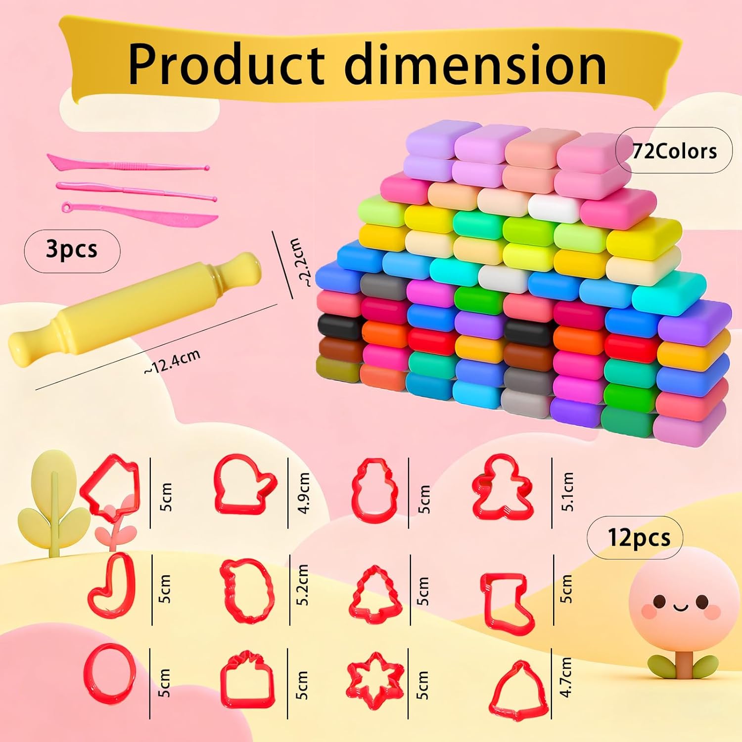 1. Set completo e ricco di accessori: Questo set di modellazione di pasta ad aria comprende 72 blocchi colorati, 12 stampi a tema natalizio, 1 mattarello e 3 strumenti per taglio e modellatura: una combinazione perfetta per iniziare a creare fin da subito. La pasta modellabile è leggera, morbida e non appiccica alle mani. I colori possono essere miscelati facilmente per ottenere nuove tonalità, stimolando la fantasia dei bambini. Con questo set ricco e creativo, i piccoli possono divertirsi 2. Materiale sicuro e confezione pratica: La pasta modellabile per bambini è realizzata con materiali sicuri, non tossici, privi di odori e rispettosi dell’ambiente. Ogni blocco è confezionato in bustine richiudibili trasparenti per prevenire l’indurimento. Dopo l’uso è sufficiente rimettere l’argilla nella busta per conservarla al meglio. È un prodotto ideale per l’utilizzo frequente e a lungo termine, perfetto per ogni bambino appassionato di attività creative. 3. Stimola la crescita e l'apprendimento: Questo kit di pasta modellabile ad aria asciugatura è pensato per incoraggiare lo sviluppo cognitivo e motorio dei più piccoli. Aiuta a migliorare la coordinazione occhio-mano, la motricità fine e la logica creativa. Grazie ai colori vivaci e alla manipolazione tattile, i bambini possono sviluppare sensibilità sensoriale e concentrazione, tenendosi lontani da schermi digitali e impegnandosi in attività costruttive e formative. 4. Facile da usare e versatile: L’argilla modellabile asciuga all’aria in modo naturale, senza bisogno di forni o strumenti speciali. È facilmente modellabile, elastica, morbida e resistente. I bambini possono piegarla, allungarla e mescolare i colori con facilità. Una volta asciutta, mantiene la forma creata, ideale per realizzare piccoli capolavori da conservare nel tempo. Ottimo strumento didattico per casa e scuola, perfetto anche per principianti. 5. Ampia gamma di utilizzi e regali creativi: Il set di pasta modellabile aria asciugatura è adatto a bambini, adulti e hobbisti. Perfetto per creare gioiellini, alimenti in miniatura, fiori, animali e molto altro. Ideale per attività scolastiche, laboratori creativi, feste di compleanno e momenti di gioco genitori-figli. È un regalo originale per Natale, compleanni, ricorrenze o premi scolastici, che unisce divertimento e creatività in un’unica soluzione.