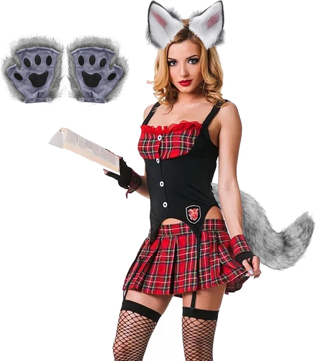 Set Orecchie Coda E Guanti Da Lupo | Kit Travestimento Lupo per Ragazze | Accessorio Per Cosplay Facile Da Indossare Per Spettacoli Teatrali Carnevale E Feste In