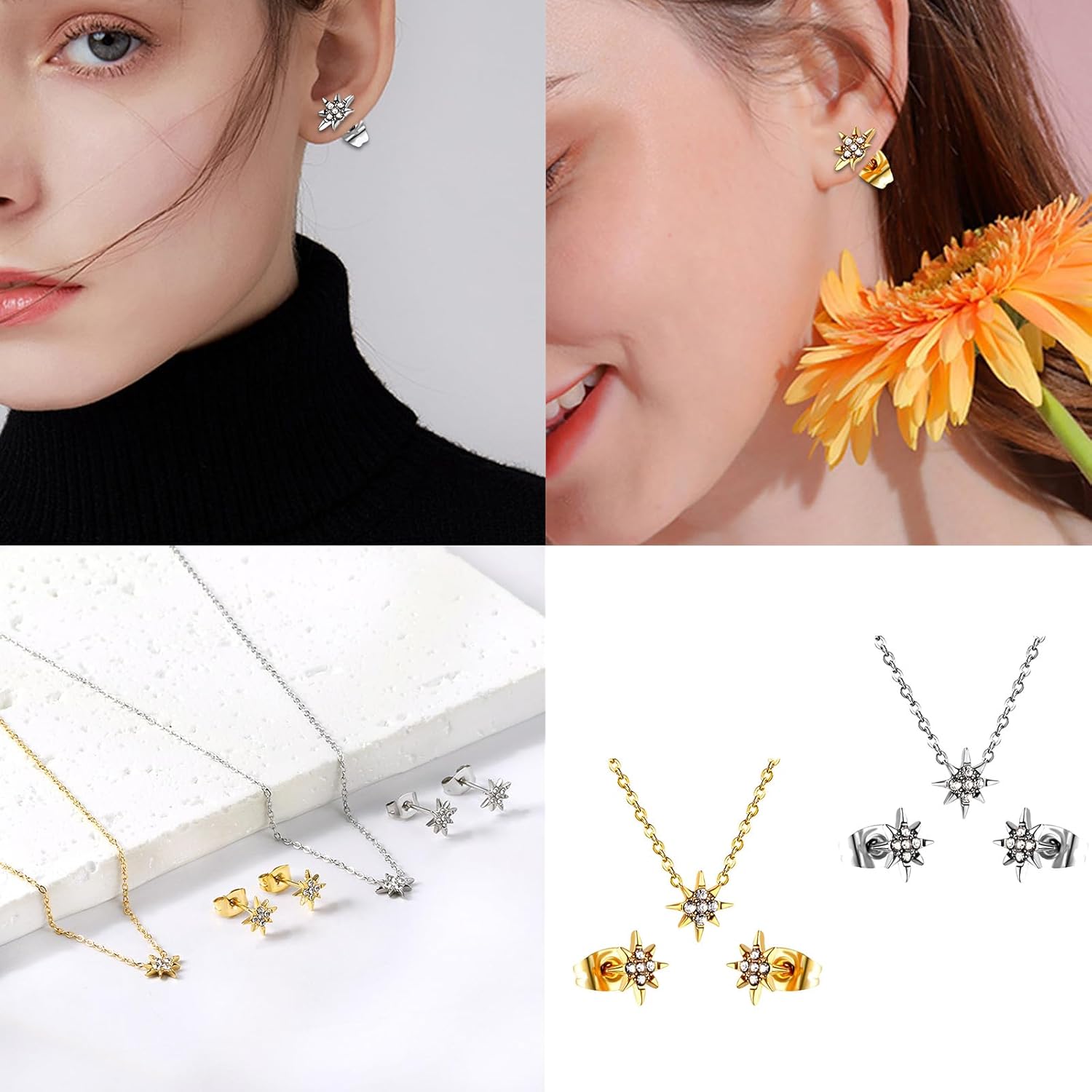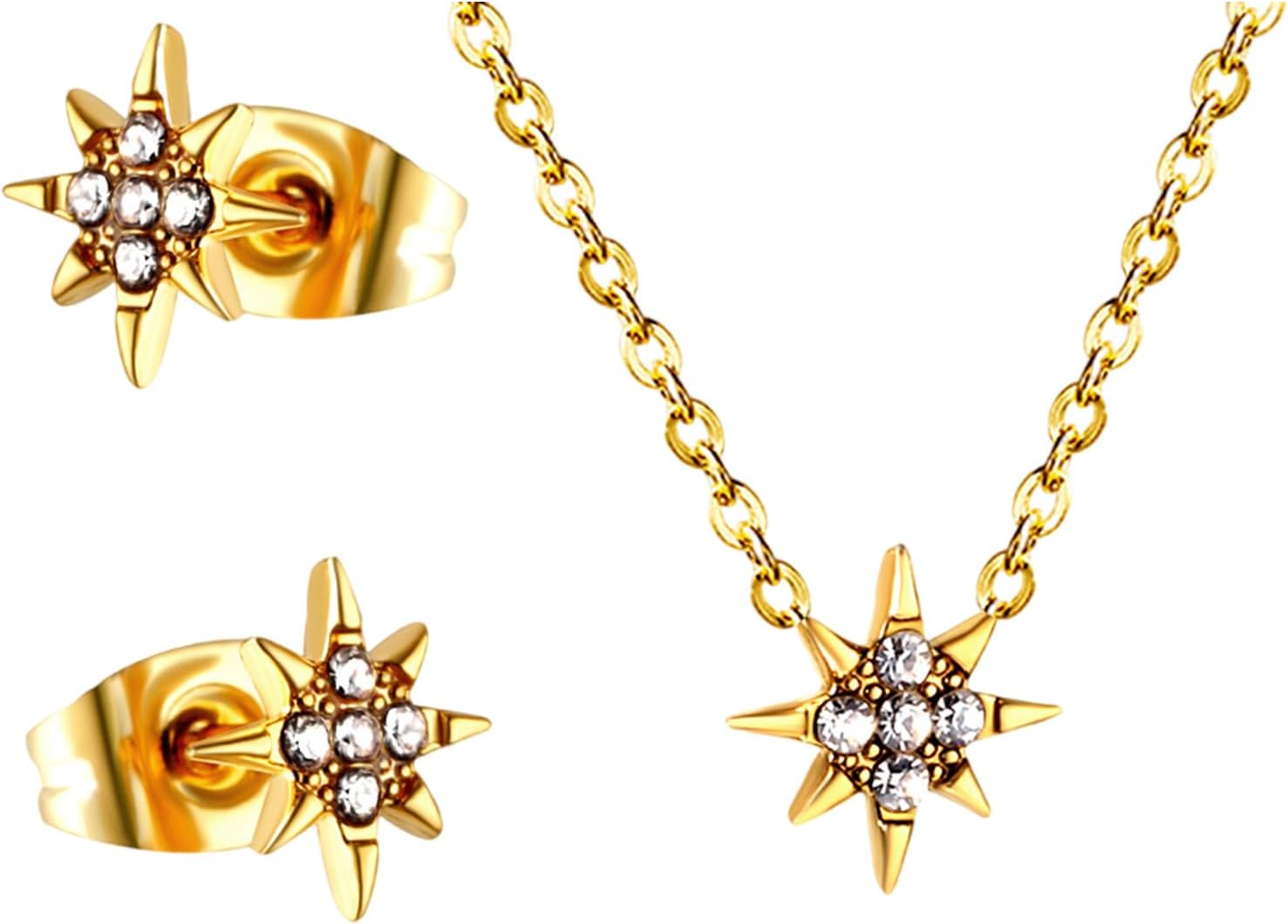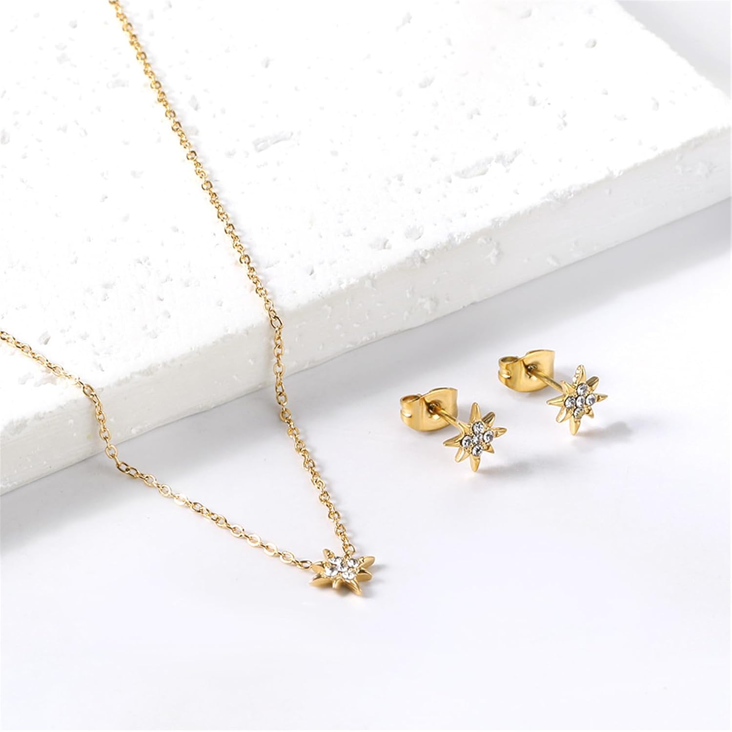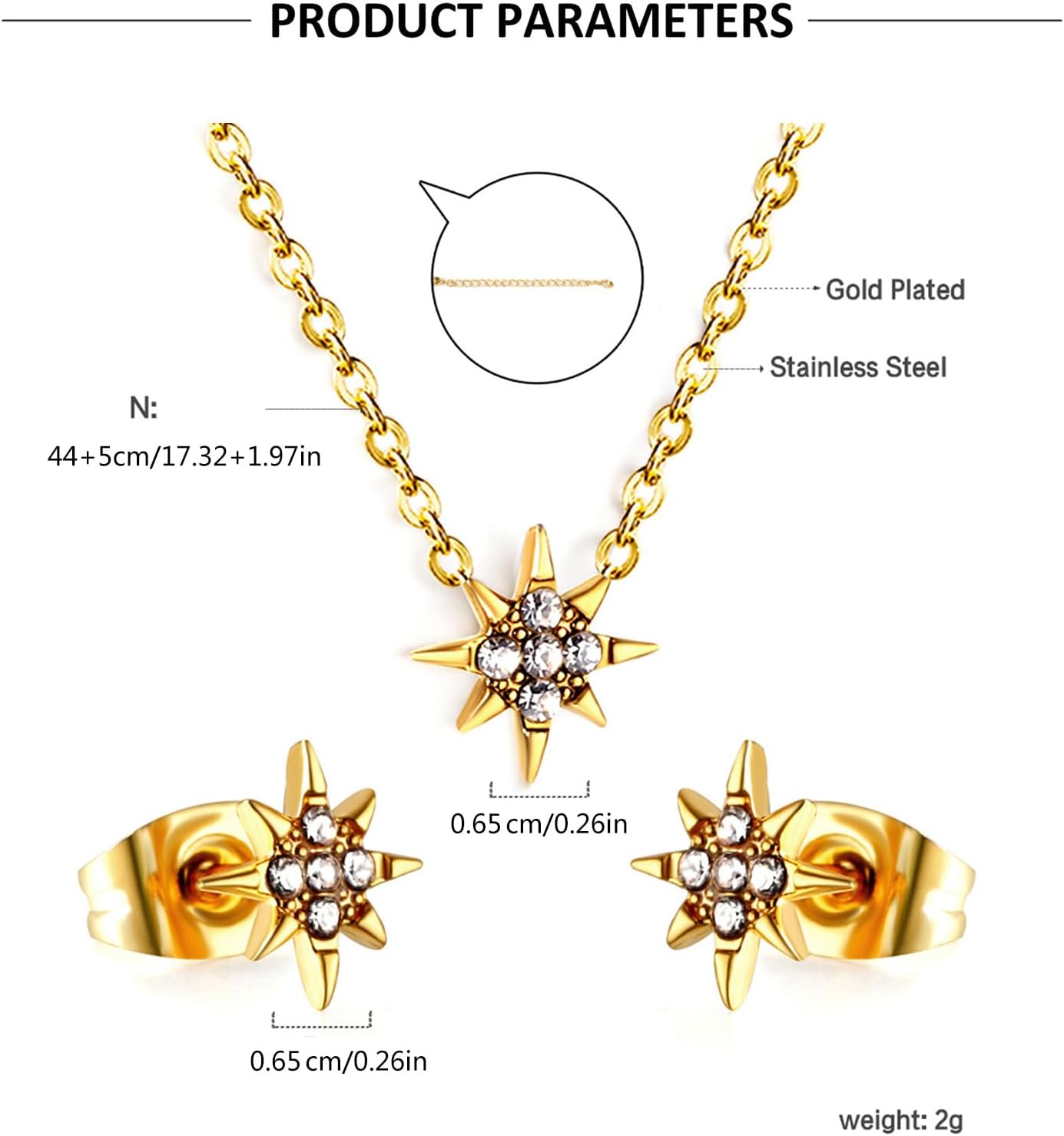 Set orecchini e collana con ciondolo a stella in acciaio inossidabile, gioielli con scintillanti cristalli accessori da ufficio Caratteristiche: Scopri l'eleganza con nostro set orecchini e collana in acciaio inossidabile con stella, progettato per aggiungere un tocco semplicità artistica a qualsiasi outfit. Realizzato in acciaio inossidabile, questo set gioielli è resistente all'ossidazione e all'usura, garantendo bellezza e durata nel Perfetto per le donne che cercano esprimere proprio stile unico, le donne professioniste che desiderano accessori eleganti e studenti. Adatto a varie occasioni, in ufficio, per riunioni sociali o per gite quotidiane, questo set abbina perfettamente all'abbigliamento casual che a quello formale. I disegni a stella simboleggiano buona fortuna e benedizioni, rendendolo un regalo significativo per amici e in occasione compleanni, vacanze o celebrazioni speciali. Specifiche: Componente: acciaio inossidabile Misurare: Lunghezza della collana: 44+5 cm/17,32+1,97 pollici Pendente della collana: 0,65 cm/0,26 pollici Orecchini: 0,65 cm/0,26 pollici Colore:Oro/Argento Peso: 12 g La confezione include: 1 set gioielli in acciaio inossidabile Nota: 1.Si prega consentire errori 1-2 cm dovuti alla misurazione manuale, assicurarsi che non ti dispiaccia prima ordinare. 2.A causa delle differenze tra i diversi monitor, l'immagine potrebbe non riflettere colore effettivo articolo