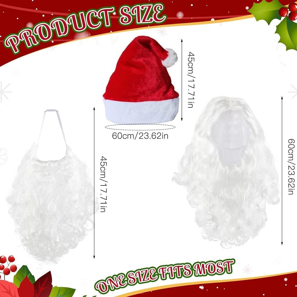 Descrizione prodotto Caratteristiche del prodotto: Questo kit di accessori per costume da Babbo Natale 3 in 1 include barba, parrucca e cappello da Babbo Natale per adulti. La barba bianca in capelli sintetici con cordino elastico, la parrucca riccia e il cappello rosso da Babbo Natale in morbido velluto rendono il tuo costume particolarmente autentico. Ideale come accessorio per un costume da Babbo Natale a Natale, per San Nicola o per una festa di Natale. Specifiche: - Barba di Babbo Natale: ca. 35 x 38 cm, capelli bianchi, sintetici - Parrucca di Babbo Natale: ca. 50 cm, riccio, borsa a rete con elastico - Cappello da Babbo Natale: ca. 33 x 42 cm, velluto rosso con finiture bianche - Taglia: taglia unica per adulti, adatta per uomo e donna La confezione include: - 1 barba da Babbo Natale - 1 parrucca da Babbo Natale - 1 cappello da Babbo Natale Suggerimenti per l'uso: Perfetto per le feste di Natale, feste in costume di San Nicola, carnevale o martedì grasso. Questo costume da Babbo Natale è la scelta migliore per travestirsi da Babbo Natale e diffondere lo spirito festivo. È perfetto anche come accessorio fotografico, costume di San Nicola per adulti o idea regalo per il periodo dell'Avvento. Avviso di sicurezza Nessuno