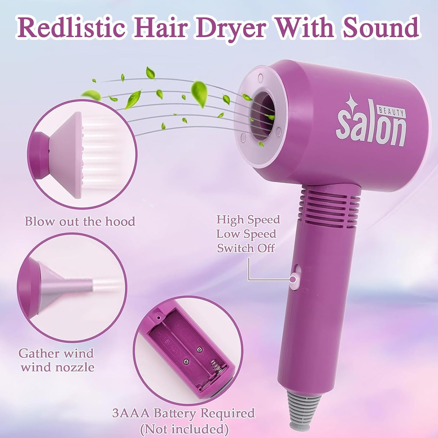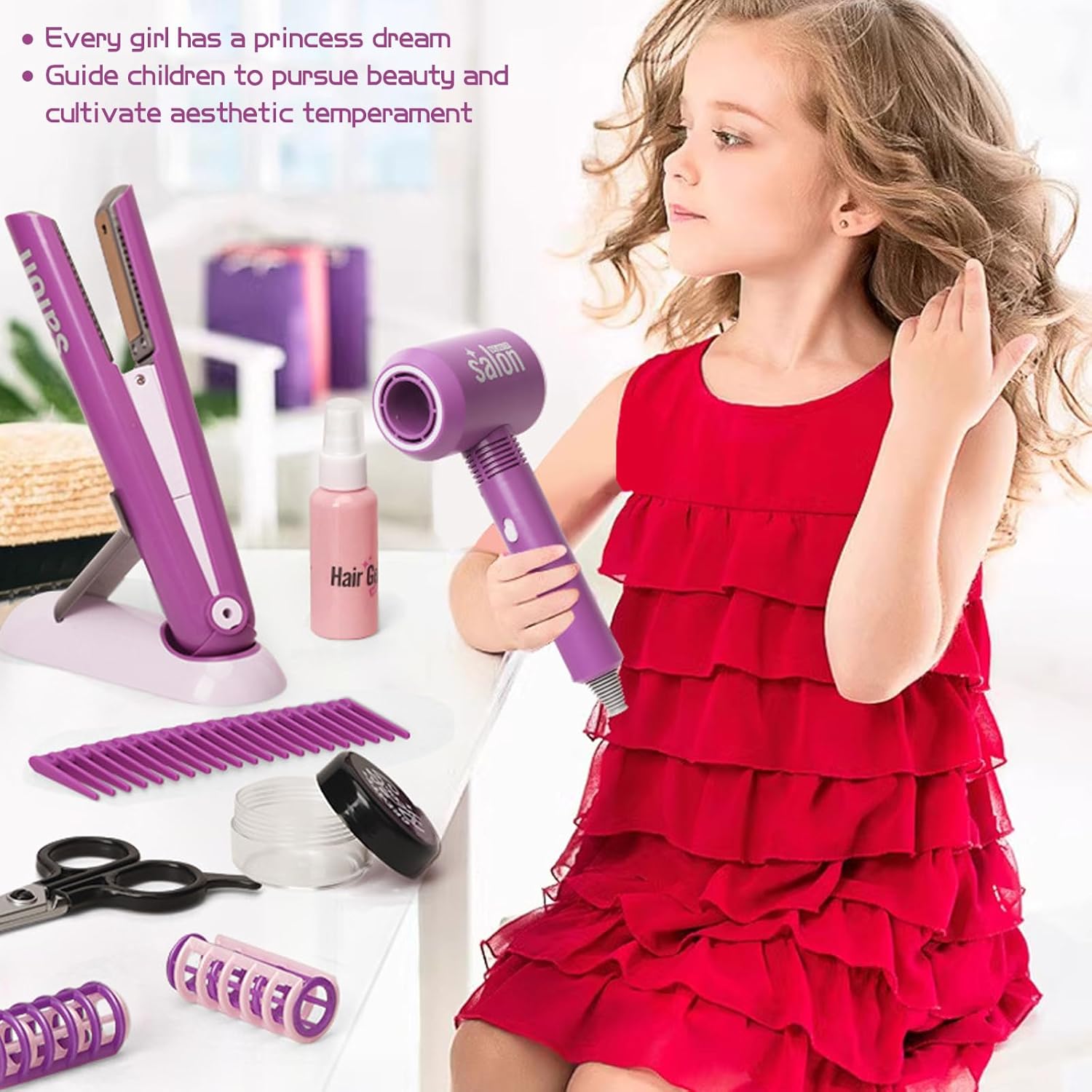 【Set completo per acconciature】:questo set di giocattoli per salone di bellezza in confezione regalo include un asciugacapelli,una piastra per capelli,una borsa per attrezzi da salone,2 bigodini,2 pettini,2 forbici per acconciature,2 fermagli per capelli,un flacone spray, un diffusore e un concentratore. Questo elegante set da stilista di bellezza contiene tutti gli strumenti e gli accessori di cui le bambine hanno bisogno per giocare al salone di bellezza da principessa a casa o a scuola. 【Caratteristiche del set parrucchiere per bambini】 : Asciugacapelli che non solo produce suoni realistici di asciugatura, ma crea anche un flusso d'aria per un'esperienza coinvolgente. La piastra per capelli emette anche suoni realistici e si illumina durante l'uso, aggiungendo un tocco di magia alle avventure di styling dei capelli. Questo set da gioco per salone di bellezza è realizzato in plastica ABS di alta qualità per sicurezza e durata. 【Set di educazione precoce】 : Il gioco di ruolo come parrucchiere o cliente è un modo eccellente per consentire ai bambini di sviluppare importanti abilità di vita. Intrattieni tuo figlio per ore; lascia che usino la loro creatività e ingegno attraverso questo fantastico set da parrucchiere. Non solo tuo figlio potrà divertirsi, ma potrà anche sviluppare una comprensione dei prodotti di bellezza e sviluppare importanti competenze chiave. 【Piccola parrucchiera】:Le ragazze adorano imitare le routine di toelettatura delle loro madri, e questo set di giocattoli per salone di bellezza consente loro di fare proprio questo.I giocattoli da parrucchiere per bambini sono giocattoli ideali per capelli e trucco per giochi di finzione, lascia che le ragazze imitino il trucco e imparino a pettinarsi capelli per creare un look unico nei loro cuori. 【Regalo ideale per ragazze】: Meravigliosi regali di vacanza o di compleanno per ragazze.Il nostro set da trucco educativo porta ai bambini giochi di ruolo divertenti, incoraggia la creatività, migliora le capacità motorie e insegna loro le basi dell'acconciatura. Perfetto per compleanni, regali di Natale, pigiama party per ragazze, attività in classe e altre occasioni speciali! È consigliato dai 3 anni in su.