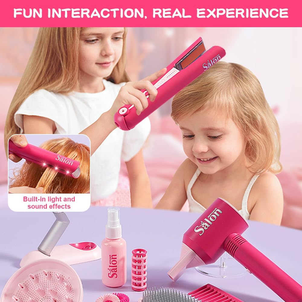 【Materiale sicuro】 Il set da parrucchiere per bambini è realizzato in plastica ABS di alta qualità. Questa plastica atossica e resistente agli urti garantisce che i bambini possano giocare con il set in tutta sicurezza. Il design leggero e la superficie facile da pulire favoriscono l'igiene. 【Set per la prima educazione】 Il set da parrucchiere per bambini è un modo eccellente per consentire ai bambini di sviluppare importanti abilità di vita. lascia che usino la loro creatività e ingegno attraverso questo fantastico set da parrucchiere. Non solo tuo figlio potrà divertirsi, ma potrà anche sviluppare una comprensione dei prodotti di bellezza e sviluppare importanti competenze chiave. 【Set simulato per salone di bellezza】 Il set da parrucchiere per bambini è un set completo con giocattoli simulati. Non contiene liquidi, pasta o polvere. Tutte le provette sono vuote e non contengono liquidi. È consigliato per bambini dai 3 anni in su. I set da parrucchiere per bambini sono progettati per il gioco interattivo, consentendo ai bambini di giocare di ruolo e fingere. I bambini possono simulare esperienze reali. 【Set da parrucchiere】 Il set da parrucchiere per bambini sarebbe il regalo perfetto per le ragazze. Viene fornito con 22 set da parrucchiere giocattoli per bambini: 1 asciugacapelli con 2 testine diverse, 1 piastra per capelli, 1 grembiule da parrucchiere, 2 forbici, 2 pettini, 2 bigodini, 2 elastici per capelli, 11 accessori per acconciature, il set da parrucchiere per bambini contiene tutti gli strumenti e gli accessori di cui le bambine hanno bisogno per giocare al salone di bellezza da principessa a casa o a scuola. 【Regalo ideale per ragazze】 Il set da parrucchiere per bambini è un fantastico regalo di festa o di compleanno per ragazze. Il set da parrucchiere per bambini offre divertenti giochi di ruolo per i bambini, promuove la creatività, migliora le capacità motorie e insegna loro le basi dell'acconciatura. Perfetto per compleanni, regali di Natale, pigiama party per ragazze, attività in classe e altre occasioni speciali! Consigliato per bambini dai 3 anni in su.