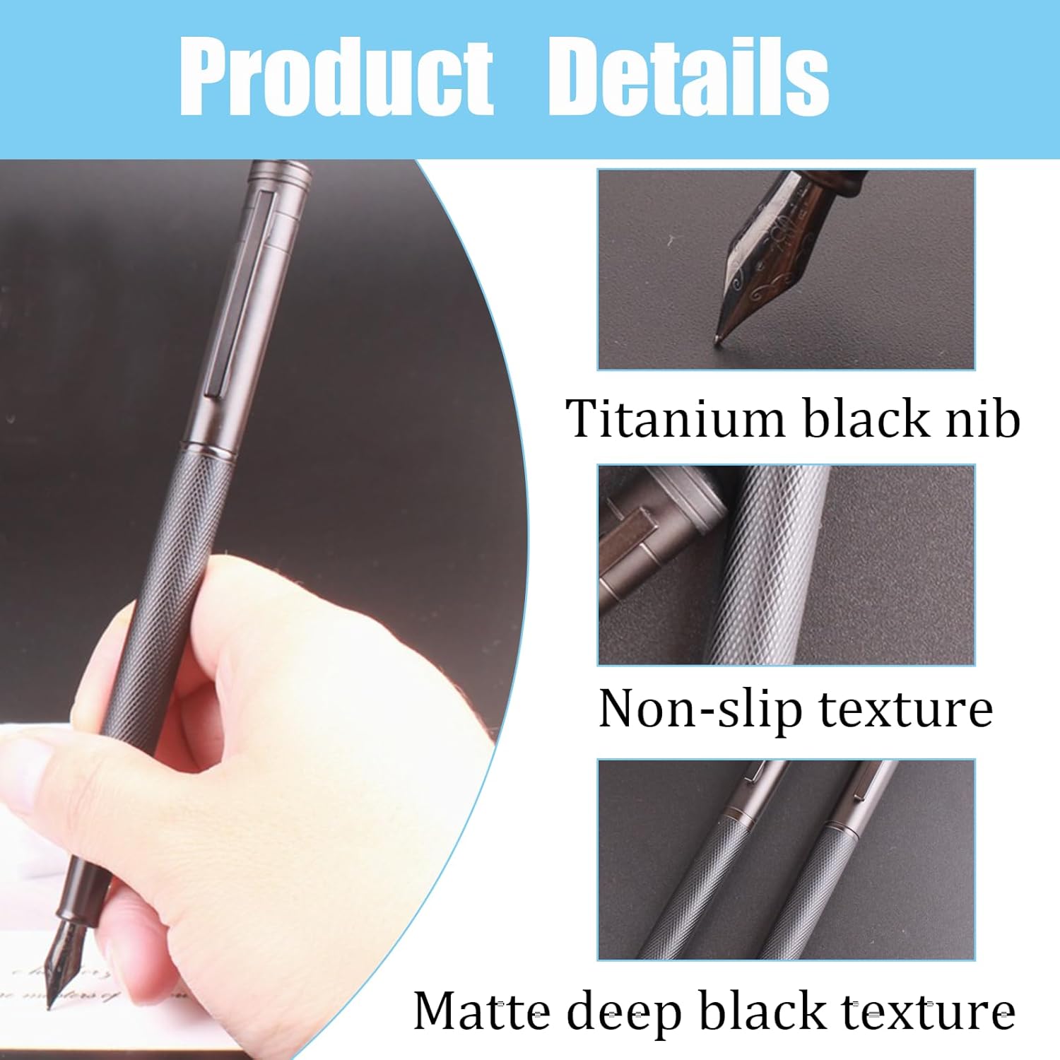 MATERIALE Questa penna è dotata di un'esclusiva punta in acciaio nero titanio nero per offrire un'esperienza di scrittura senza pari. Esprimi te stesso attraverso una scrittura senza sforzo: costruita per fornire un peso delicato adatto sia agli utenti mancini che a quelli destrimani. Questo set di penne stilografiche sarà il tuo miglior strumento di scrittura da portare ovunque. Con le linee morbide e il flusso uniforme, design premium: ogni penna stilografica nera conferisce a ogni penna stilografica nera un nero stratificato con nero opaco e profondo. Il design splendidamente aerodinamico di questa splendida penna la fa sembrare una spada da samurai che ti accompagna attraverso la Foresta Nera Acquista con fiducia: tutti i nostri inchiostri per penne stilografiche sono testati sia per l'equilibrio che per l'esperienza a prova di fuoriuscite per garantire un flusso di inchiostro confortevole e coerente Un'idea regalo squisita: le penne stilografiche sono un ottimo regalo per professionisti, manager e dirigenti nuovi e avanzati in qualsiasi settore