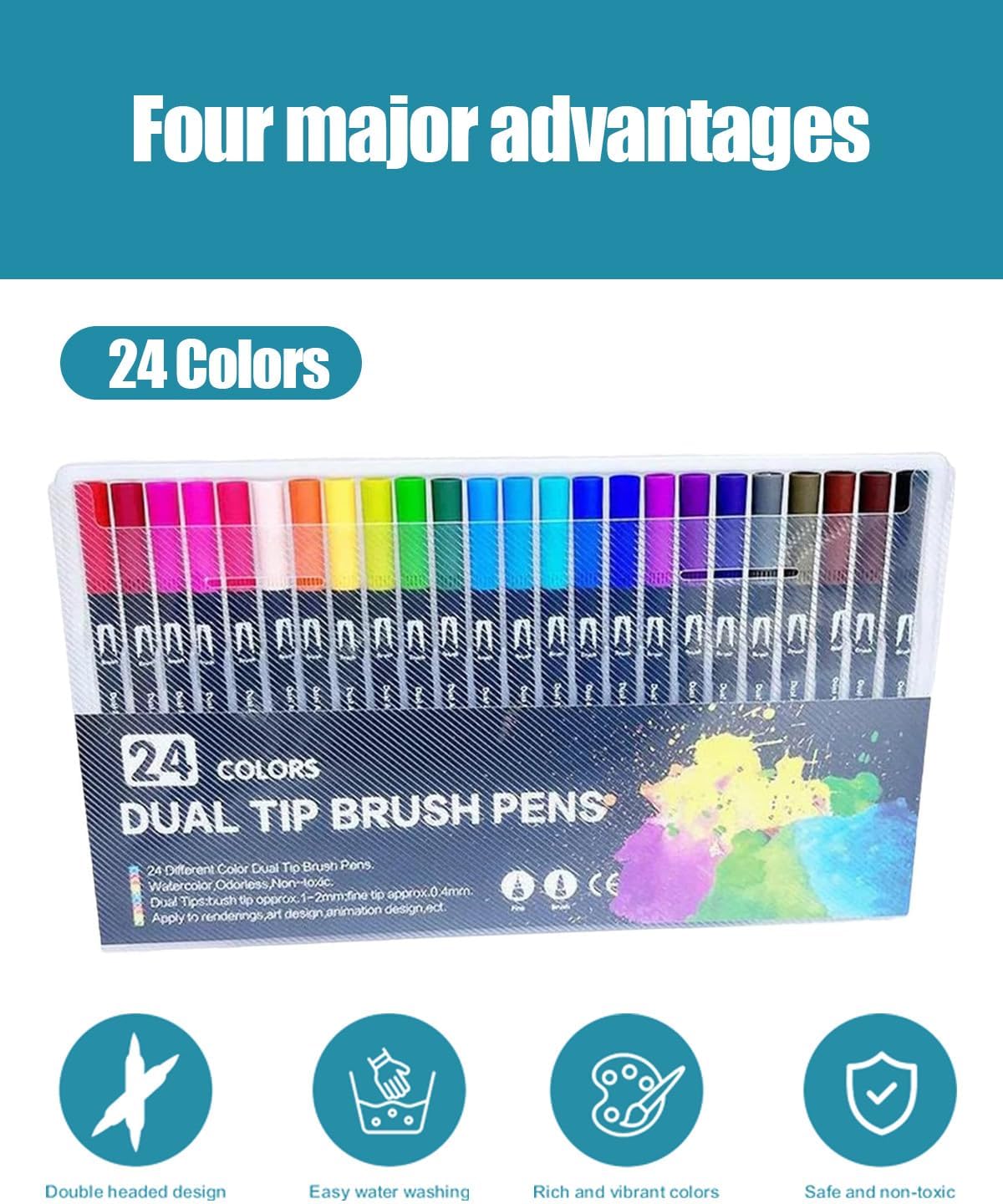24 splendidi colori: le penne colorate offrono 24 opzioni di colore uniche. Goditi il divertimento di questi pennarelli Pentre a doppia testa multicolori e avanzati: il nostro pennarello è composto da un pennarello morbido da 1-4 mm e un pennarello da 0,4 mm. Le penne colorate a doppia testa rendono la pittura e la scrittura più interessanti. Qualità eccellente: il set di pennelli a doppia testa è dotato di inchiostro ad asciugatura rapida, che ti consente di disegnare o descrivere facilmente senza preoccuparti di sbavature o sbavature di inchiostro. Materiali di sicurezza: le penne colorate sono inodori, rispettose dell'ambiente e non tossiche. Inchiostro colorante a base acqua. L'inchiostro può essere facilmente lavato via con acqua Bellissima confezione, un ottimo regalo: la raffinata scatola portaoggetti assicura che la penna sia pulita e ordinata per un facile trasporto: un ottimo regalo per Natale, laurea o compleanno