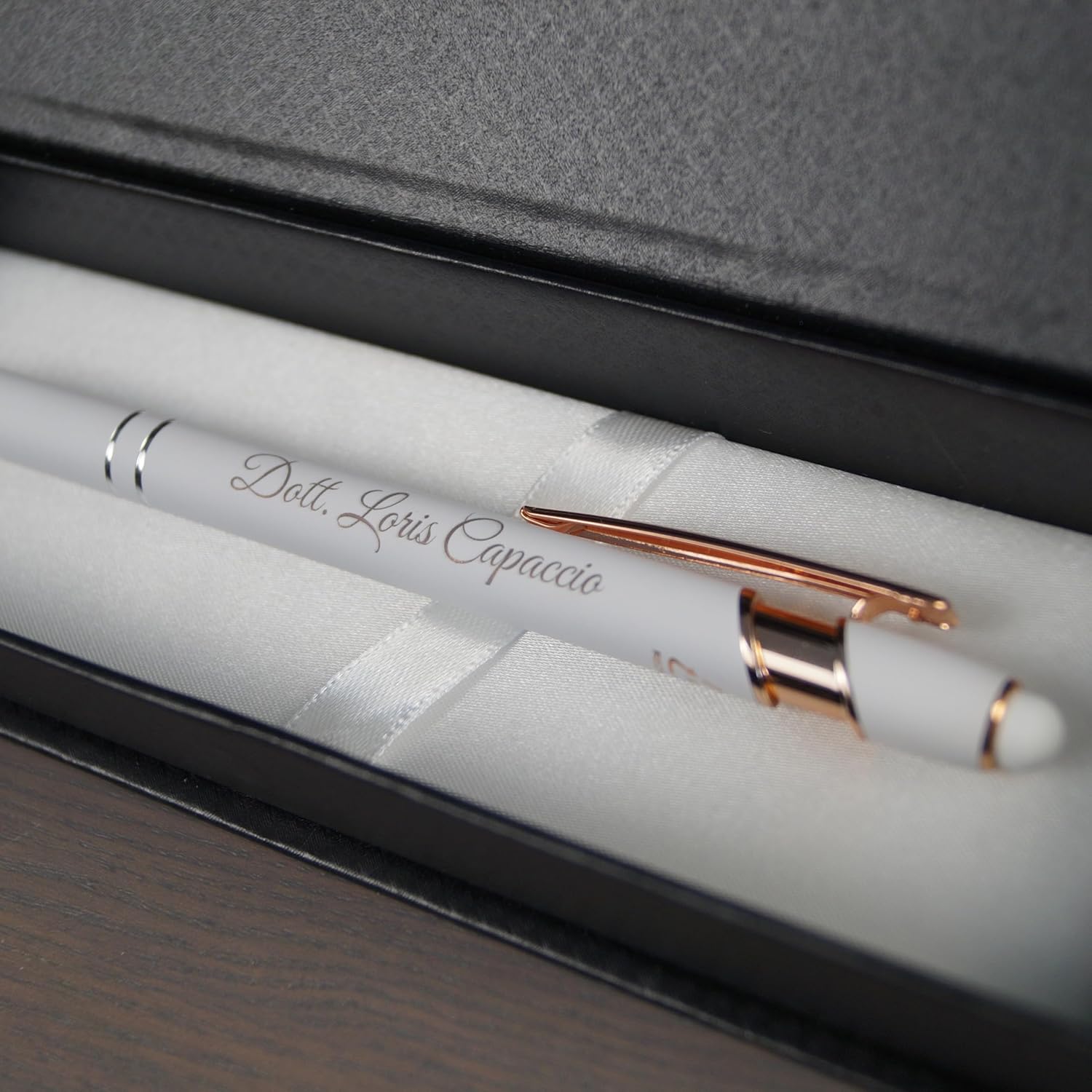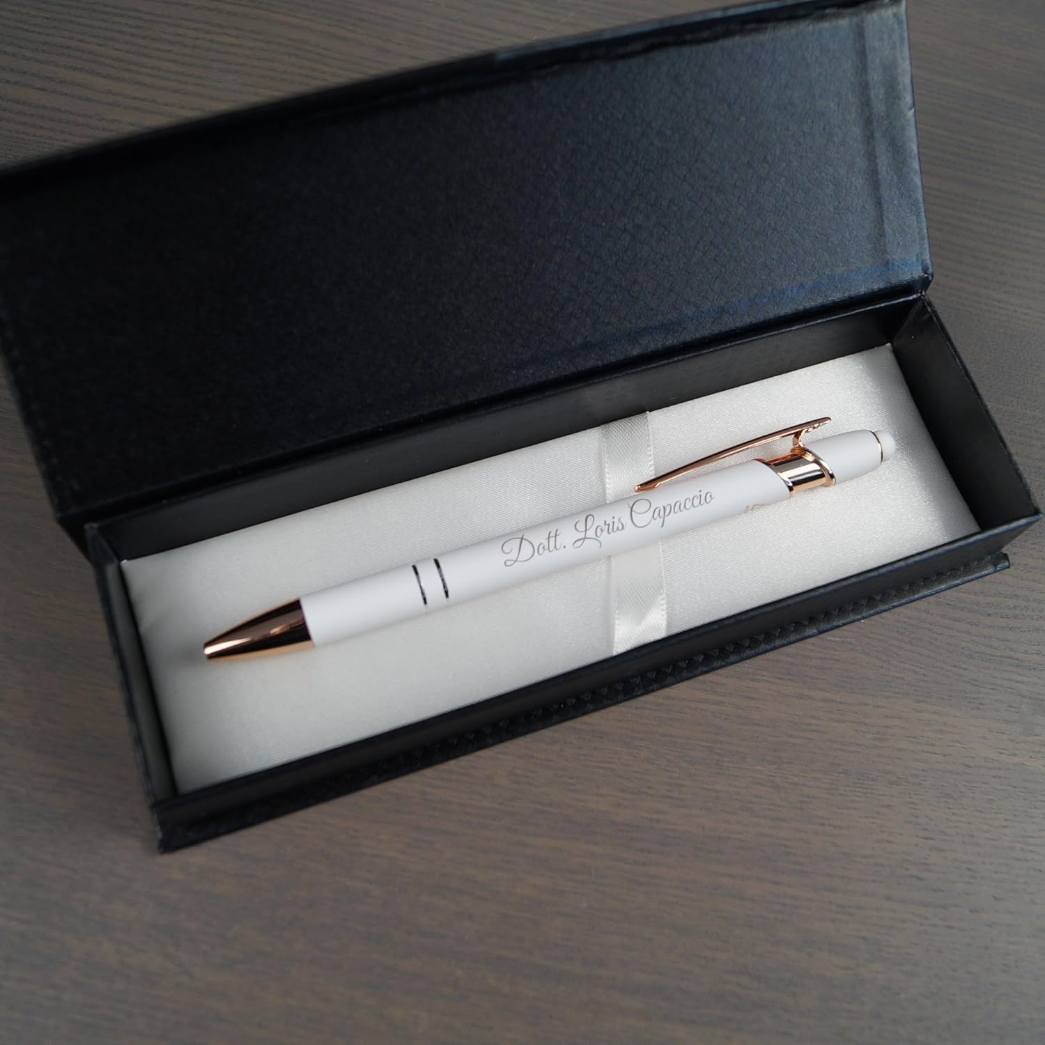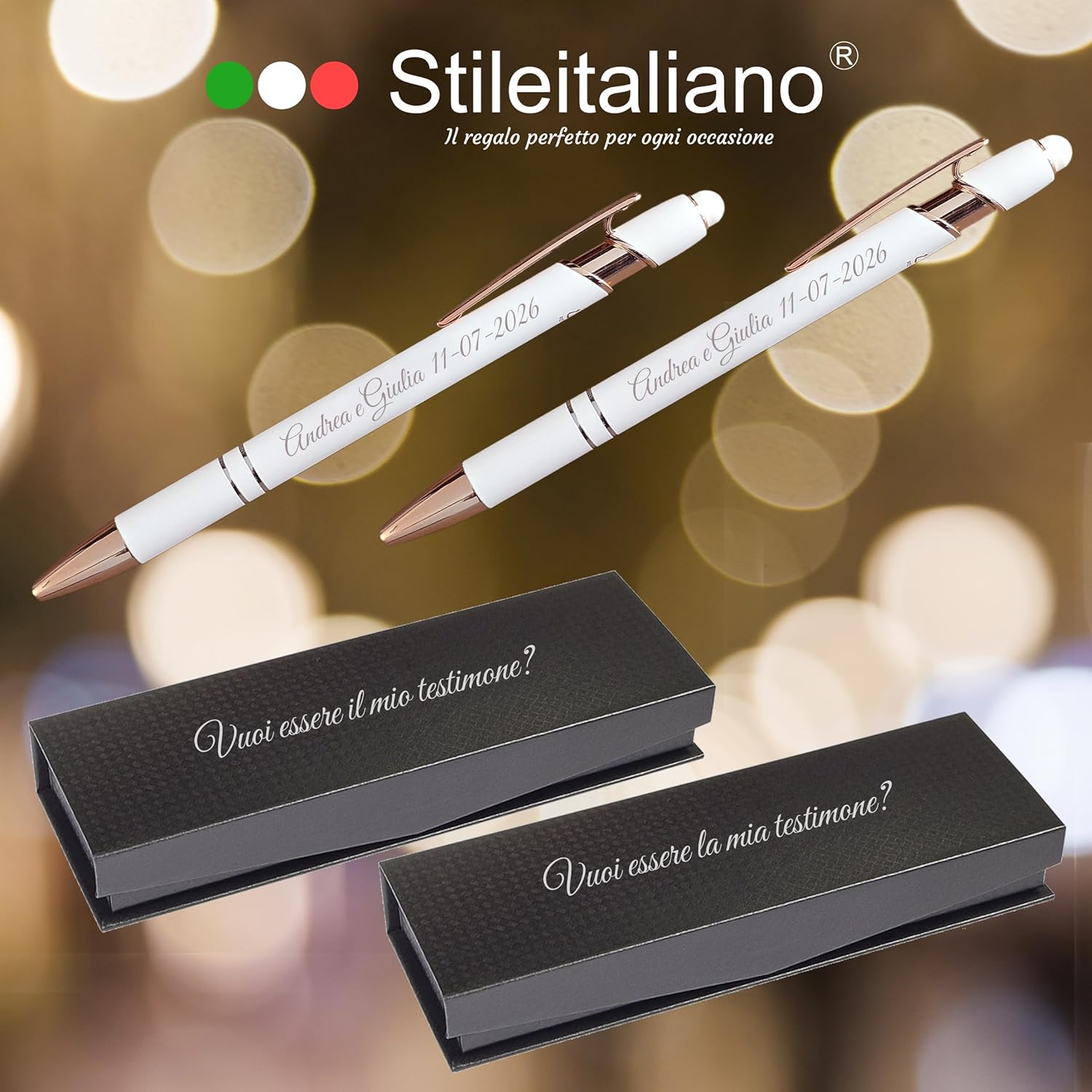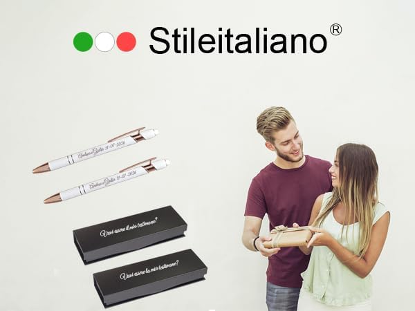 🎁 IDEA REGALO ELEGANTE PER TESTIMONE DI NOZZE – Un set di 2 penne personalizzate con incisione, ideale come dono raffinato per testimoni, padrini o amici speciali in occasione del matrimonio. ✨ PERSONALIZZAZIONE INCLUSA – Aggiungi nome, iniziali o dedica: l’incisione laser di alta qualità rende ogni penna unica e indelebile, perfetta per un regalo significativo e duraturo. 🎀 COFANETTO REGALO INCLUSO – Ogni set viene consegnato in una custodia elegante pronta per essere regalata, ideale per cerimonie, eventi o regali aziendali di classe. 🇮🇹 QUALITÀ STILEITALIANO – Prodotto curato nei dettagli e realizzato con materiali di qualità per garantire un’esperienza di scrittura fluida e un effetto “wow” assicurato al momento della consegna.