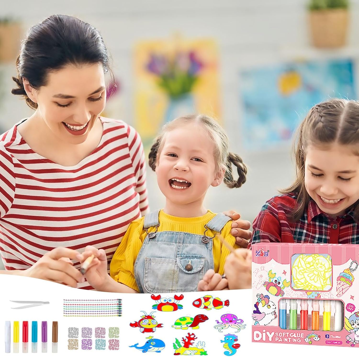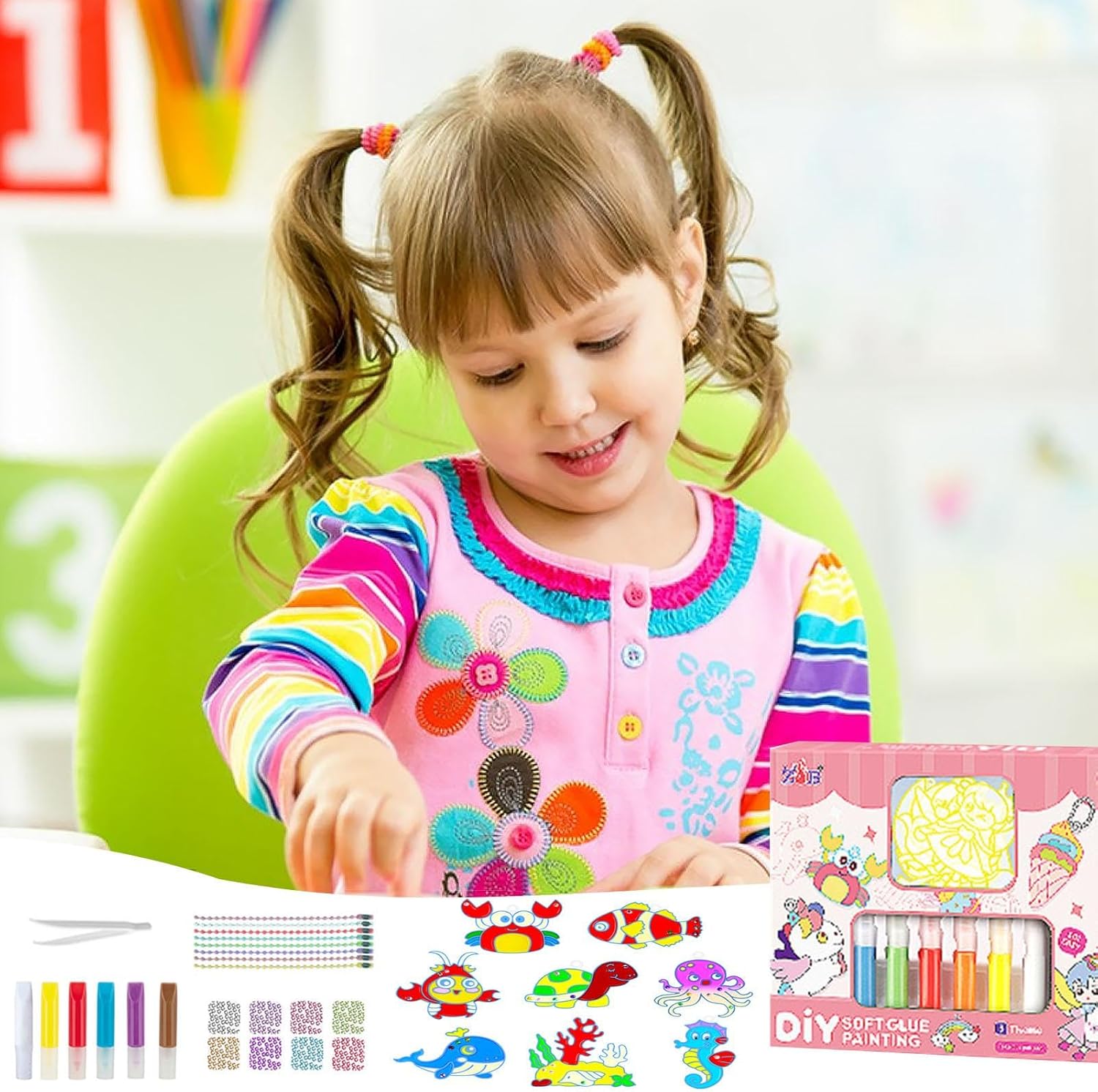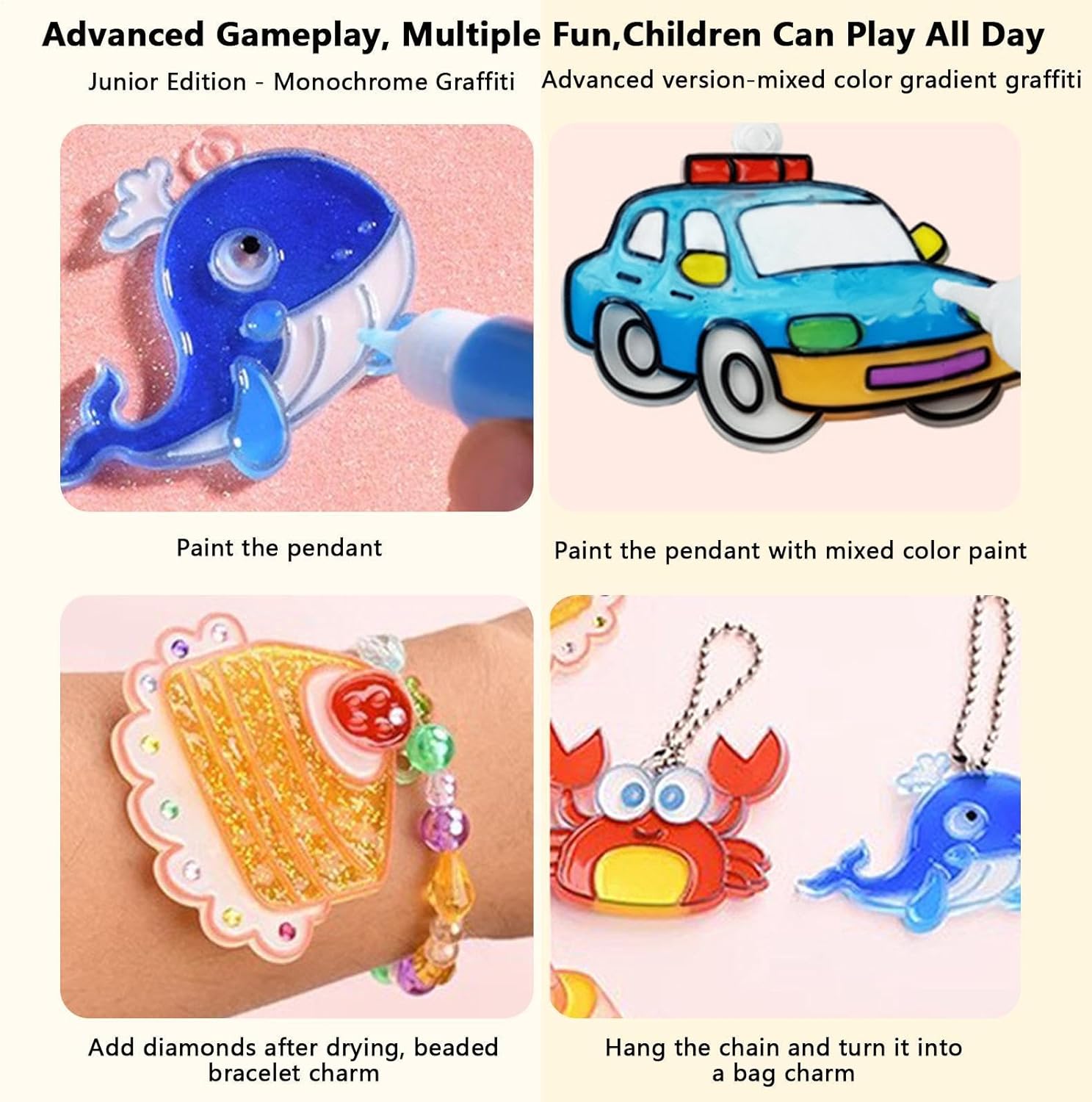Sviluppa nuove abilità artistiche: utilizzando il set di arti e mestieri di Crystal Paint, i bambini possono creare i propri ornamenti e dipinti unici. Questa attività pratica offre ai bambini l'opportunità di apprendere una nuova abilità, migliorando al conla loro creatività e immaginazione Immagina in nuovi modi: con il set Crystal Paint Arts and Crafts, affina il tuo interiore esplorando graffiti monocolore e mescolando i colori per esclusivi graffiti sfumati a colori misti. Crea splendidi ciondoli o braccialetti con vernice o trasformali in un ciondolo per borsa o un portachiavi Ben fatto: immergiti nel mondo delle arti creative con il set Crystal Paint Arts and Crafts. Realizzato con materiali di alta qualità, gomma morbida e angoli arrotondati. Presenta una vernice lavabile e sicura che garantisce durata e longevità Facilità d'uso: grazie alla sua formulazione facile da usare, alle proprietà di asciugatura rapida e ai colori vivaci, questo set di pittura per arti e mestieri con cristalli è perfetto per coltivare la creatività nei bambini. Inoltre, la sospensione finita può essere posizionata nella bocchetta senza alcuna difficoltà Regalo ideale: il set Crystal Paint Arts and Crafts è un ottimo modo per intrattenere e istruire i genitori o i membri della famiglia stesso . È il regalo ideale per i bambini di età superiore ai tre anni e offre ore di gioco fantasioso