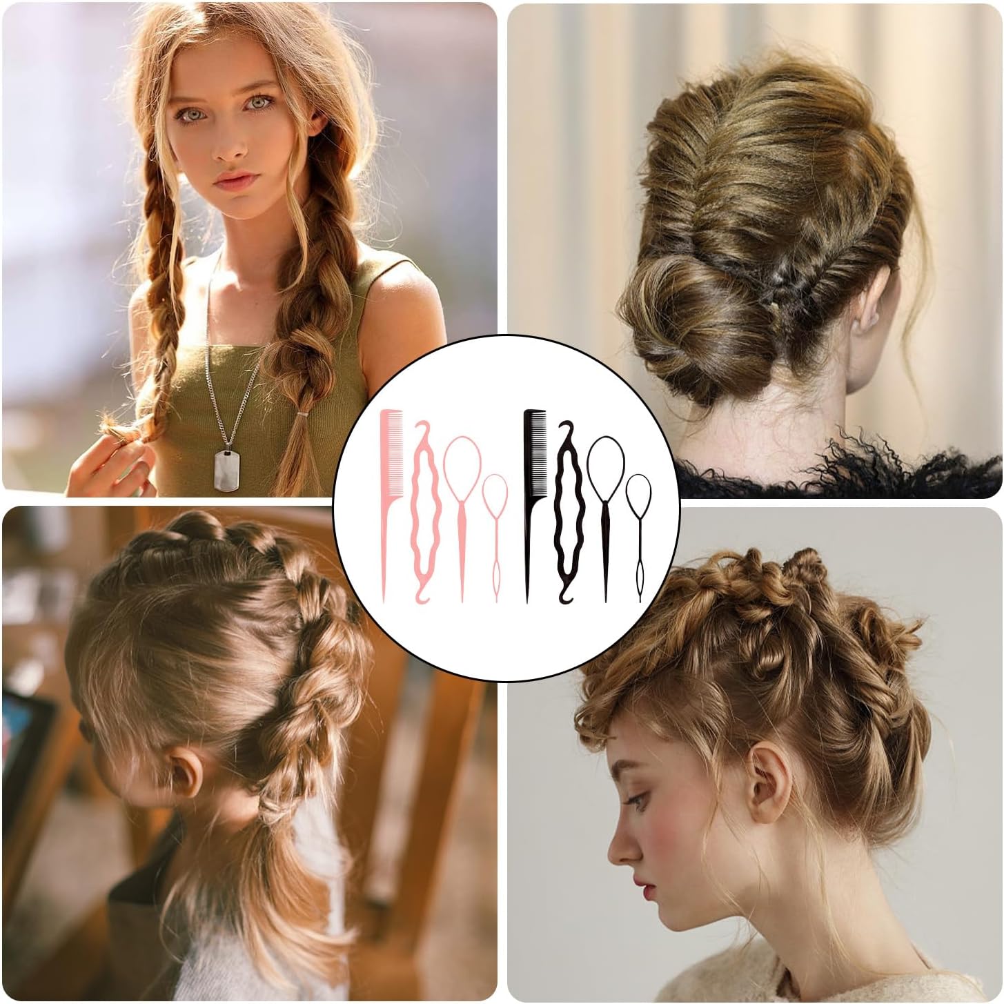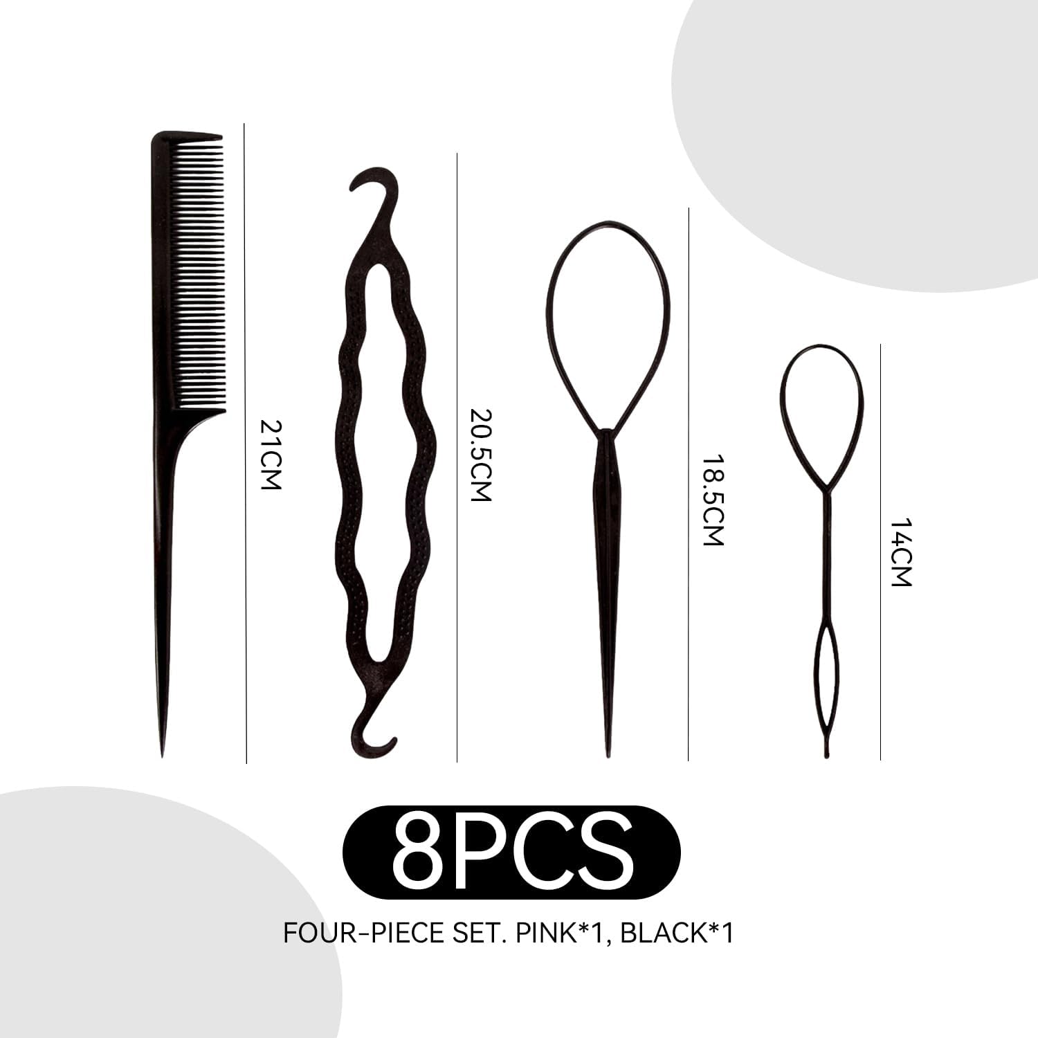 [Contenuto del prodotto] Riceverai 8 set di letti per capelli, inclusi strumenti per intrecciare e infila capelli portatili, adatti per intrecciare i capelli per bambini e adulti, i colori sono nero e rosa e la dimensione è 27 cm * 11 cm. [Materiale del prodotto] Questo prodotto è realizzato in plastica e resina. È resistente e leggero, garantendo comfort e lunga durata durante l'uso. È molto adatto come aiuto per i parrucchieri. [Design portatile] Questo prodotto è progettato per essere portatile e facile da trasportare. È adatto per l'uso domestico o per il trasporto fuori casa. È conveniente modificare e distribuire sempre e ovunque, risparmiando tempo ed energia. [Facile da usare] Questo set di piastre per capelli è semplice da usare, anche un principiante può iniziare facilmente, aiutandoti a creare rapidamente una varietà di bellissime acconciature, in modo che tuo figlio o te stesso abbiano un nuovo look. [Ampiamente usato] Questo prodotto non è adatto solo per l'intrecciatura quotidiana di bambini e adulti, ma anche per varie occasioni, come feste, compleanni, festival, ecc., per rendere la tua acconciatura più varia e alla moda.