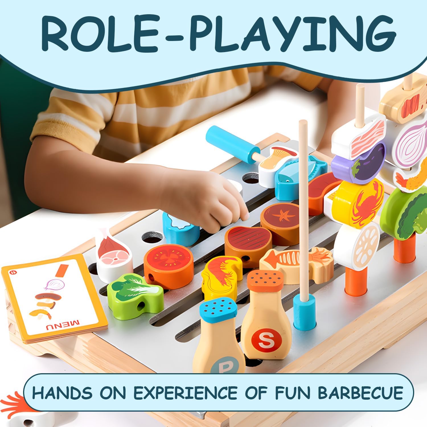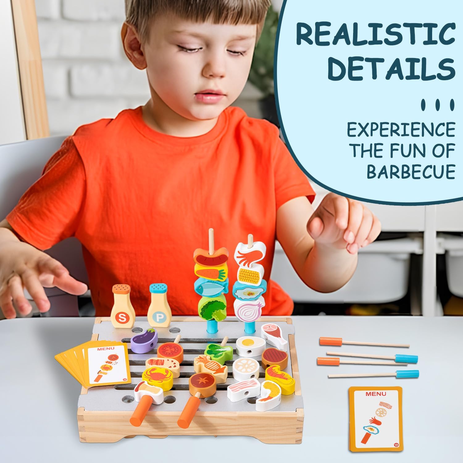 🍡🧒🍢【Nuovo set di giocattoli per barbecue】: il nostro cucina giocattolo per bambini di nuova concezione, dotato di griglia pieghevole, spiedini e una varietà di accessori, offre un'esperienza di grigliata realistica e versatile, permettendo ai bambini di giocare a fare i "piccoli proprietari di una grigliata". I bambini possono seguire le carte per imparare a combinare e abbinare diversi ingredienti e creare deliziosi barbecue! 🍡🧒🍢【Promuove lo sviluppo cognitivo e la coordinazione occhio-mano】: attraverso il gioco di ruolo e l'abbinamento degli ingredienti, i bambini possono migliorare le capacità cognitive e promuovere lo sviluppo cerebrale. Impareranno a riconoscere diverse carni, verdure e frutti di mare. Combinando gli ingredienti e grigliandoli, possono anche migliorare la coordinazione occhio-mano. Questo set barbecue è la scelta perfetta per gli chef in erba. 🍡🧒🍢【Legno di alta qualità】: questo barbecue accessori è realizzato in legno naturale di alta qualità, rivestito con una vernice atossica, con bordi lisci e arrotondati e colori intensi. Questo set resistente è perfetto per l'uso interno ed esterno, senza il rischio di graffi o danni. 🍡🧒🍢【Scatola portaoggetti inclusa】: questo cucina legno per bambini viene fornito con una splendida scatola e accessori colorati. Il coperchio superiore della griglia in legno è rimovibile e lo spazio interno può essere utilizzato come contenitore, conservando perfettamente tutti gli accessori, mantenendo tutto organizzato e comodo per giocare all'aperto o in viaggio. 🍡🧒🍢【Il regalo ideale per il tuo piccolo maestro della griglia】: questa cibo giocattolo per bambini è perfetta per compleanni, Natale o come souvenir. Sviluppa anche le abilità sociali del tuo bambino quando gioca con fratelli, genitori o amici.