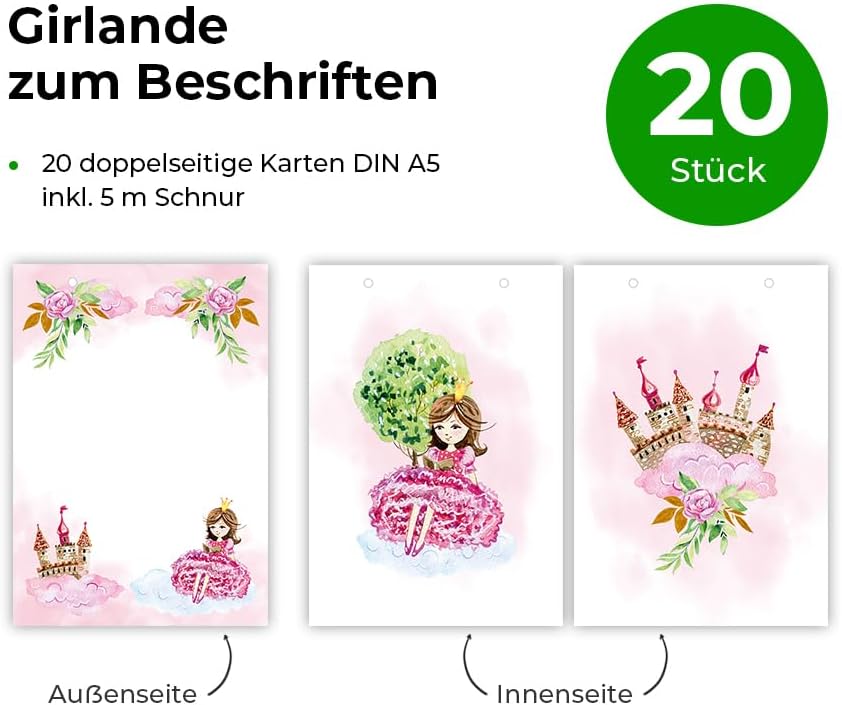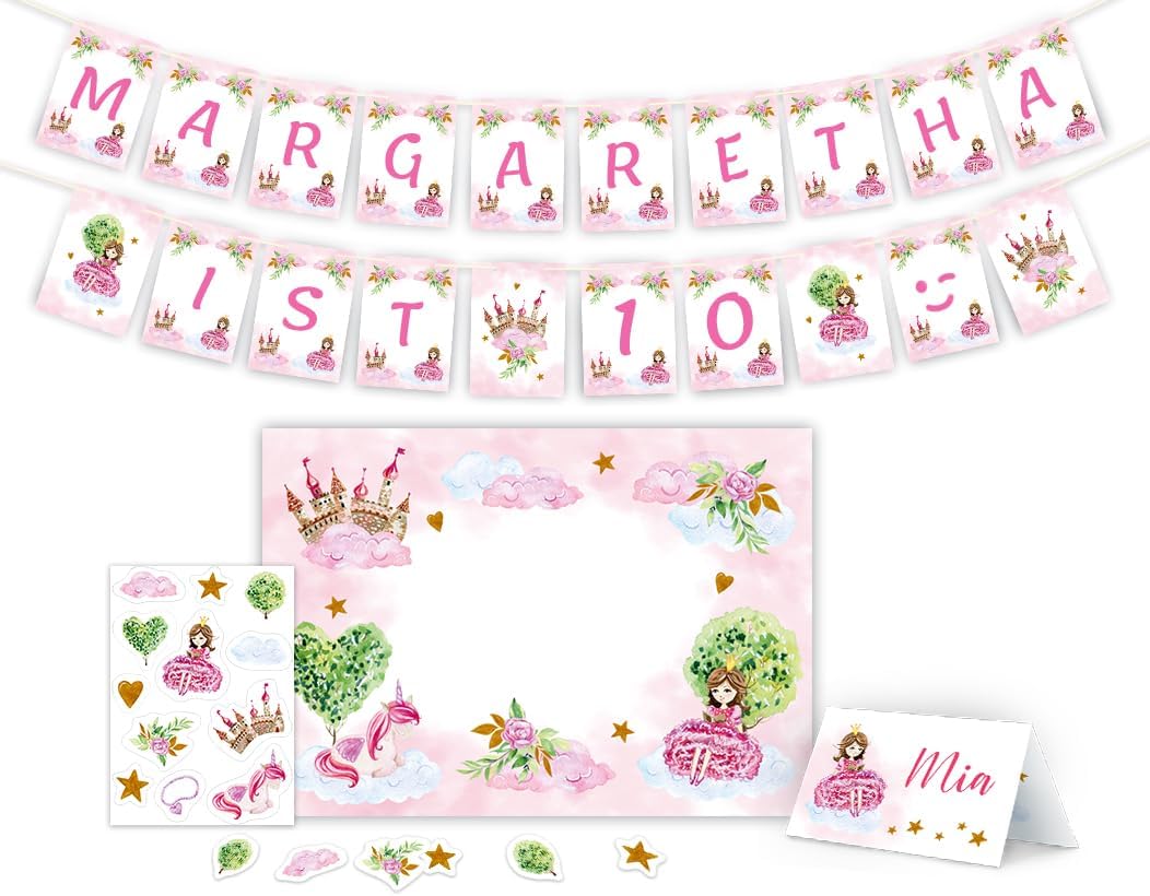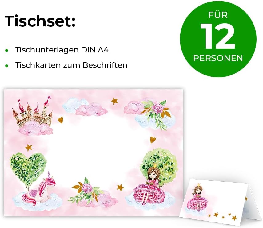 Contenuto della confezione: 1 ghirlanda personalizzabile, 5 archi di coriandoli da tavolo, 12 tovagliette e 12 segnaposto. Pratico: ghirlanda con 20 biglietti in formato DIN A5 (con 5 m di coriandolo), coriandoli in formato DIN A6 – Stampati su entrambi i lati, le tovagliette sono in formato DIN A4 e le targhette corrispondenti offrono spazio sufficiente per scrivere i nomi degli ospiti. Dimensioni: ogni biglietto per la ghirlanda ha il formato A5 (14,8 x 21 cm) e ci sono 5 metri di coriandoli; ogni foglio di coriandoli ha il formato A6 (14,8 x 10,5 cm); le tovagliette hanno un formato A4 (29,7 cm x 21 cm); le targhette hanno una dimensione di 85 x 1. 12 mm e piegato 85 x 56 mm Prodotto in Germania: ghirlande, coriandoli, tovagliette e segnaposto sono prodotti in una tipografia tedesca. ✨ Altro: da noi troverete anche molti altri motivi, ad esempio calcio, ballerina, sirena, animali.