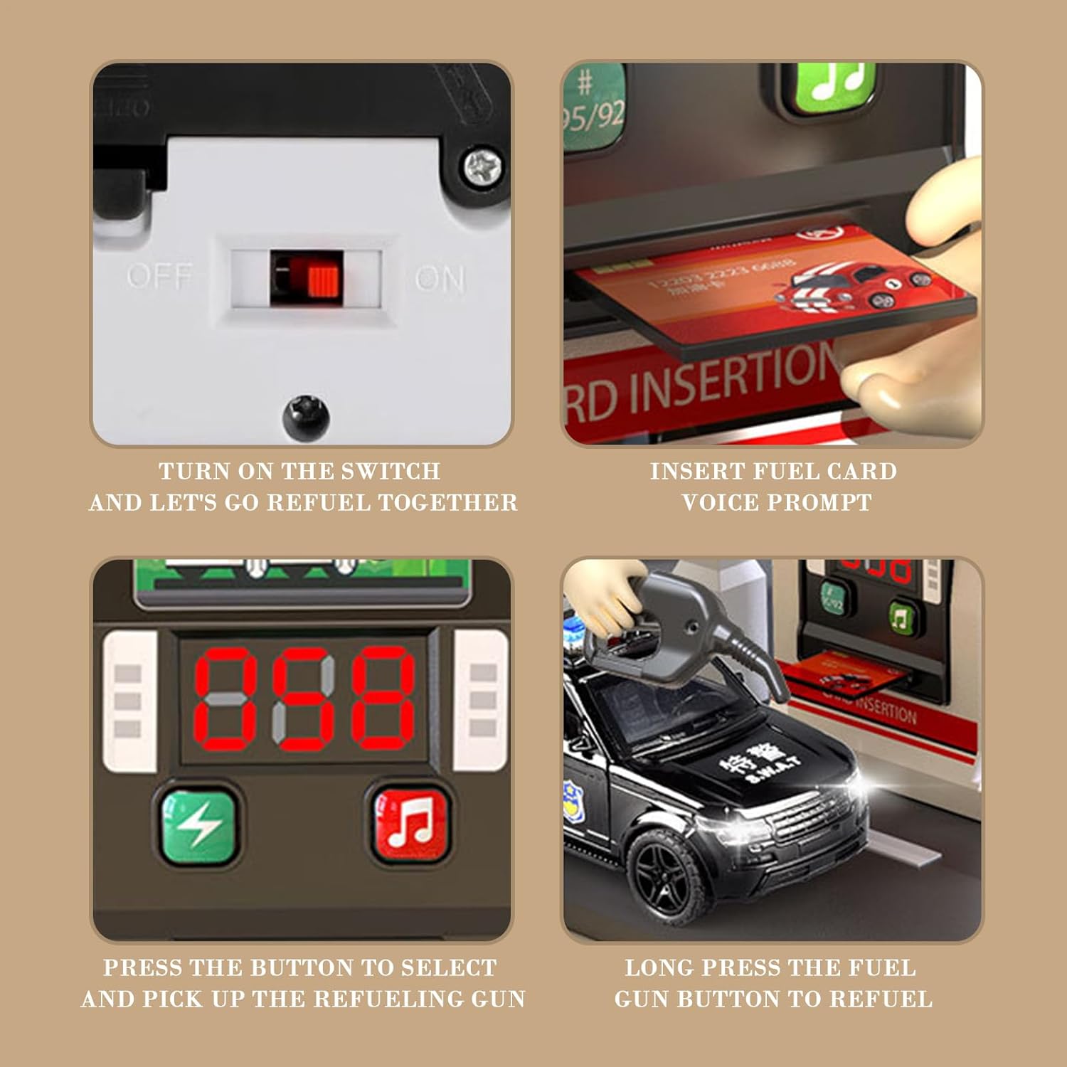 Sponsor di abilità sociali: gioca con amici e familiari con il nostro giocattolo per il. Scopri il brivido di mantenere un'auto e simula il lavoro in un migliorando la comunicazione genitore-figlio e costruendo forti relazioni di amicizia. Vari effetti sonori: lascia al tuo bambino l'atmosfera di una vera con questo giocattolo, che ha una varietà di effetti musicali e sonori, nonché una funzione di conteggio intelligente e può cambiare scene diverse. Questo giocattolo può anche formare le abilità matematiche di tuo figlio imparando ad aggiungere e sottrarre i prezzi dell'energia. Esperienza realistica del serbatoio: Il nostro giocattolo per loro ha la funzione unica del design automatico del carico del serbatoio, in modo che possano sentire il brivido del rifornimento così come dei veicoli. Con il sistema di fatturazione intelligente, possono imparare giocosamente i processi di base della e le conoscenze finanziarie. Realtà reale: stimolare l'immaginazione del vostro bambino con il nostro giocattolo per loro. Questo gioco impressiona il suo aspetto realistico e offre un'esperienza divertente e accattivante che stimola la scoperta e la creatività. Grandi idee regalo: un giocattolo è un regalo perfetto per ragazzi o ragazze per Natale, compleanni o Pasqua, assicura più divertimento e stagione educativa.