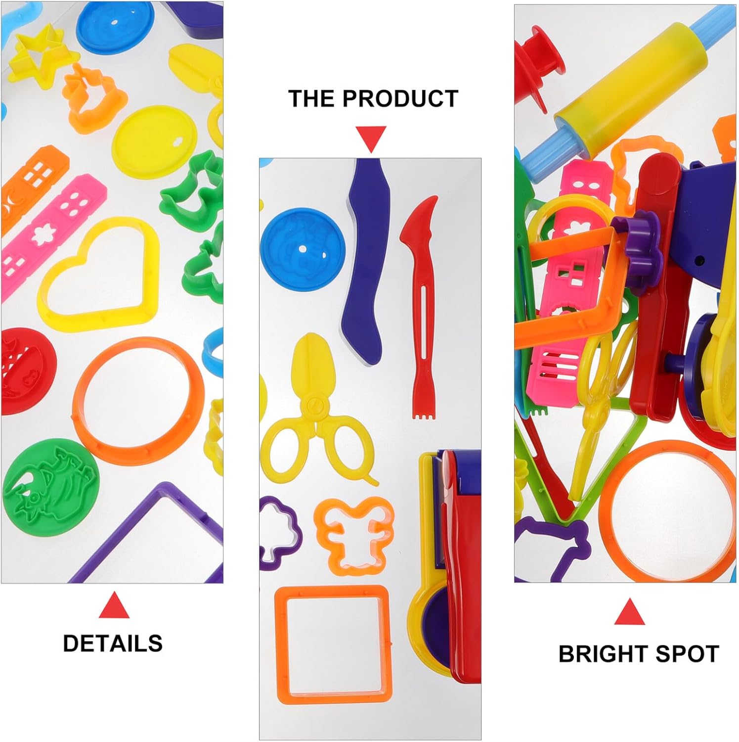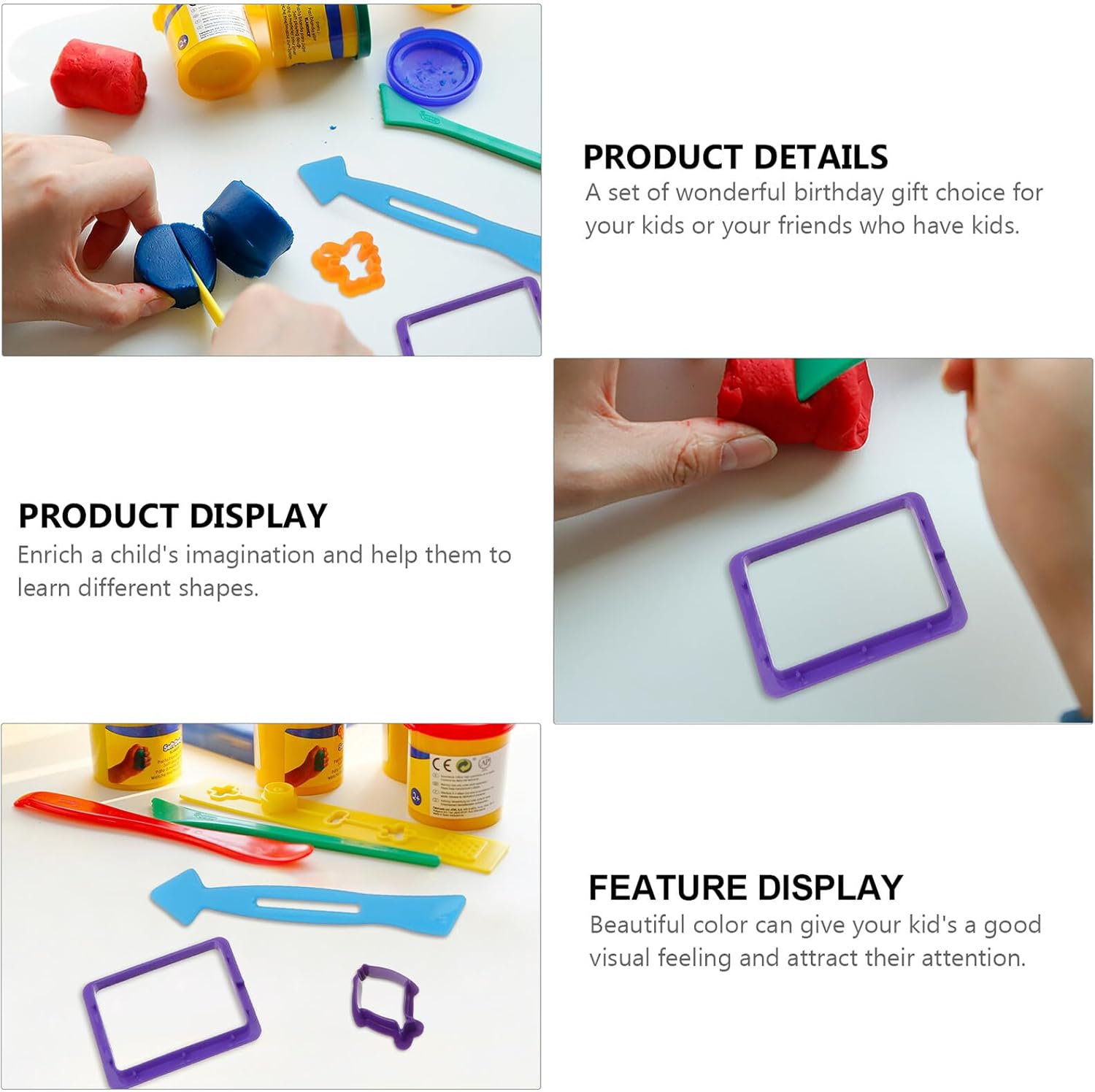 Forme di plastilina fai-da-te: super elastiche, morbide, soffici, divertenti! Quindi non preoccuparti che si attacchino alla tua mano. Argilla da modellare manuale per realizzare tagliatelle colorate: utile non solo per la comunicazione genitore-figlio, ma anche per migliorare le abilità pratiche dei bambini. per alleviare lo stress Giocattoli di argilla colorata: sono ottimi per arricchire l'immaginazione e la creatività di un bambino. Stampi per plastilina fai-da-te per noodle Stampi per plastilina - I bellissimi colori possono dare al tuo bambino una buona sensazione visiva e attirare la sua attenzione. Stampi per plastilina triangolari e rotondi Stampi per plastilina fatti a mano: contengono molti tipi di strumenti che puoi utilizzare. strumento di plastilina