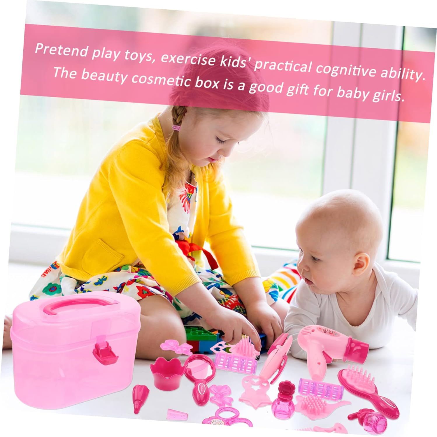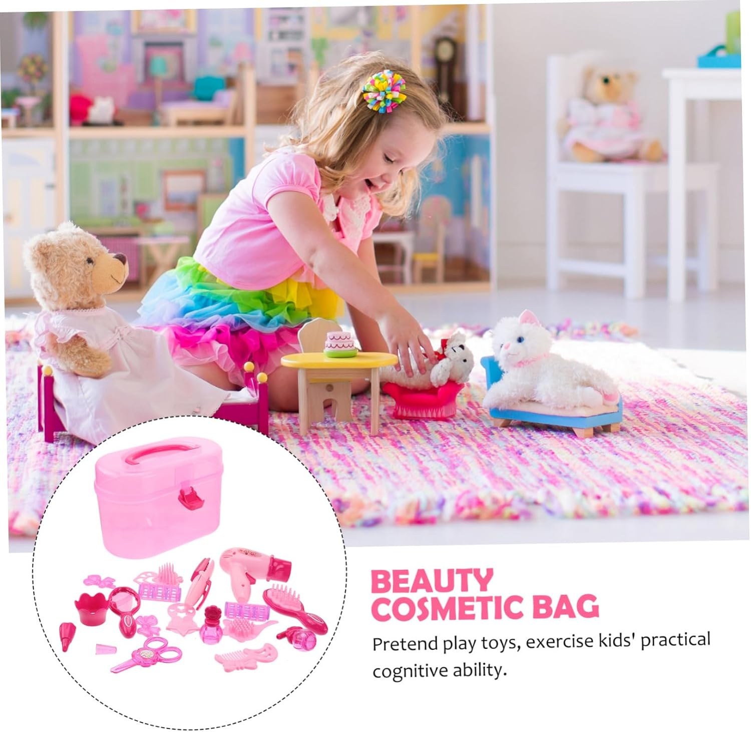 Abito per bambini: rinforza la maniglia, assicurati che il bambino non si gratti dove andare e dove giocare. Giocattoli per bambini: il cofanetto cosmetico di bellezza per le bambine. Giocattoli per bambini: strumenti modellistici e multifunzionali. Giocattoli per bambini: immagina di giocare con i giocattoli, esercita le capacità cognitive pratiche dei bambini. Custodia: questo giocattolo cosmetico di bellezza è realizzato in plastica per un uso a lungo termine.