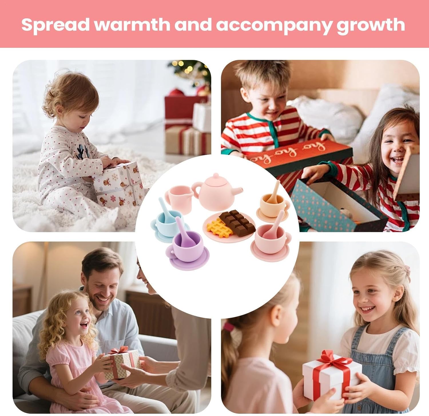 Ispira l'interazione sociale: questo set da tè aiuta i bambini a staccarsi dagli schermi e incoraggia il gioco interattivo attraverso tea party condivisi. Rafforza i legami con la famiglia e gli amici e simboleggia i calorosi auguri per la loro crescita. Un regalo sensibile per compleanni e festività che invita a condividere momenti di comunicazione ed esperienze condivise. Capacità di coordinazione migliorate: concentrandosi su attività simulate di preparazione del tè, questo set giocattolo da tè rafforza le operazioni manuali fini e promuove il riconoscimento dei colori. Fornisce ai bambini un modo divertente di mettere in pratica le abilità di base durante attività fantasiose di gioco di ruolo con amici o fratelli. Le capacità di coordinazione vengono migliorate in modo divertente con il set da tè giocattolo, che combina capacità motorie e interazione sociale. Ampie applicazioni: il set da tè in silicone per i più piccoli è progettato per una facile conservazione e una buona portabilità, consentendo una rapida installazione ovunque. Questa funzionalità aumenta il comfort e lo rende ideale per il tempo trascorso in famiglia al chiuso o per picnic all'aperto e incontri sociali. Garantisce transizioni senza soluzione di continuità tra diversi ambienti ed è un giocattolo versatile in movimento. Stimola la narrazione fantasiosa: attraverso i suoi oggetti di scena vibranti e diversificati, il set da tè in silicone ispira i più giovani a creare storie simulando riunioni di tè nella vita reale. Aumenta sia la creatività che la comunicazione durante le attività di gioco di ruolo a casa o a scuola, promuovendo un'esperienza di apprendimento arricchente che supporta lo sviluppo narrativo e il pensiero fantasioso. Durevole lavorazione artigianale in silicone: realizzato in materiale siliconico di alta qualità, questo set da tè per bambini è a prova di perdite e antiurto. È adatto per contenere in sicurezza liquidi veri, consentendo infinite attività fantasiose come imitare i tea party. La pulizia semplice e la struttura robusta lo rendono una scelta pratica per i genitori impegnati che apprezzano i giocattoli durevoli e sicuri.