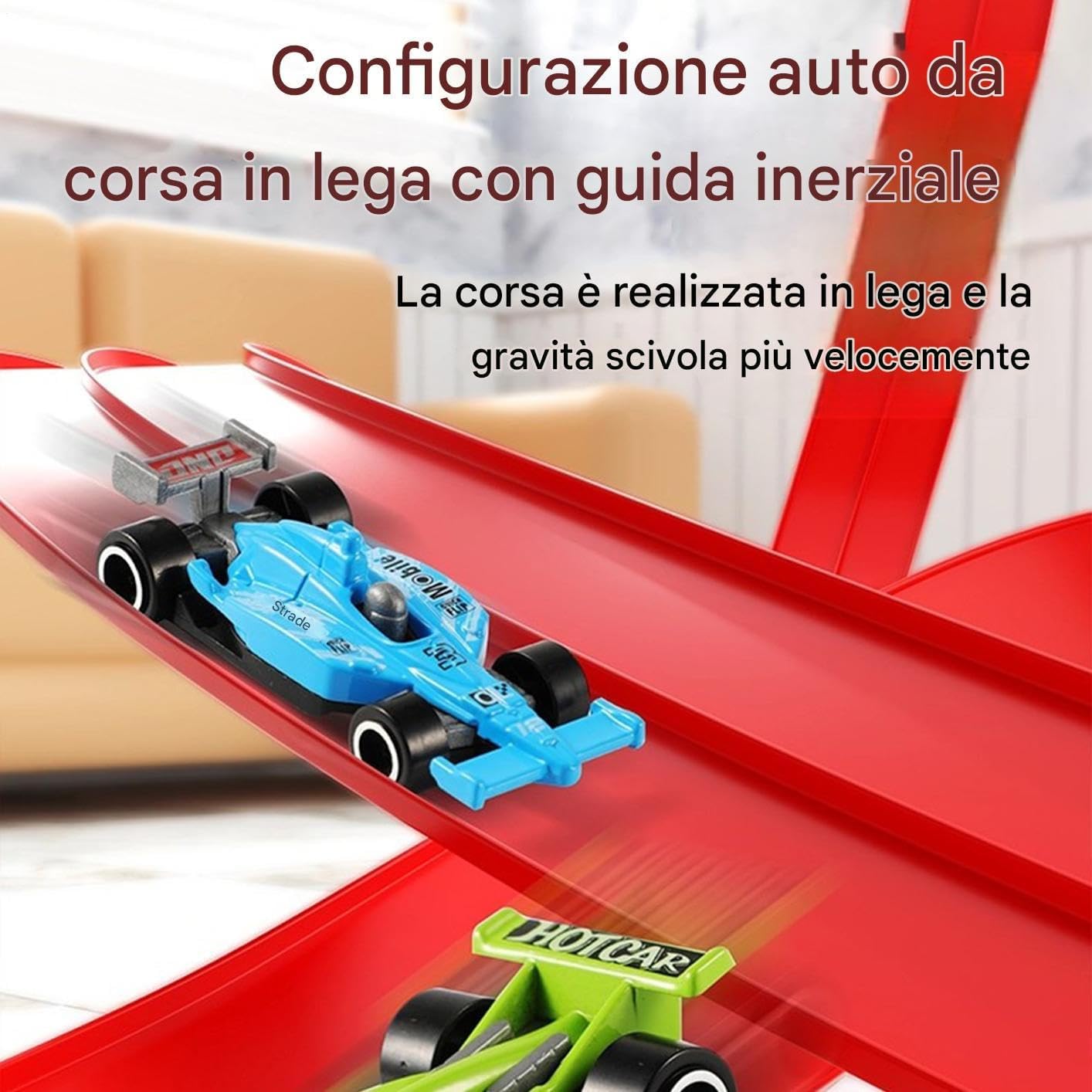Divertimento Unisex per Tutti: La pista per macchinine giocattolo unisce un appeal unisex a una costruzione leggera e pratica, offrendo alle famiglie strumento per connettersi e condividere momenti di gioia in diverse situazioni come a casa, in vacanza o durante piacevoli avventure all'aperto nelle festività, promuovendo il familiare attraverso un gioco coinvolgente e adatto a tutti i generi. Pista Flessibile e Affidabile: Progettato per la praticità, il set pista per macchinine utilizza materiale PVC flessibile che permette un arrotolamento e una conservazione senza sforzo, offrendo ai bambini un modo semplice per organizzare dopo il gioco, mantenendo la durata per un godimento a lungo termine con prestazioni affidabili. Compatibilità Veicoli Versatile: Supportando multiple macchinine giocattolo e modelli die-cast, il set di pista e auto favorisce un gameplay innovativo con di corsa variati, fornendo un ambiente stimolante per i bambini che desiderano godere di allenamenti interattivi con gli amici. Questa adattabilità permette di sperimentare configurazioni di gara sempre nuove, enhancing le capacità creative e sociali dei giovani, assicurando divertimento senza fine in contesti domestici o di gruppo, Pacchetto di Gioco Completo: Questo set di pista per auto da corsa include un kit da corsa completo con una pista arrotolabile flessibile, auto da corsa, 4 connettori e 12 ventose, consentendo un gioco immediato senza la necessità di cercare componenti aggiuntivi, ideale per divertimento in interno o esterno, con un design pronto all'uso che favorisce ore di intrattenimento per bambini e famiglie, grazie alla facilità di montaggio e alla versatilità della pista Adesione Sicura Ovunque: Con le sue 12 ventose affidabili, il set di pista per macchinine giocattolo può essere montato su finestre o pavimenti, fornendo una presa sicura che permette ai bambini di progettare piste da corsa in molteplici ambienti, favorendo avventure di gara all'aperto immaginative durante i viaggi o a casa e garantendo una tenuta costante per giocare in modo sicuro e senza interruzioni.