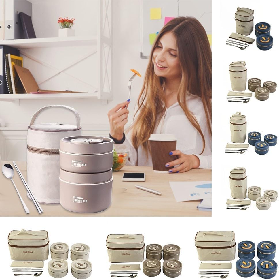 Materiale: realizzato in plastica PP per uso alimentare e acciaio inossidabile 304, sicuro e non trattiene Stile fresco ed elegante, adatto per uomini, donne e bambini. Perfetto per uso domestico e in viaggio. Isolamento termico superiore: l'isolamento sottovuoto e la borsa termica forniscono fino a 3-4 ore di ritenzione del calore, il doppio del tempo rispetto agli altri. Niente più pranzi freddi o microonde. Mantenete il vostro cibo caldo e, permettendovi di gustare gustosi pasti fatti in casa a scuola o al lavoro. Design pratico e a prova di perdite: ogni portapranzo ha una doppia guarnizione in silicone per bloccare la freschezza, prevenire perdite e . Il coperchio superiore dispone di una valvola di scarico a conchiglia per una facile apertura e una maniglia per un comodo trasporto. Il design a doppio strato di isolamento termico impedisce alla scatola di scaldarsi al tatto. Per il controllo delle porzioni: avvolgilo con dei nastri e ai tuoi cari per un controllo più sano delle porzioni. Goditi prelibatezze fatte in casa ovunque tu vada.