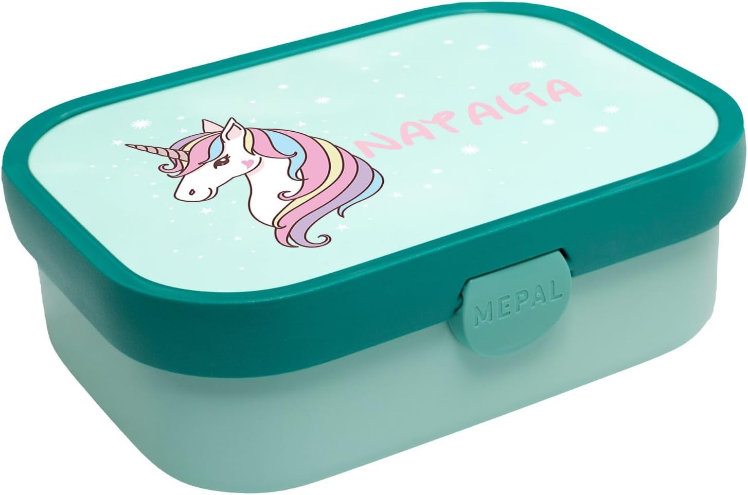 Pratico contenitore per biscotti, pane, frutta, snack, ma anche tanti altri piccoli oggetti. Perfetto per la scuola, l'asilo, le vacanze o le gite fuori porta. La scatola può essere facilmente aperta e chiusa con una clip. Ha una forchetta e un inserto per bento. La bottiglia ha una maniglia. Realizzato con materiale ottimo che non contiene BPA o ftalati. Allo stesso tempo molto igienico e sicuro da usare, non rappresenta alcun pericolo nemmeno per i più piccoli. PERSONALIZZABILE con nome. Grazie all'interessante grafica UV ogni bambino rimarrà stupito. Dimentica i contenitori per il pranzo e le bottiglie d'acqua persi! Con una bottiglia e puoi ridurre il consumo di plastica e contribuire così alla tutela dell'ambiente.