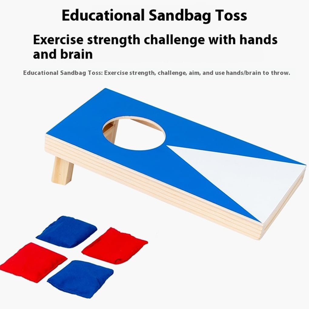 Set Portatile per Buchi di Mais - Divertente Set per Lancio di Mais, Sacco per Fagioli, 4 Sacchi Sabbia, Divertimento per l'infanzia in Legno, Adatto a Mano per età, Medio (Blu)