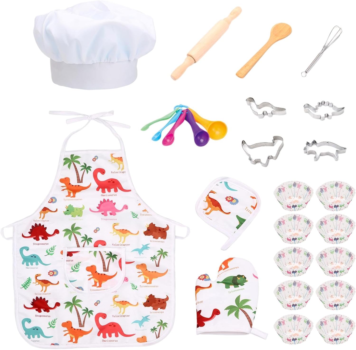 Migliorare l’immaginazione: i giochi di ruolo per loro sono estremamente importanti. Lascia correre la tua immaginazione. Il giocoso set di accessori da cucina li ispira a interpretare il ruolo di uno chef e insegna loro alcune semplici abilità culinarie. Trascorreranno felicemente ore a preparare finti "pasti" per la famiglia! Sicuro per le persone: il nostro set da cucina per bambini è realizzato con materiali sicuri e delicati sulla pelle. Un design con bordi arrotondati e lisci non farà male. Inodore, atossico e come un vero set da forno, lascia che il tuo bambino senta la vera cucina mentre gioca. Stabile e durevole, facile da usare e da lavare. Davvero divertente da cucinare: gli utensili sono perfettamente funzionanti e possono essere utilizzati per cucinare e cuocere al forno. L'occasione perfetta per vivere l'emozione in cucina, insegnare loro a cucinare in modo semplice e veloce, aiutare i genitori a vedere i loro sorrisi quando sfornano le loro creazioni indossando cappello e grembiule da chef. Ottimo regalo: il set da cucina è il regalo perfetto di compleanno o di Natale per godersi il tempo di cucina e puoi migliorare le relazioni in cucina e nell'apprendimento, giocattolo divertente per ragazze dai 3 anni in su. Il set da cucina comprende: il set da forno per grembiuli, cappelli da chef, guanti da cucina, guanti, mattarello, cucchiai, fruste, utensili da cucina e altri utensili da cucina.