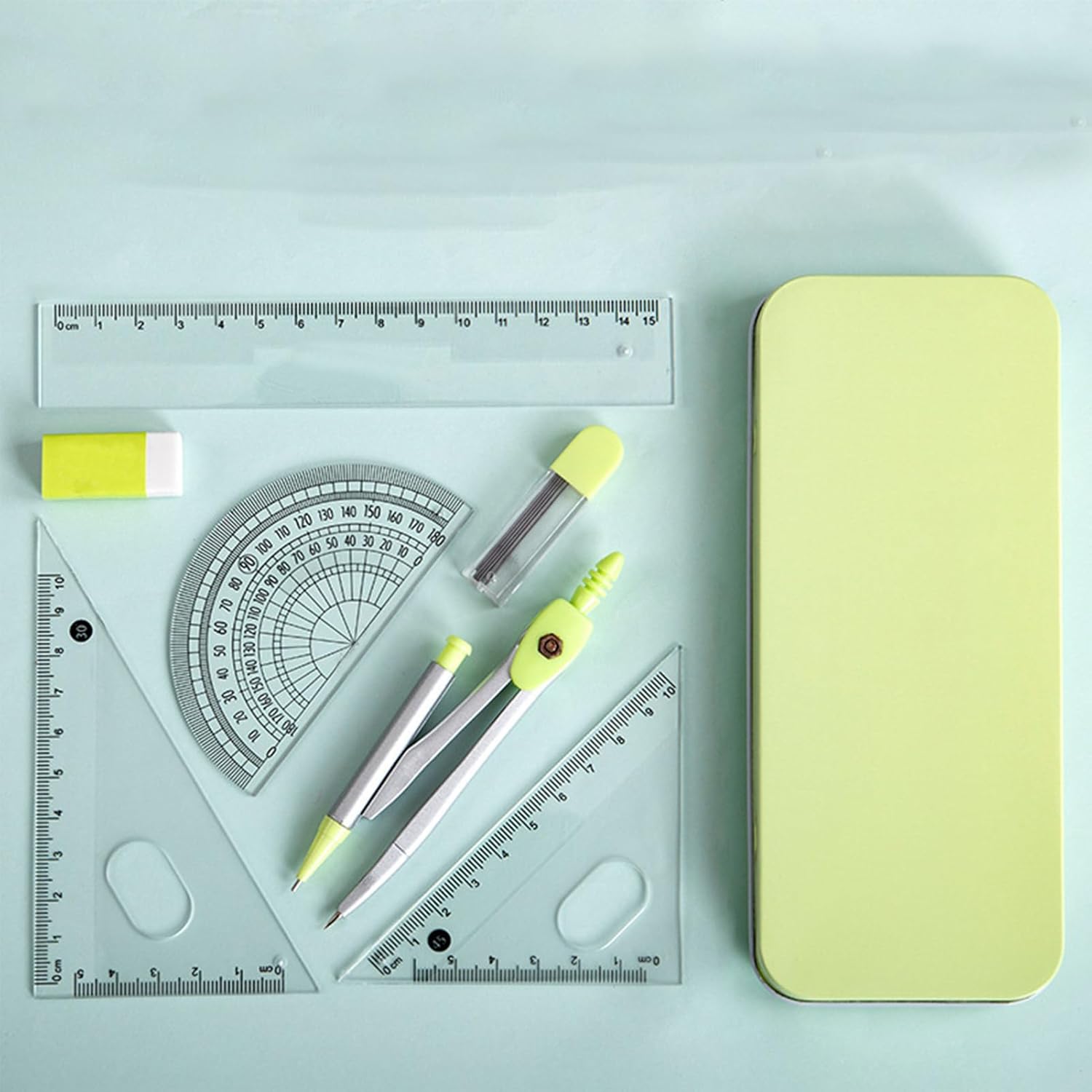 Materiali eccellenti: realizzato con materiali sicuri di alta qualità, questo kit di geometria garantisce durata e precisione, rendendolo perfetto sia per studenti che per professionisti Eccellenza artigianale: con un'eccellente maestria, il nostro kit di geometria matematica offre una versione straordinaria, garantendo l'assenza di sbavature e lesioni alle mani, consentendo un utilizzo preciso e sicuro per la progettazione della geometria Molteplici usi: il kit di geometria matematica è un set di strumenti indispensabile per gli studenti con 7 pezzi, tra cui righello, goniometro, matita, gomma. Fornisce una soluzione precisa ed efficiente per qualsiasi problema di geometria Regalo pratico: questo kit di geometria matematica è un'idea regalo speciale per uomini e donne, perfetta per aggiungere un tocco speciale a qualsiasi festività come Natale, Ringraziamento e compleanni Kit facile da trasportare: leggero, questo kit di geometria matematica viene fornito con una scatola di ferro infrangibile, che lo rende semplice da trasportare e ti consente di portarlo con te e utilizzarlo in qualsiasi momento