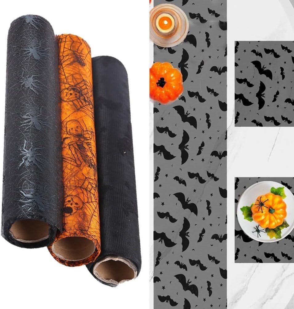 RUNNER DA TAVOLO REGOLABILE DI HALLOWEEN: taglia facilmente questo tessuto in tulle di poliestere da 11" x 108" per creare tovagliette o mini runner perfetti per tavoli di qualsiasi dimensione senza sfilacciare i bordi. Una soluzione su misura per la tua sala da pranzo Design Web spettrale: caratterizzato da intricati motivi di pipistrelli e ragni, questo runner da tavolo con ragnatela trasformerà istantaneamente la tua sala da pranzo, caminetto o libreria in un inquietante display di Halloween, perfetto per feste e celebrazioni. Materiale durevole: realizzato in poliestere resistente al colore. Questo tulle trasparente mantiene la sua vibrante tonalità arancione dopo un uso ripetuto ed è facile da pulire, basta asciugare all'aria ed evitare la candeggina per un fascino duraturo. Decorazione versatile per le feste: usa questo runner da tavolo multiuso non solo per i tavoli da pranzo, ma anche per decorare finestre, librerie e mensole del camino, creando un'atmosfera misteriosa e coerente nella tua casa.