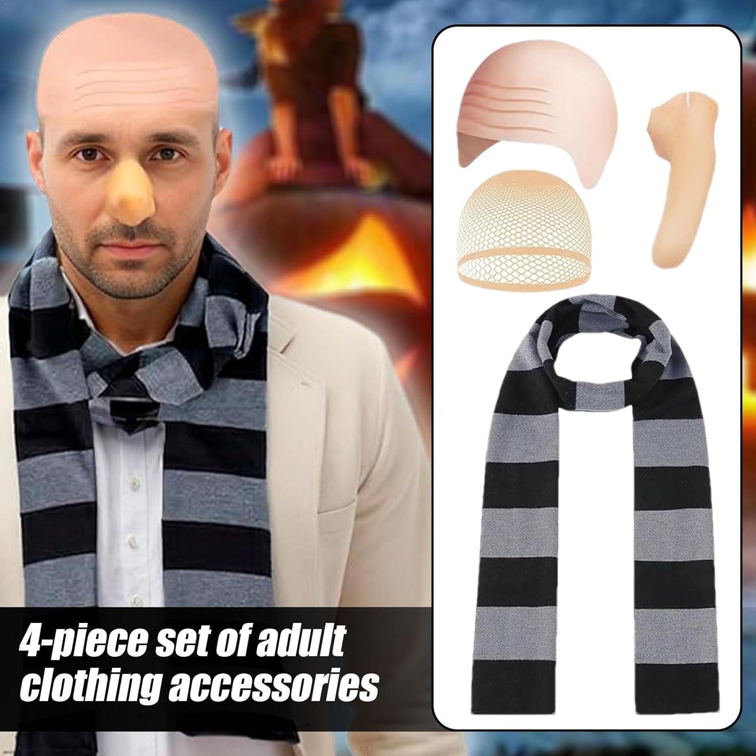 Trasforma la tua esperienza di cosplay con il nostro set di costumi per giochi di ruolo per adulti. Questo set elegante e bello include un berretto per parrucca calva comodo da indossare, che ti rende al centro dell'attenzione e garantisce che la tua esperienza cosplay sia più memorabile. Caratteristiche: Dimensioni: vedi foto. Peso: 400 g. Materiale: lattice, lavorato a maglia. Contenuto: 4 accessori per costumi da adulto Nota: a causa della diversa illuminazione e delle impostazioni dello schermo, il colore dell'articolo potrebbe essere leggermente diverso dalle immagini. A causa delle diverse misurazioni manuali, si prega di consentire una differenza di 1-2 cm.