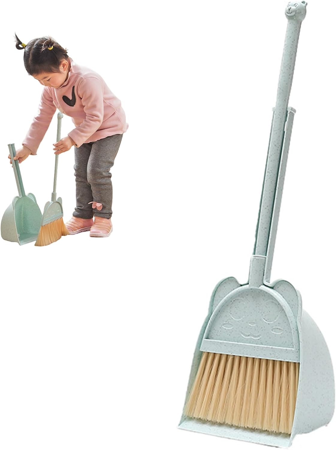 Idea perfetta: questo set per la pulizia dei bambini è eccellente per compleanni, vacanze o qualsiasi occasione speciale..Il suo valore educativo e il design adorabile delizieranno sicuramente sia i bambini che i genitori. Materiale ABS: realizzato in plastica ABS di alta qualità, questo set per la pulizia dei bambini è costruito per durare..La struttura robusta garantisce che possa resistere all'energia giocosa dei bambini senza rompersi o usurarsi facilmente. Sicuro per le mani dei più piccoli: i bordi lisci e il design leggero di questo set di scopa e paletta per bambini sono perfetti per le mani dei più piccoli..È sicuro da usare, garantendo ai genitori la possibilità di affidare ai propri bambini questo kit di pulizia senza preoccupazioni. Divertimento educativo: questo set di scopa e paletta per bambini è progettato per coinvolgere i più piccoli nell'apprendimento delle abilità domestiche essenziali divertendosi..Le dimensioni ridotte e il design carino rendono la pulizia un'attività divertente per i bambini piccoli. Strumento di pulizia versatile: a casa o all'asilo, questo set di scopa e paletta per bambini è uno strumento versatile per insegnare ai bambini la responsabilità e la pulizia..È ideale per i piccoli disordini, rendendolo un must per la stanza dei giochi o l'aula di ogni bambino.
