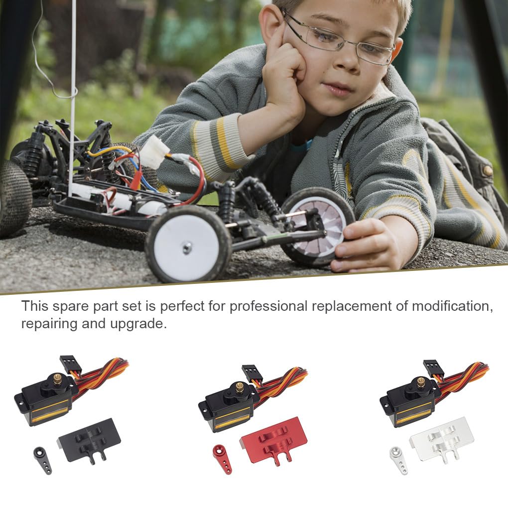 Materiale di alta qualità: questo kit servo sterzo è realizzato in materiale di alta qualità, durevole per un uso a lungo termine Dimensioni precise: il kit servo sterzo per auto RC ha dimensioni precise ed è perfettamente compatibile con altre parti Alta sensibilità: ha un'alta sensibilità, che è efficiente e pratica Uso professionale: questo set di pezzi di ricambio è perfetto per la sostituzione professionale di modifiche, riparazioni e aggiornamenti Staffa metallica: il set viene fornito con una staffa metallica che garantisce un fissaggio eccellente