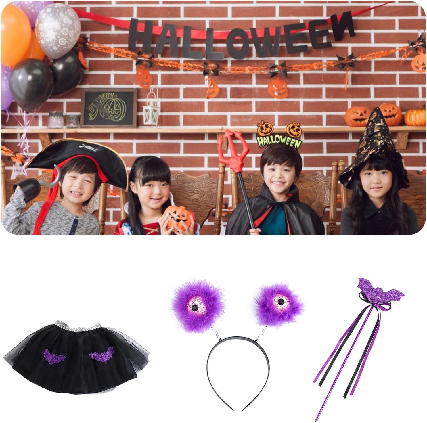 Spaventoso bulbo oculare copricapo bacchetta gonna pipistrello costumi di Halloween set spaventoso bulbo oculare fascia per carnevale festa a tema Caratteristiche: Il set di costumi di Halloween include gonna pipistrello, fascia e bacchetta. Adatto per circonferenza della testa: circa 50-58 cm. Adatto per feste a tema in costume, costumi di Halloween, sfilate di Natale, Halloween e così via. Lascia che il tuo bambino diventi il più attraente alla festa con il set di costumi di Halloween. Il nostro set di Halloween promette una vestibilità comoda e una terrificante memorabile Specifiche tecniche: Componente: Panno Adatto per circonferenza della testa: circa 50-58 cm. Tipo: 4 tipi facoltativi La confezione include: 4 Pacchetto gentile Facoltativo come segue: Pacchetto 1: 1 set costumi di Halloween Confezione 2: 1 gonna. Confezione tre: 1 fascia per capelli. Confezione 4: 1 bacchetta. Nota: Considerare un margine di errore di 1-3 cm dovuto alla misurazione manuale. A causa della differenza tra i diversi monitor, l'immagine potrebbe non rispecchiare il colore reale dell'articolo.