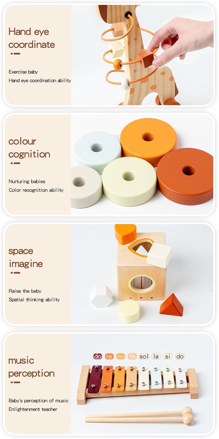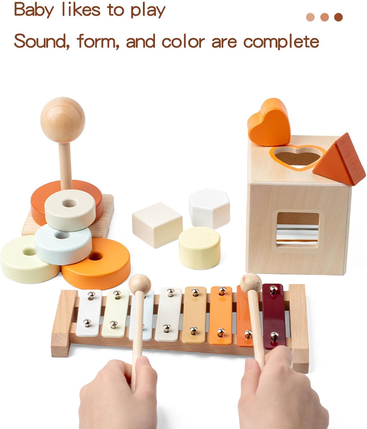SET UNICO: il design cattura l'attenzione dei bambini e migliora l'interazione genitore-figlio, rendendo il momento della musica divertente e coinvolgente per tutti. MATERIALE IN LEGNO DI QUALITÀ: Realizzato in legno di prima qualità, questo set di strumenti musicali garantisce la sicurezza dei bambini, consentendo loro di giocare senza preoccuparsi dei materiali dannosi. COMBO MUSICALE PER LA PRIMA EDUCAZIONE: questo set musicale per bambini è progettato per coltivare il senso della musica dei bambini e stimolare il loro interesse, fornendo una base eccellente per il apprendimento musicale. DESIGN DEGLI STRUMENTI A PERCUSSIONE: il design unico arricchisce le esperienze sensoriali dei bambini e aiuta a sviluppare le capacità di coordinazione occhio-mano, rendendo la musica educativa e divertente. FUNZIONALITÀ DI AIUTO ALL'INSEGNAMENTO: questo set di strumenti a percussione funge da efficace aiuto didattico per gli istruttori, aiutando i bambini ad apprendere concetti musicali tradizionali e promuovendo l'amore per la musica.
