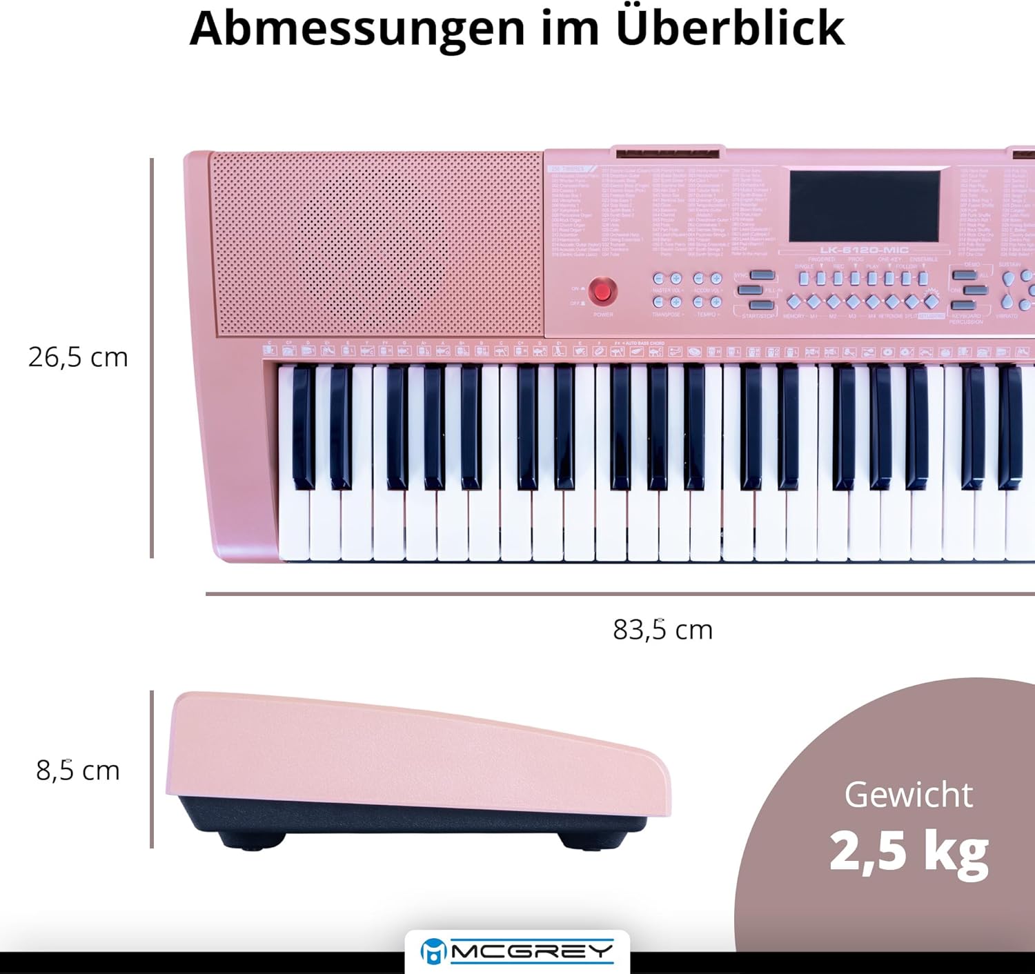 255 SUONI - Il pianoforte LK-6120-MIC offre una ricca selezione di suoni, quindi il divertimento non scompare mai. Naturalmente include il classico suono del pianoforte, ma anche strumenti come il sassofono, il violino e molti altri. 255 RITMI DI ACCOMPAGNAMENTO - Grazie ai 255 ritmi di accompagnamento integrati, soprattutto i principianti di pianoforte troveranno subito il ritmo giusto, dalla discoteca alla bossa nova al valzer, viene offerta un'ampia varietà. FUNZIONE DI REGISTRAZIONE - I tuoi brani possono essere facilmente registrati utilizzando la funzione di registrazione integrata. Un microfono è già incluso nella fornitura. PROMUOVERE LA CREATIVITÀ - La tua voce suona direttamente dagli altoparlanti della tastiera tramite il microfono. Cantare e suonare musica allo stesso tempo promuove intensamente le capacità di coordinazione. NEL SET CON SUPPORTO PER TASTIERA X E CUFFIE - oltre alla tastiera, questo set include un supporto regolabile in altezza e cuffie di alta qualità