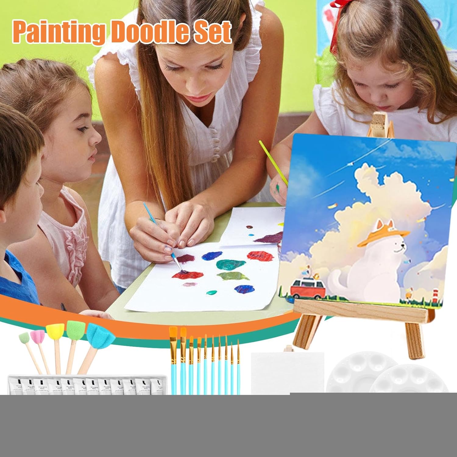 Vernici Lavabili e Sicure: Vernici acriliche con colori vivaci e formula sicura per bambini, facilitano la pulizia con acqua garantendo creatività organizzata senza macchie permanenti Espressione Artistica Precoce: Sviluppa capacità motorie fini e incoraggia la creatività nei bambini da 3 anni in su con attività di apprendimento divertenti, ideale per esplorazioni artistiche e sviluppo delle abilità pratiche. Regalo Emozionante: Vivete esperienze artistiche creando decorazioni murali uniche, rafforzando i legami familiari con questo set completo che diventa un regalo creativo e personale Soluzione per Dipingere all'Aperto: Progettato per la portabilità, questo set include custodia che garantisce facilità durante gli spostamenti, offrendo praticità ad appassionati in cerca di ispirazione artistica ovunque Set versatile: Dotato di 10 mini, cavalletto in legno e componenti necessari, questo kit pittorico completo sostiene il tuo percorso creativo con praticità