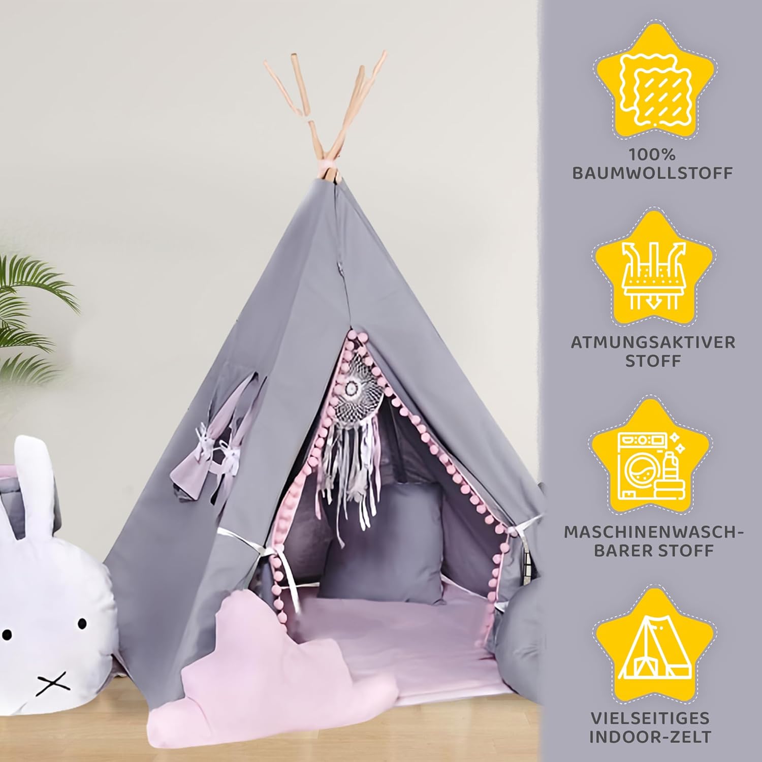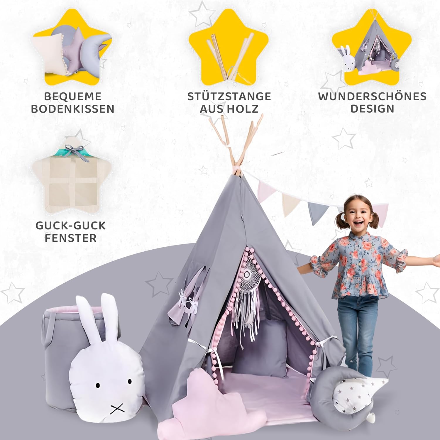 ✅[Ü𝐛𝐞𝐫𝐫𝐚𝐬𝐜𝐡𝐮𝐧𝐠𝐬𝐠𝐞𝐬𝐜𝐡𝐞𝐧𝐤] - Stai cercando un modo per sorprendere i tuoi bambini e suscitare il loro entusiasmo? La tenda Tipi Rainbow Kids per bambini delizierà i tuoi bambini perché potranno progettarla e decorarla secondo i loro desideri: un rifugio perfetto sia per coccolarsi che per leggere 𝐊𝐢𝐧𝐝𝐞𝐫𝐳𝐞𝐥𝐭]- Un lussuoso rifugio per piccoli avventurieri. Questa tenda dal design elegante offre divertimento durante la lettura, l'esplorazione di mondi fantastici e il gioco con gli amici. Un'esperienza senza tempo e di alta qualità per bambini avventurosi ✅[𝐌ü𝐡𝐞𝐥𝐨𝐬𝐞 𝐌𝐨𝐧𝐭𝐚𝐠𝐞] - Prova la rapida installazione della nostra tenda leggera per bambini in teepee per ragazzi o ragazze, l'installazione è rapida e semplice, quindi puoi giocarci fuori o dentro senza eventuali problemi. Uno stabilizzatore è incluso per garantire la stabilità incrollabile del tipi ✅[𝐅𝐞𝐚𝐭𝐮𝐞𝐬] - Scopri la sicurezza e la raffinatezza senza tempo con la nostra camera per bambini con tenda teepee. I pali di legno accuratamente testati che raggiungono un'altezza di 1,60 m forniscono un supporto sicuro, mentre le finestre di ventilazione garantiscono una temperatura ottimale nell'area di gioco. Il pavimento da 1,10 x 1,10 m in morbido cotone al 100% garantisce un comfort duraturo. Facilmente lavabile a 30°C ✅[𝐌𝐢𝐭 𝐙𝐮𝐛𝐞𝐡ö𝐫] - Scopri l'eleganza senza tempo con il nostro set da 8 pezzi per tenda da gioco per bambini. Questa collezione comprende un teepee, un'accogliente coperta, 4 cuscini, una stamina e un cestino per i giocattoli reversibile. Regala ai tuoi figli la libertà di sognare e giocare. Questo set è fatto a mano nell'UE e l'acchiappasogni non è incluso ✅[𝐌𝐢𝐭 𝐤𝐥𝐞𝐢𝐧𝐞𝐦 𝐙𝐮𝐛𝐞𝐡ö𝐫] - Il set con piccoli accessori comprende la tenda tipi, il tappetino e due cuscini. La borsa nel tipi è solo con gli accessori, l'acchiappasogni non è incluso ✅ [𝐎𝐡𝐧𝐞 𝐙𝐮𝐛𝐞𝐡ö𝐫] - Il tipi senza accessori è solo il tipi