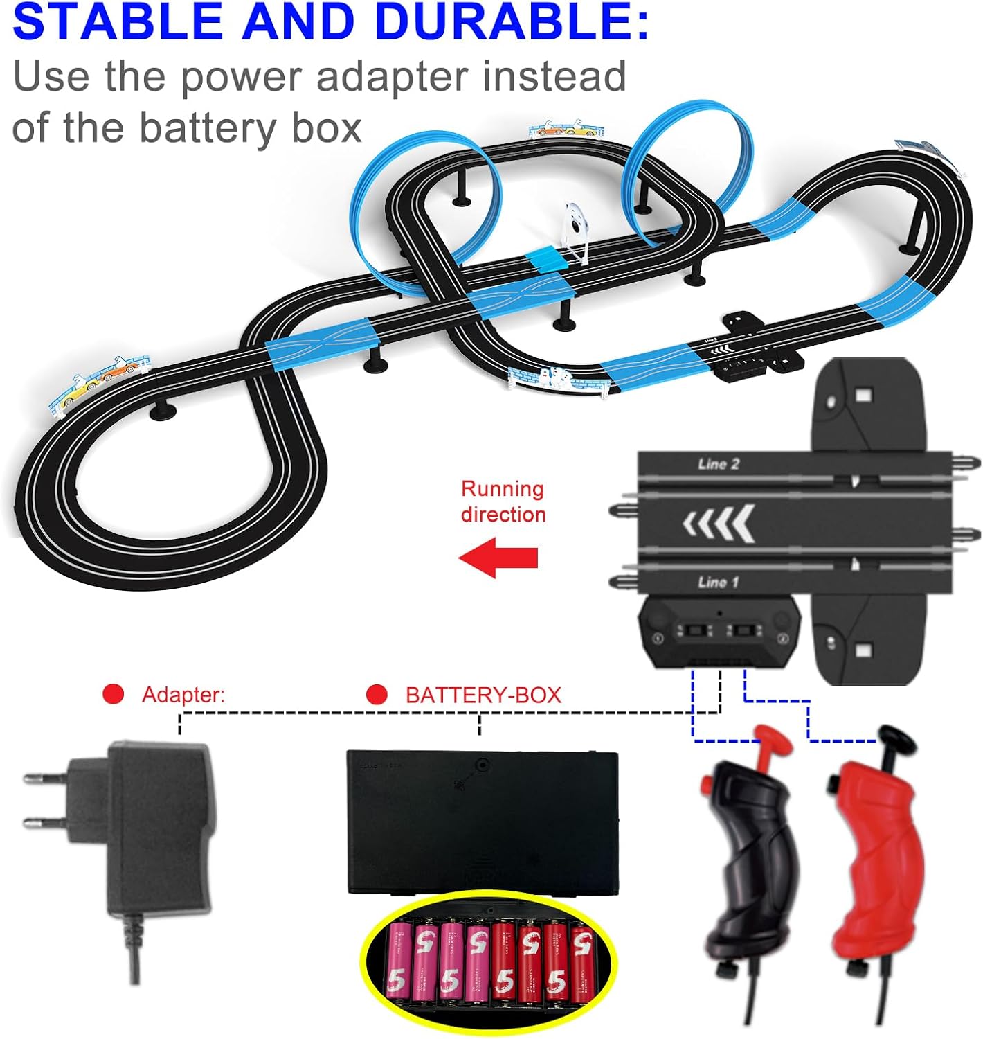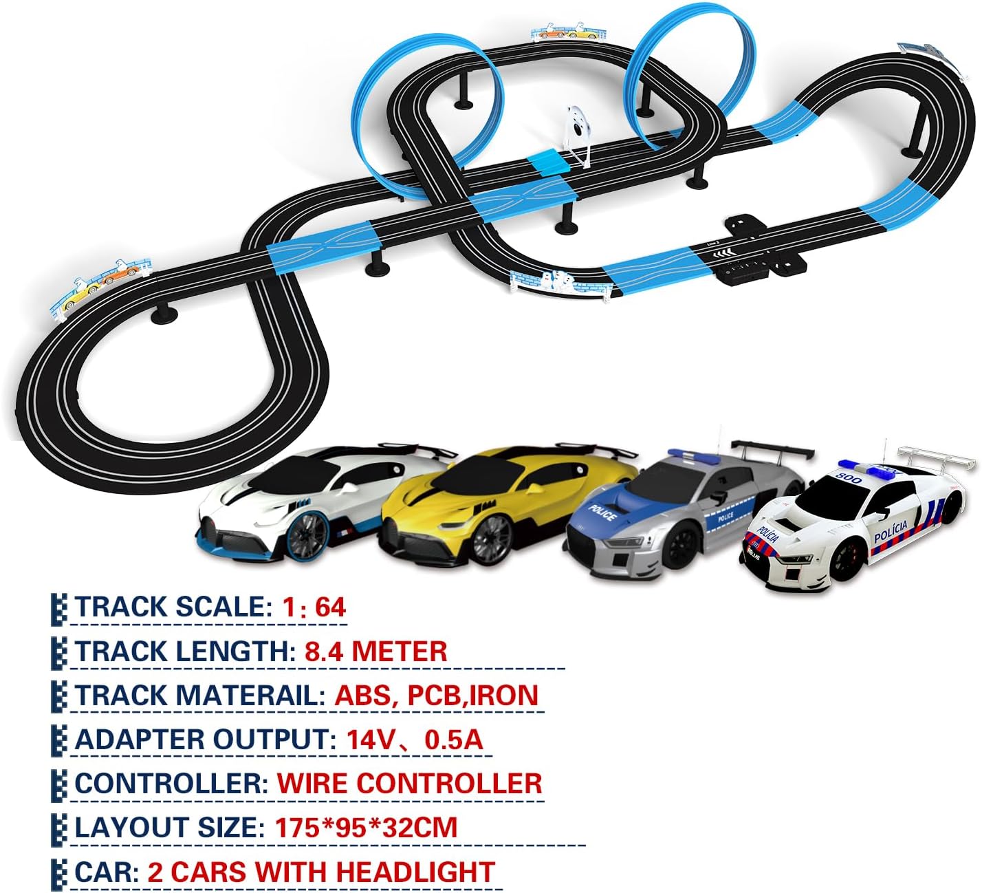 Super veloce: prova la potenza e la super velocità di un'auto da pista in scala 1:64, che raggiunge velocità di circa 370 mph! Questa vettura è più veloce di qualsiasi altro prodotto simile sul mercato e ti offre l'esperienza di corsa più bella di sempre. Pista da corsa giocattolo per bambini con slot car elettrica: 4 auto con licenza Deliciated con fari a LED e potente base magnetica. Le auto vanno bene e super veloci. La pista è alimentata in due modalità: elettrica o con 8 batterie AA (non incluse), consentendo al tuo bambino di divertirsi correndo a casa o in viaggio. Design del binario facile da montare e smontare: il nuovo binario è facile da montare. Assicurati che le parti del binario siano correttamente agganciate. Ecco le tante combinazioni possibili. Il circuito aumenta la giocabilità del prodotto e la difficoltà della gara, che risulterà più emozionante e divertente per i bambini. Regalo perfetto: realizzato in plastica ABS ecologica, sicura e non tossica, di alta qualità e durevole. Non dannoso per i bambini. È una buona scelta di giocattoli per i bambini a Pasqua, Natale, Halloween, Ringraziamento, Capodanno, ecc. Se hai domande sul prodotto, non esitare a contattarci, ti risponderemo entro 24 ore.