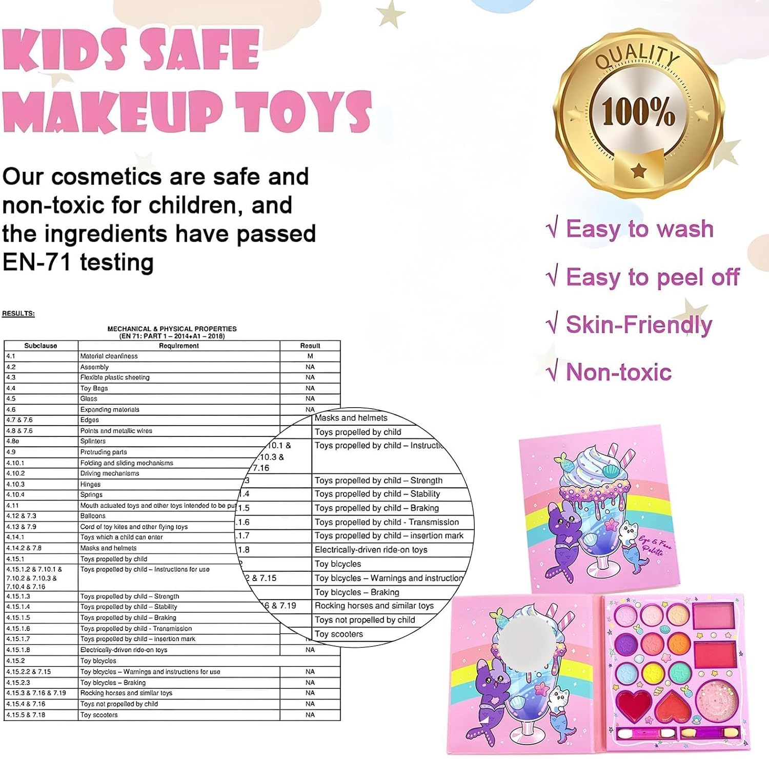 Set trucco per bambini: stimola la creatività dei tuoi bambini con il nostro set trucco per bambini e ragazze. Ogni set contiene una custodia per il trucco per bambini per truccatori principianti. Il set trucco per ragazze è dotato di un mini specchio che può essere visto chiaramente dall'alba al tramonto. Il nostro set per il trucco per ragazze è dotato di un sistema di stoccaggio pieghevole magnetico, che è il gioiello definitivo per gli amanti dell'ordine. Sicurezza e non tossicità: attribuiamo grande importanza alla sicurezza del nostro set per il trucco per bambini e ci assicuriamo che ogni prodotto del nostro set per il trucco per ragazze sia realizzato con ingredienti non tossici. È delicato come una brezza primaverile e consente ai bambini di esplorare la loro creatività nel trucco. Set trucco per bambini solubile in acqua: non solo divertente ma anche pratico, il nostro kit trucco per bambini è dotato di colori lavabili per il viso facili da lavare dopo una giornata di gioco. È rilassante come una ninna nanna e assicura che i bambini possano godersi l'esperienza del trucco delle loro ragazze senza preoccupazioni. Confezione adorabile e portabilità: confezionato in una confezione carina, il set di trucchi per bambini è l'accessorio perfetto per ogni amante del trucco per ragazze, sia a casa che gioca o al parco, per rimanere sempre bella e carina. Il miglior regalo per ragazze: stai cercando il regalo perfetto? Il nostro set di trucchi per bambini e ragazze è ideale per Natale, compleanni o qualsiasi occasione speciale. È un regalo che continua a regalare divertimento e ricordi. Il set per il trucco per ragazze sarà sicuramente popolare tra le ragazze e i loro amici, rendendolo una scelta eccezionale per qualsiasi celebrazione.