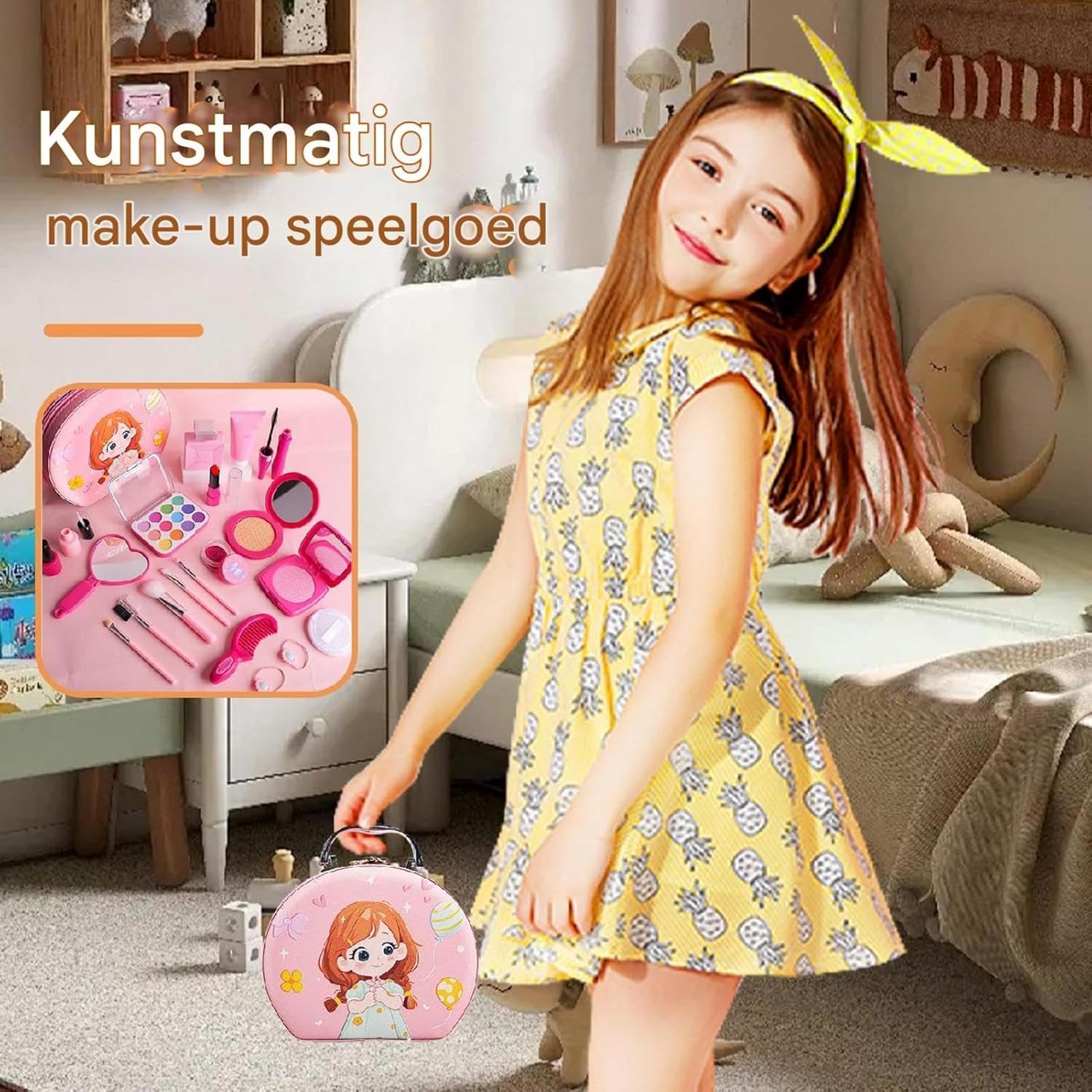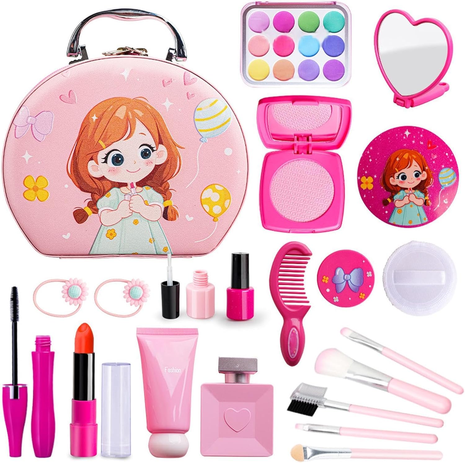 Qualità eccellente: il morbido silicone, l'ABS e la schiuma EVA utilizzati per realizzare questo set di trucchi per bambini sono sicuri per far giocare ed esplorare la propria immaginazione senza sostanze nocive. 【Emozionante set da gioco cosmetico】 Questo set è realizzato con colori vivaci e trame reali, garantendo sicurezza con materiali non applicabili. Aiuta a comprendere le funzioni cosmetiche e aumenta l'immaginazione attraverso una simulazione squisita Accessori abbondanti: palette di ombretti, rossetti, piumini, pennelli: questo set stimola l'immaginazione in quanto include tutti gli strumenti per il trucco quotidiano che consentono alle ragazze di esprimere il loro senso unico di bellezza. Incoraggia la socievolezza: incoraggia tuo figlio a giocare con amici e familiari mentre pratica importanti abilità sociali come la condivisione, il lavoro di squadra e la comunicazione. Questo set di trucchi fantasy migliora le relazioni interpersonali e promuove lo sviluppo sociale. Regalo perfetto: perfetto da regalare, inizia l'eccitazione di diventare un "truccatore" e scoprire la passione per lo stile. Regala fantasia e ore di divertimento creativo