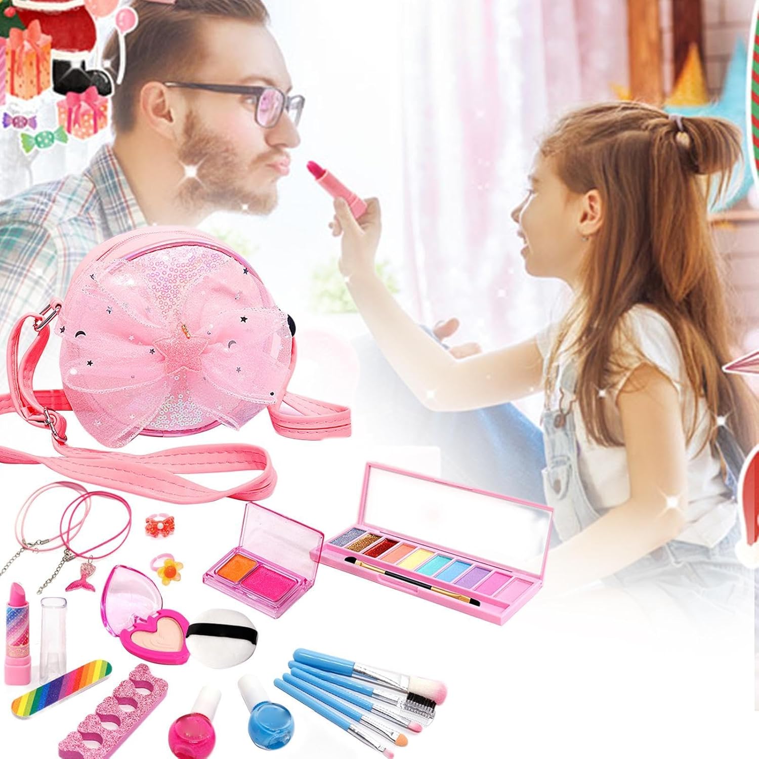 Incoraggia la creatività: progettato per la gioia e la sicurezza, questo ricco set di trucchi per ragazze consente alle piccole principesse di trascorrere ore di divertimento giocando. Include accessori per unghie, un velo, una borsa per il trucco e vari accessori per il trucco Delicato sulla pelle per i bambini: ispira l'immaginazione del tuo bambino con il nostro trucco lavabile per bambini. Realizzato con ingredienti delicati sulla pelle, questo set è perfetto per far giocare e sperimentare i bambini. E si lava via facilmente con acqua e sapone per un divertimento senza preoccupazioni. Pulito e portatile: con più scomparti e una maniglia, il nostro set per il trucco lavabile per bambini è compatto e pulito, facilitando l'organizzazione degli accessori per il trucco. Inoltre, è facile da trasportare e perfetto per essere in movimento. Incoraggia l'esplorazione: dai ai tuoi bambini la libertà di creare i propri look con il nostro set di trucchi lavabili per bambini. Goditi avventure artistiche e artigianali e impara l'importanza del riordino responsabile. Ispira la loro creatività mentre intraprendono il viaggio della creazione del trucco e scoprono ancora più modi per divertirsi. Regalo a sorpresa: prepara la tua piccola principessa per una festa con questo fantastico kit per il trucco. Perfetto per compleanni, Halloween e feste, è un regalo unico che porterà un sorriso. Ideale per le ragazze dai 3 ai 12 anni che amano i giochi di ruolo e si sentono benissimo