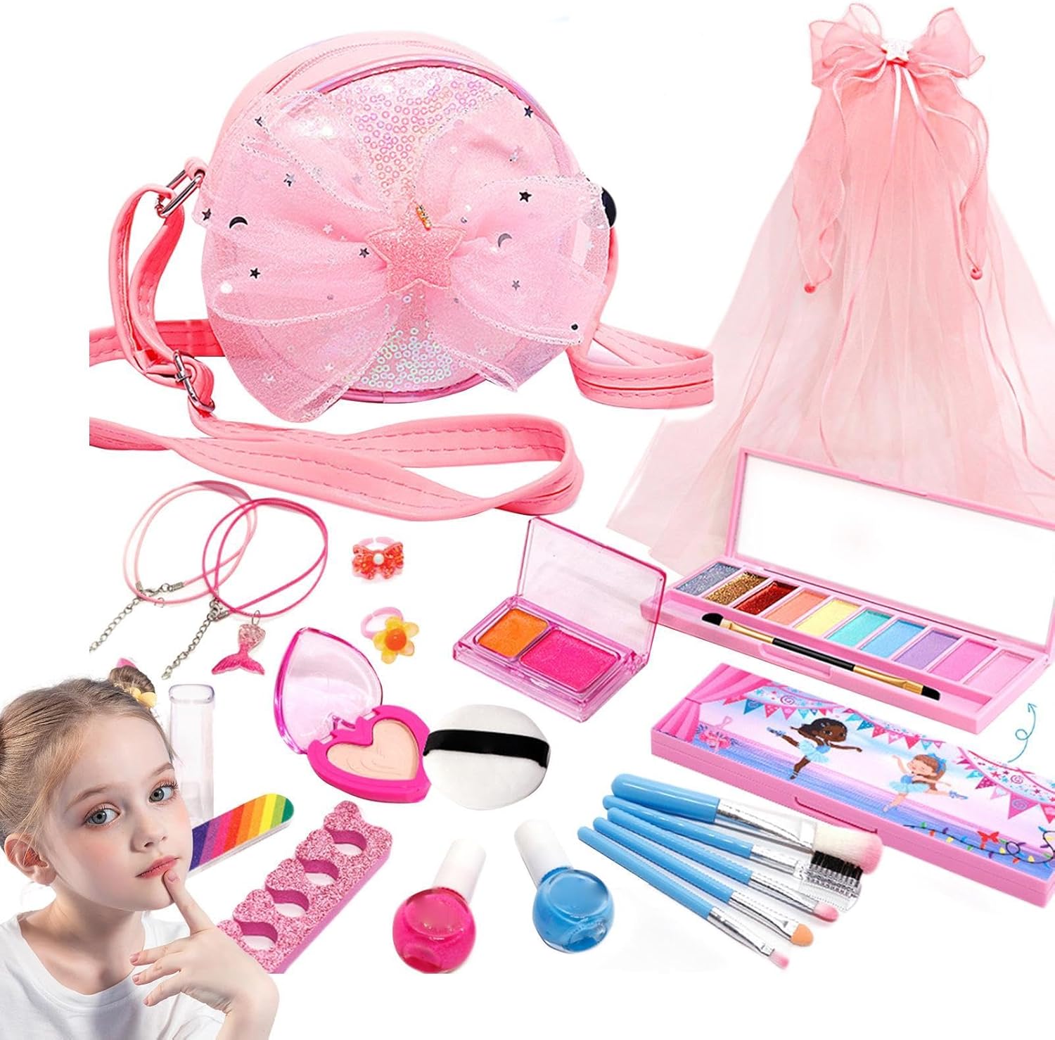 Molteplici opzioni di gioco: dai alla tua piccola principessa tutto ciò di cui ha bisogno con questo set di accessori per unghie, un set di trucchi per bambini con ombretto, rossetto, lucidalabbra e altro ancora. Viene fornito con strumenti per il trucco, velo e borsa per il trucco, questo set di trucchi per bambini aiuterà il tuo bambino a liberare la propria creatività e creare ore di fascino., Cosmetici adatti ai bambini: realizzato con materiali sicuri e delicati sulla pelle, questo set di trucchi per bambini è perfetto per le bambine. Lascia che tuo figlio sperimenti i cosmetici colorati che possono essere facilmente lavati con acqua e sapone dopo aver giocato. Disposizione Senza Sforzo: questo set di trucchi lavabile per bambini è dotato di scomparti multipli, una maniglia e un design compatto che consente una facile organizzazione degli accessori per il trucco. Inoltre, è anche portatile, il che lo rende facile da trasportare e perfetto per essere glamour in qualsiasi momento.,Trucco organizzato: Sblocca il potenziale dell'immaginazione con un set di trucco lavabile per bambini. Le bambine possono esprimersi e intraprendere avventure artistiche e artigianali, esplorare la creazione di trucchi con più possibilità di divertimento mentre imparano l'importanza di una pulizia responsabile.,Regalo speciale: aggiungi fascino alle celebrazioni delle bambine con questo set di trucco lavabile per bambini. Perfetto per Natale, feste e compleanni, permette ai bambini dai 3 ai 12 anni di giocare e sentirsi favolosi. Ideale per feste di ruolo, Halloween e presentazioni uniche