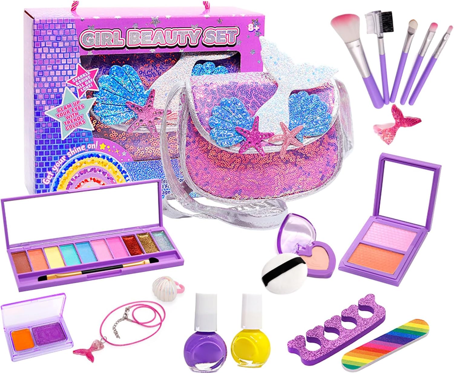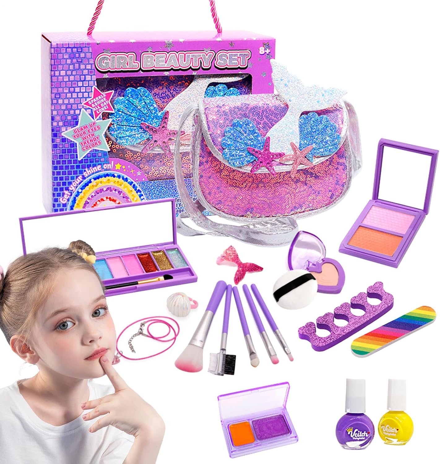 Sicuro e delicato sulla pelle: questo giocattolo per il trucco è realizzato con ingredienti sicuri e delicati sulla pelle, morbidi e delicati sulla pelle sensibile. Il trucco può essere facilmente lavato via con acqua e sapone, il che è comodo per i genitori e divertente per i bambini. I materiali idrosolubili sono ecologici e completamente sicuri per i bambini. Gestione efficiente del trucco: il nostro giocattolo per il trucco viene fornito con una custodia portatile e compatta che contiene molti scomparti per riporre ordinatamente tutti i tuoi accessori. Questo design ti consente di organizzare e trovare facilmente tutto ciò di cui hai bisogno per un'applicazione del trucco rapida ed efficiente, non importa dove ti trovi. Ispira la creatività: intraprendi un viaggio nel trucco con tuo figlio per ispirare la sua creatività. Guarda i suoi sogni diventare realtà attraverso avventure artistiche e artigianali, creando look unici con effetti diversi ad ogni sessione di travestimento. Sorpresa di compleanno unica: emozionante set di giochi di trucco per ragazze. Con la perfetta combinazione di colori vivaci, texture scintillanti e accessori realistici, risveglia la creatività e stimola l'immaginazione. Regalo ideale per compleanni, Halloween o qualsiasi evento che richieda una sorpresa indimenticabile. Set trucco per bambini: ispira l'immaginazione di tuo figlio con il nostro set completo per trucco per bambini, che include un pennello per ombretto, pennello per fard, pennello per unghie, set di accessori per unghie con adesivi, separatori e lime e una spaziosa borsa per il trucco per tenere tutto insieme.