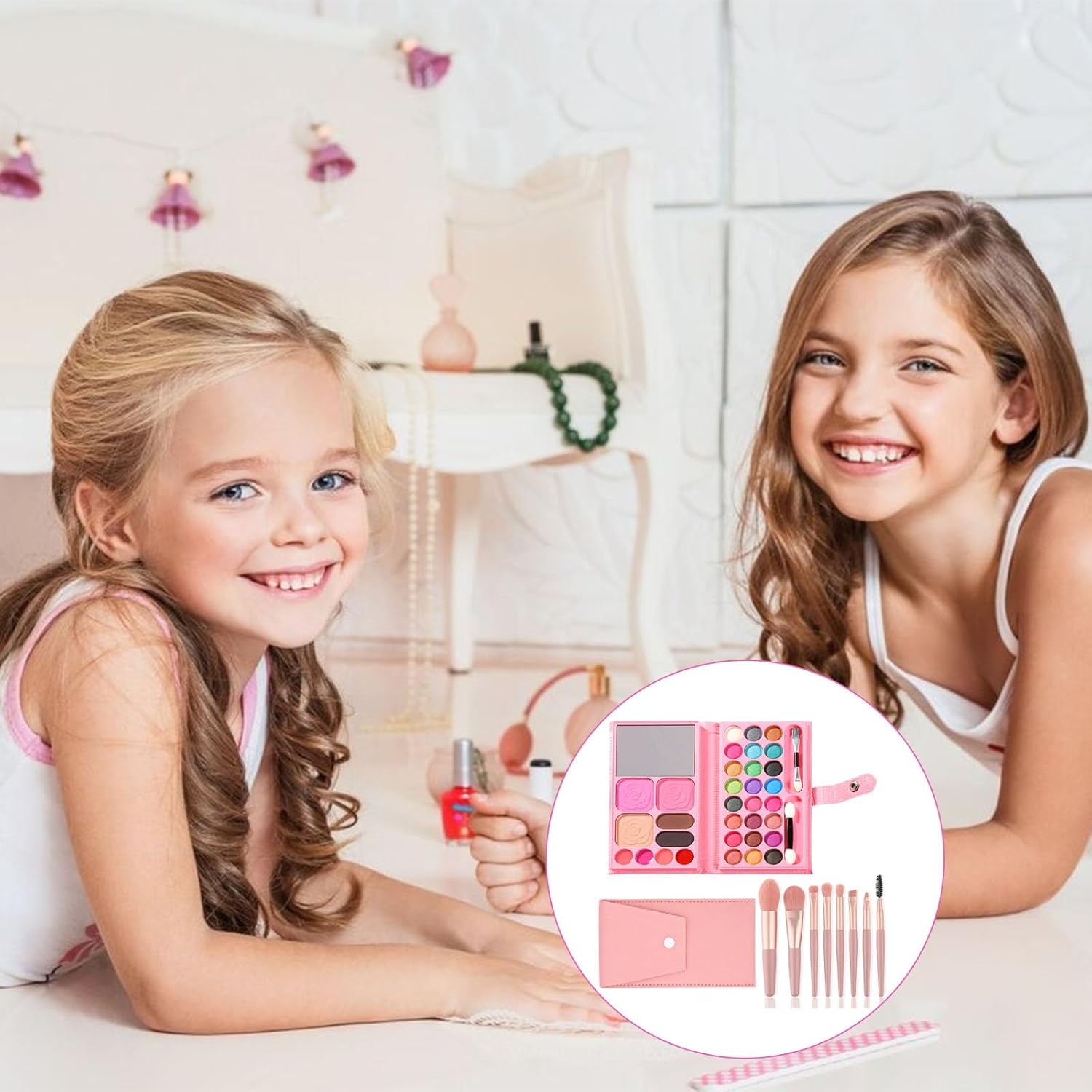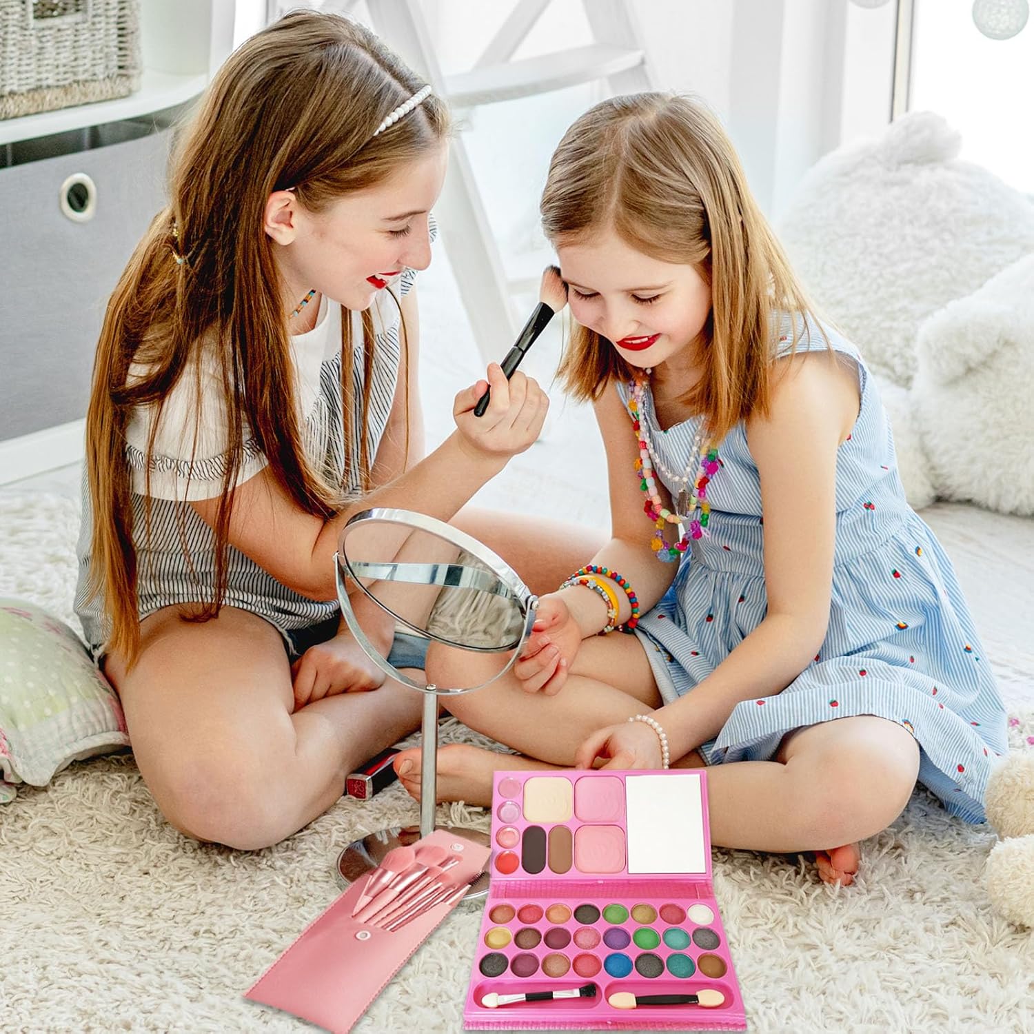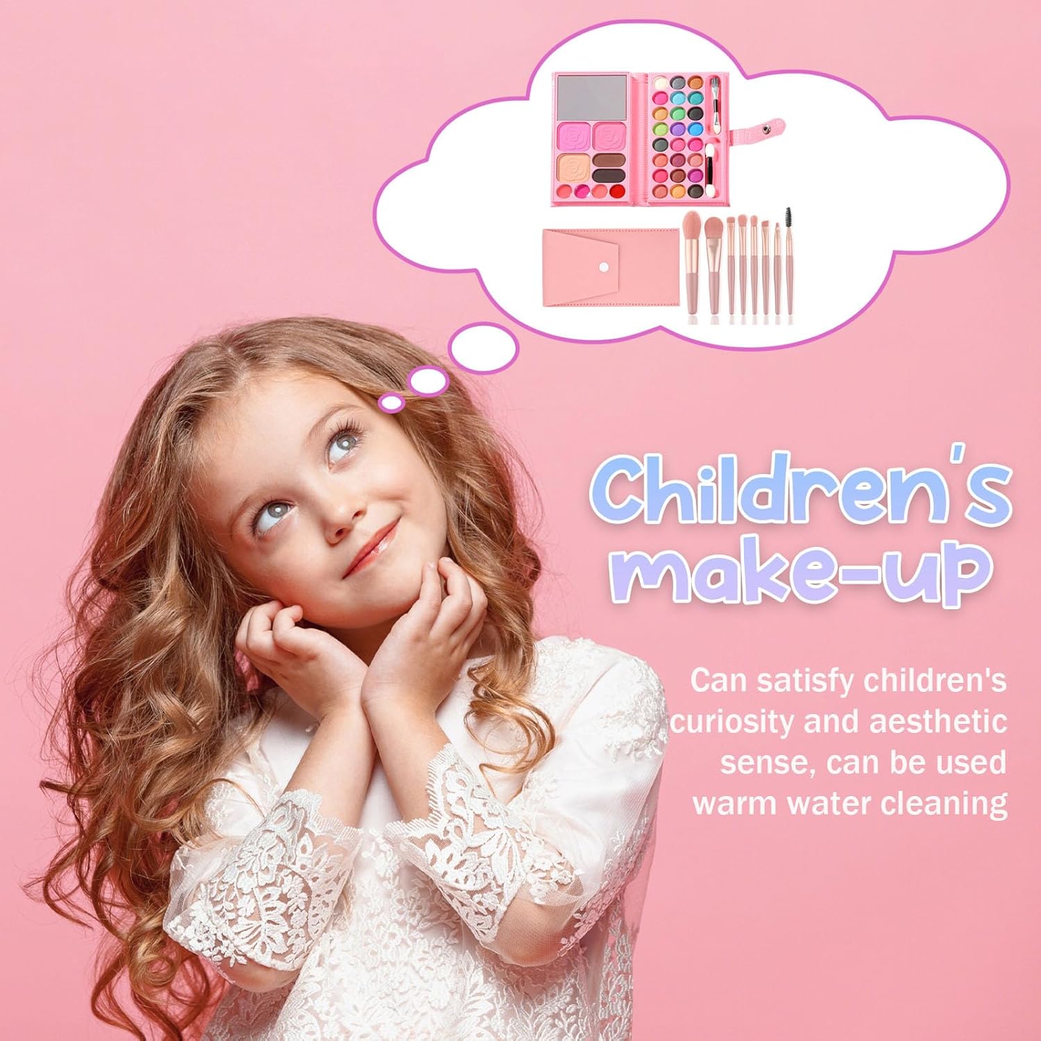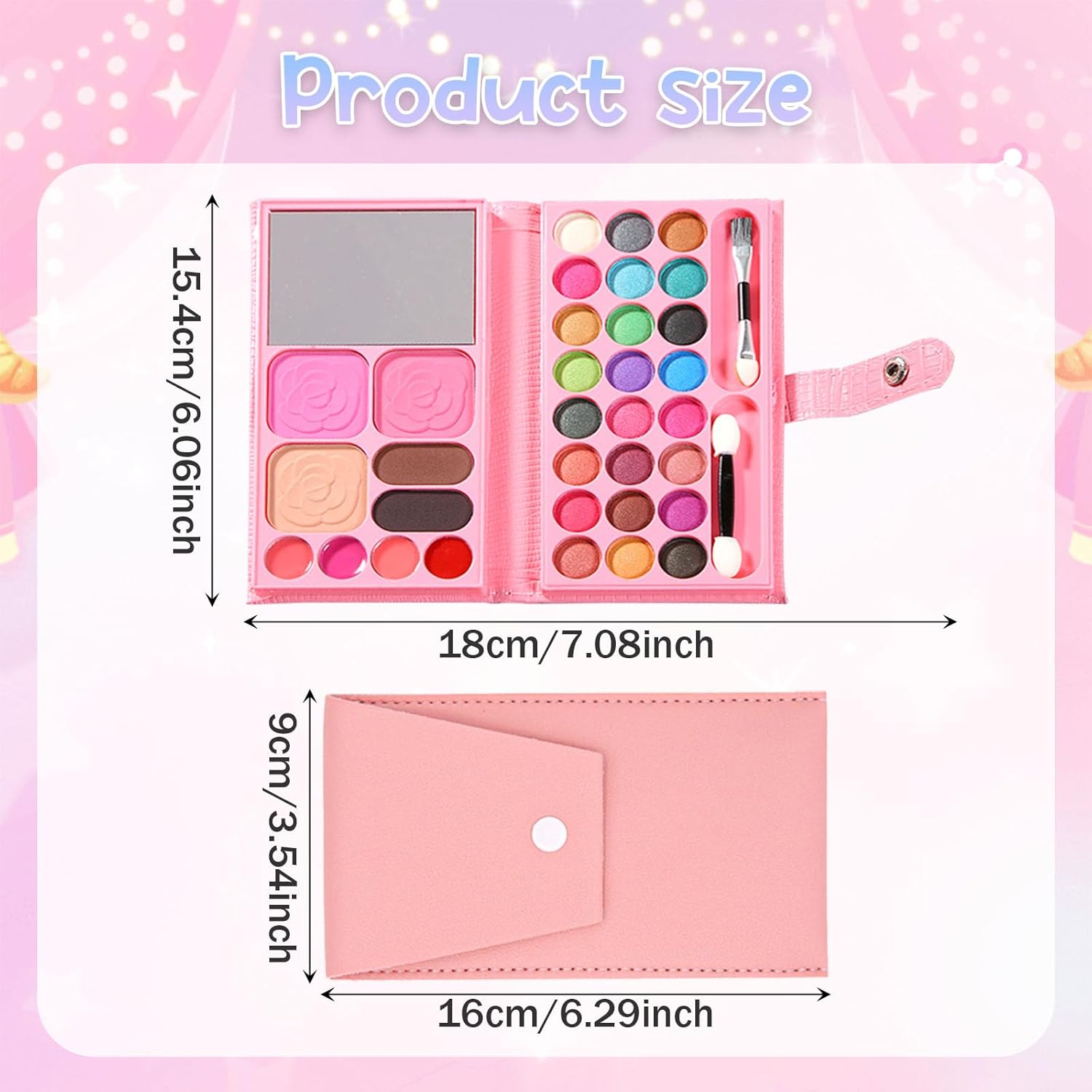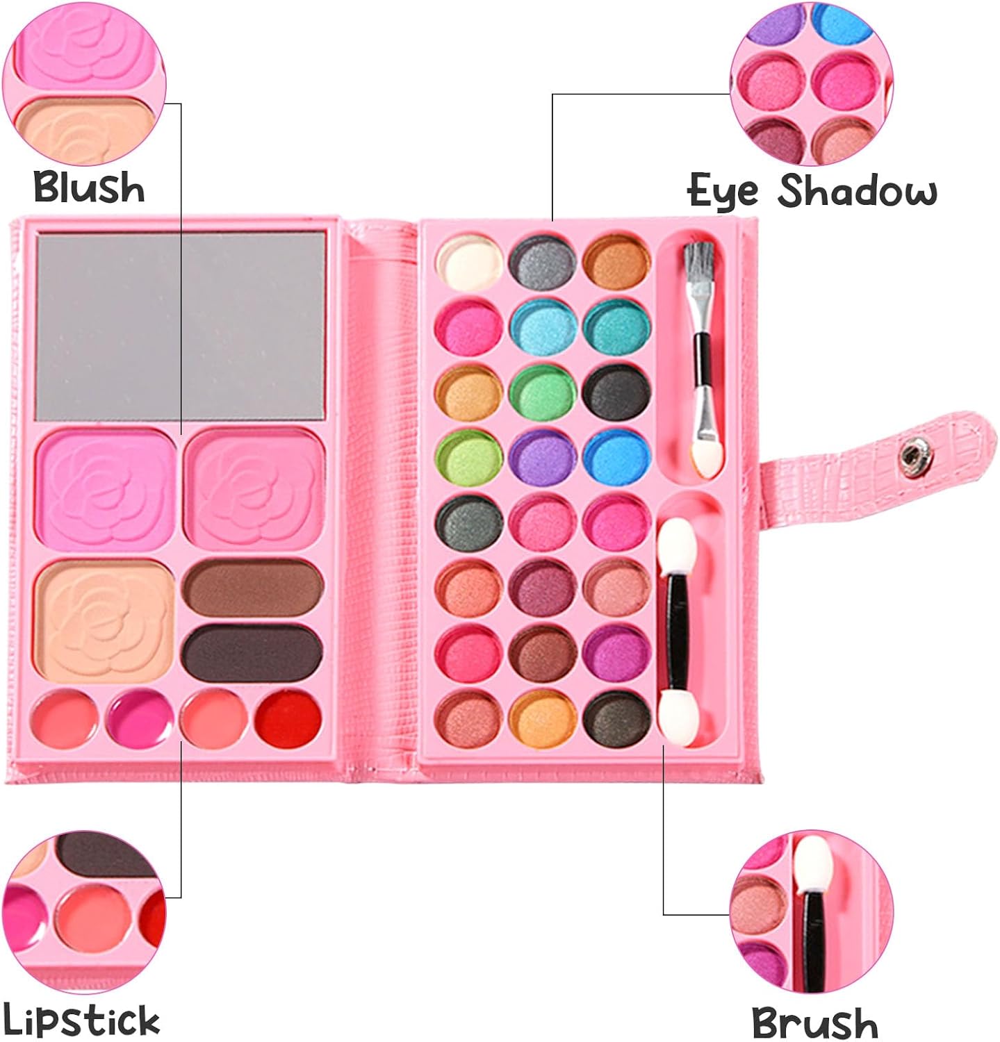 KIT TRUCCO PER BAMBINI DI ALTA QUALITÀ: questo set trucco per bambini realizza l'amorevole sogno di bellezza di ogni piccola principessa! Con formula idrosolubile, sicura e atossica, senza conservanti, morbida e non irritante Poltrona multifunzionale: 33 colori trucco con 8 diversi pennelli trucco, morbidi e non dannosi per la pelle. Un set completo di trucchi per bambini permette a tua figlia di diventare la piccola principessa più abbagliante tra la folla. USI VERSATILI: La nostra tavolozza di trucchi per bambini è delicata e portatile, la tua piccola principessa può usarla prima delle vacanze, dei compleanni, degli spettacoli sul palco, così il tuo bambino può vestirsi e giocare per ore sempre e ovunque. Trucco lavabile: stai certo che la tua piccola principessa è truccata. I nostri giocattoli per il trucco lavabili per ragazze possono soddisfare la curiosità e l'amore per la bellezza di tuo figlio. Può essere lavato in acqua tiepida con un asciugamano e non danneggerà la pelle durante la rimozione del trucco. Il miglior regalo per ragazze: per regalarlo alla tua adorabile piccola principessa, insegnale a truccarsi! Vero set trucco lavabile per bambine, regalo cosmetico per Halloween, Natale, festa dei bambini, festa di compleanno, festa di carnevale.