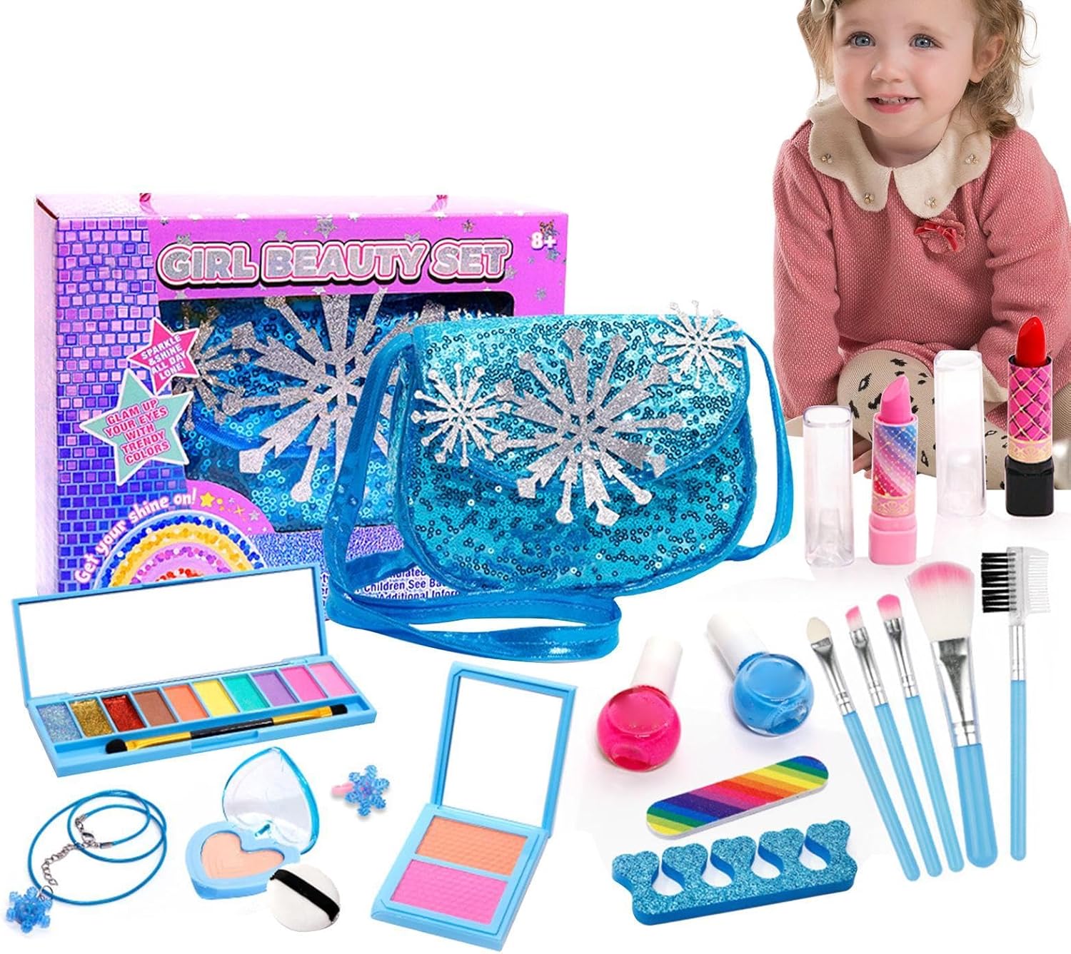 Trucco reale sicuro e lavabile: questo kit per il trucco per bambini è progettato per offrire alle ragazze l'esperienza del vero trucco pur essendo completamente sicure. Tutti gli articoli per il trucco sono lavabili, rendendo la pulizia facile e senza preoccupazioni. Nessun disordine, nessuna confusione: solo divertimento per il tuo piccolo! Divertente esperienza di travestimento: perfetto per travestirsi, questo set contiene tutto ciò di cui una ragazza ha bisogno per sentirsi una principessa. Dai lucidalabbra e fard agli accessori divertenti, permette alla tua ragazza di esplorare il suo lato creativo e fingere di essere una truccatrice. IDEALE PER BAMBINI DA 3 A 12 ANNI: Questo kit trucco per ragazze è progettato specificamente per le bambine da 3 a 12 anni, consentendo un'esperienza pratica che è allo stesso tempo divertente ed educativa. Incoraggia il gioco fantasioso, aumenta la fiducia in se stessi e offre un'attività divertente da godersi da soli o con gli amici. REGALO PERFETTO PER COMPLEANNI E NATALE: Cerchi un regalo unico? Questo vero set di trucchi per bambini è un regalo fantastico per ogni occasione, soprattutto come regalo di Natale o di compleanno. È perfetto per le bambine che amano i giochi da principessa e vogliono sentirsi glamour pur essendo creative. Atossico e sicuro per i bambini: i genitori apprezzeranno il fatto che questo set per il trucco non sia tossico e sia sicuro per i bambini ed è realizzato con materiali di alta qualità che non irritano la pelle sensibile. Questo è il modo ideale per sperimentare il trucco senza dover scendere a compromessi sulla sicurezza.