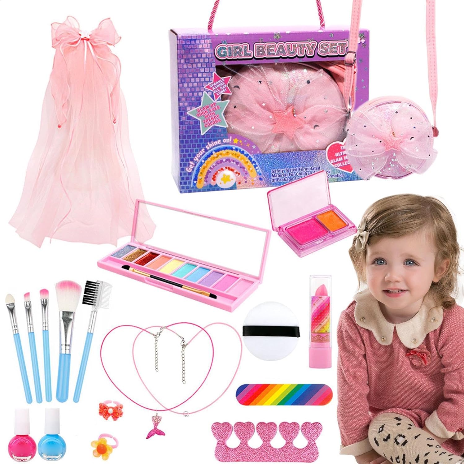 Set di trucchi per bambini: libera la creatività di tuo figlio con questo set di trucchi lavabile. Include accessori per unghie, un velo, una borsa per il trucco e gli elementi essenziali per il trucco come pennelli, ombretto e lucidalabbra. Realizzato per la sicurezza e il divertimento, così la tua piccola principessa potrà divertirsi di più. Delicato sulla pelle dei bambini: ispira l'immaginazione del tuo bambino con i nostri trucchi lavabili per bambini. Realizzato con ingredienti delicati sulla pelle, questo set è perfetto per far giocare e sperimentare i bambini. E si lava via facilmente con acqua e sapone per un divertimento senza preoccupazioni Disposizione semplificata degli accessori: dotato di maniglia e numerosi scomparti, questo set trucco per bambini è compatto, pulito e portatile, semplifica la disposizione degli accessori e ne facilita il trasporto Trucco organizzato: lascia correre l'immaginazione con un set trucco lavabile per bambini. Le bambine possono esprimersi e impegnarsi in avventure artistiche e artigianali, esplorare la creazione di trucchi con opzioni più divertenti mentre imparano l'importanza del riordino responsabile. Regalo speciale: aggiungi il fascino femminile alle celebrazioni con questo set di trucchi lavabile per bambini. Perfetto per Natale, feste e compleanni. I bambini dai 3 ai 12 anni possono vestirsi e sentirsi benissimo. Ideale per feste di ruolo, Halloween e presentazioni uniche