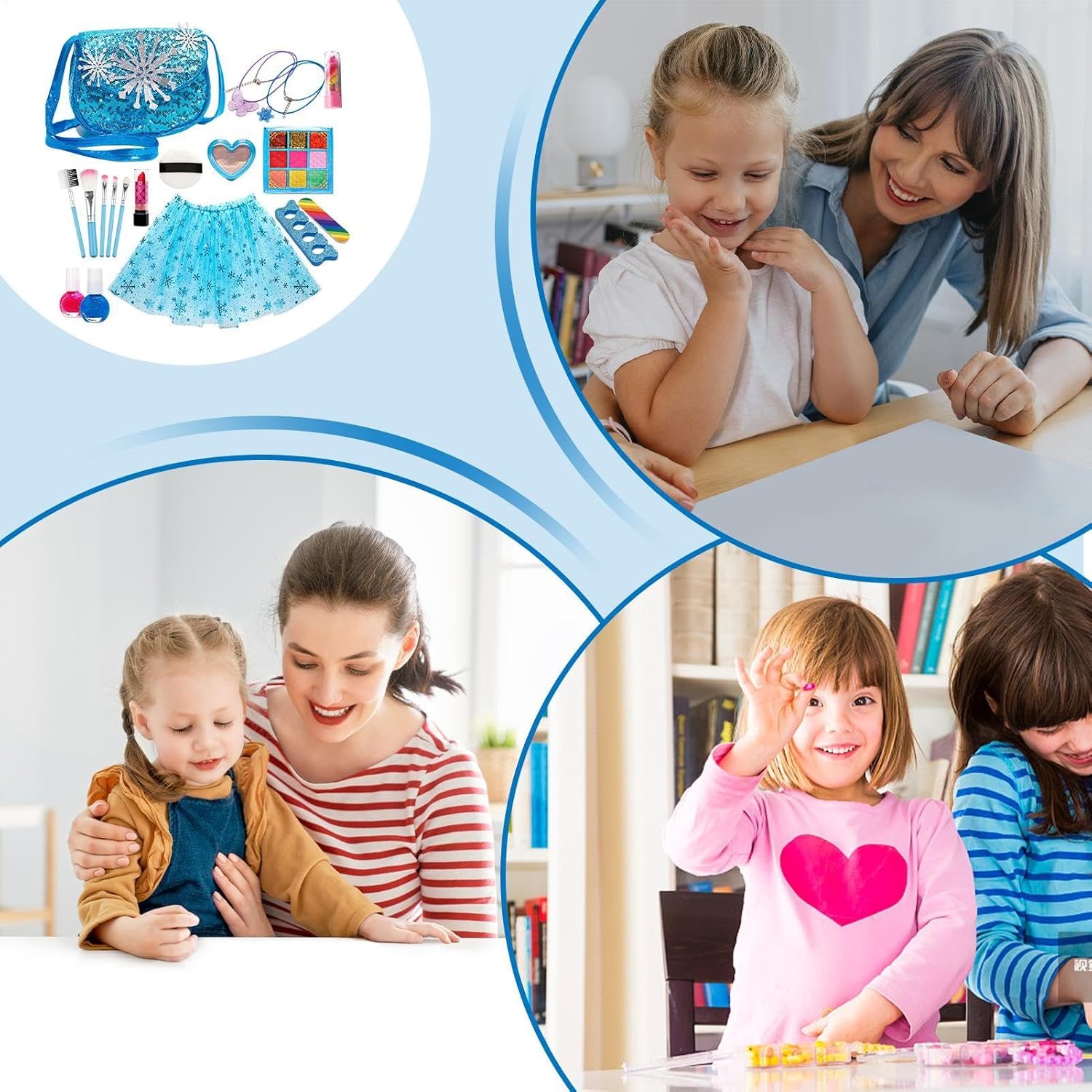【Kit trucco per bambine】 Con set di accessori per unghie, set di strumenti per il trucco e una spaziosa borsa per il trucco, questo set conveniente ha tutti i must per un momento di gioco emozionante. Include ombretto, rossetto, fard, cipria e lucidalabbra per un divertimento ancora maggiore e ha anche un separatore per unghie dei piedi e una lima per unghie per una preparazione professionale delle unghie. La robusta maniglia lo rende facile da trasportare in modo che il tuo bambino possa avere tutti i suoi must-have di bellezza ovunque Incoraggia il gioco fantasioso: il nostro set di trucco offre diverse tonalità con cui giocare, stimola la creatività e offre una piacevole esperienza di creazione di trucco per i bambini. È un'idea regalo unica che incoraggia il gioco lontano dagli schermi e ispira più ore di gioco divertente e creativo