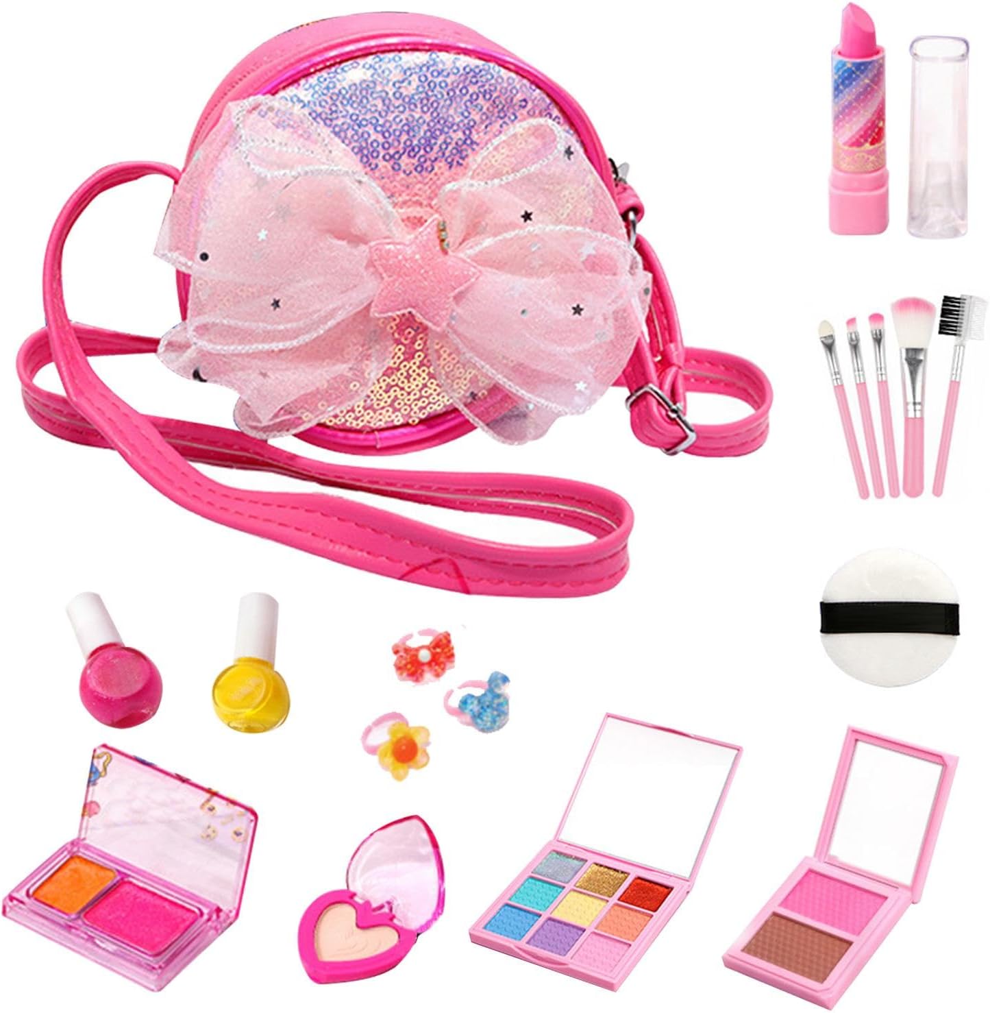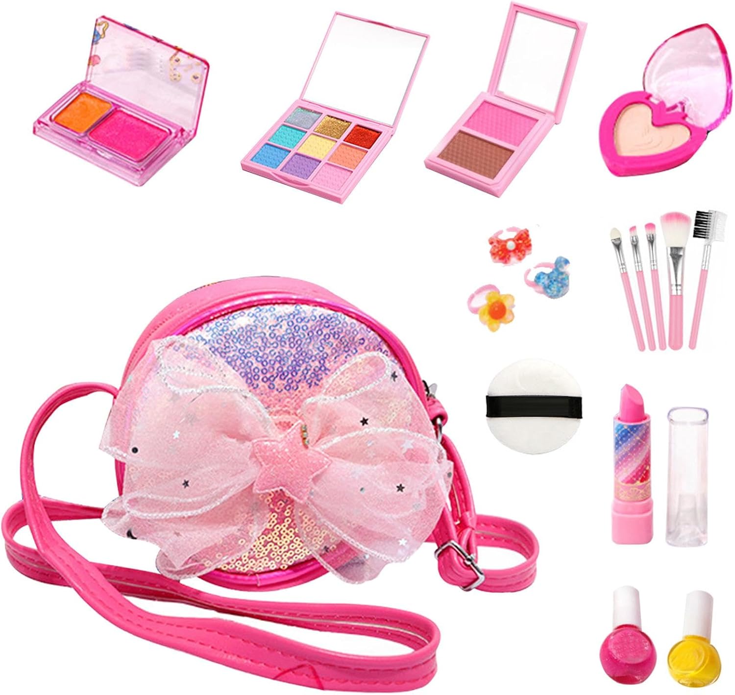 Set ideale per trucco e unghie per bambini: dotato di una borsa per il trucco, questo set offre una varietà di strumenti per il trucco e un set colorato di accessori per unghie che delizierà qualsiasi stilista Trucco a misura di bambino: scegli una bellezza sicura e sostenibile per il tuo bambino con il nostro set per trucco delicato e sicuro per la pelle. Realizzato con materiali sicuri ed ecologici e una formula solubile in acqua, garantisce un gioco creativo senza preoccupazioni e facile da rimuovere. Perfezione portatile: mantieni il trucco della tua piccola stilista organizzato e portatile con il nostro set di trucchi per ragazze. Compatta e versatile, la custodia rigida è dotata di scomparti multipli e di una maniglia per il trasporto per un facile trasporto e una conservazione ordinata. Una soluzione pratica per lo stilista outdoor nella tua vita. Ispira l'immaginazione: il nostro set di trucchi per ragazze per bambini offre un'esperienza di trucco divertente con una varietà di colori per effetti diversi. Incoraggiando l'espressione artistica e stimolando la creatività, tuo figlio potrà godersi ore di gioco fantasioso. Regalo imperdibile: questo set di trucchi per ragazze per bambini è l'aggiunta creativa ideale al gioco. È perfetto come regalo di compleanno unico, stimola l'immaginazione e il divertimento, offre ore di intrattenimento ed è un'idea regalo ideale per varie occasioni