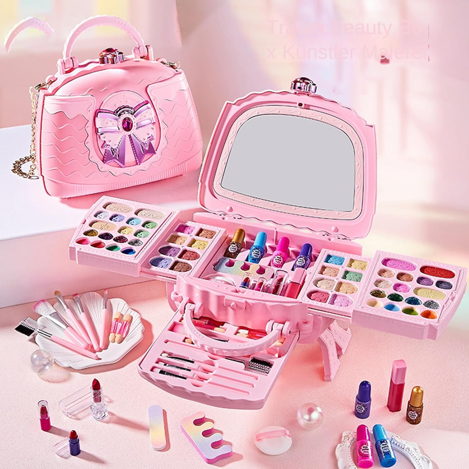 Set completo: questo set di trucchi per bambini offre pennelli, specchi, accessori e cosmetici multicolori per il gioco creativo. Sostiene lo sviluppo delle competenze artistiche attraverso una sperimentazione sicura e stimolante. Comodo trasporto: con il suo design adatto ai viaggi, il set di trucchi per bambini ha una solida maniglia per il trasporto, scomparti chiaramente organizzati e spazio per i giocattoli - per un trasporto senza problemi e un'organizzazione efficiente. Set da sogno principessa: risveglia l'immaginazione con un set da principessa dal design da sogno e accessori di gioco di ruolo per coinvolgenti esperienze di travestimento. Sviluppo delle abilità artistiche: combina l'apprendimento creativo con lo sviluppo artistico, consente la libera espressione delle idee attraverso esercizi interattivi di miscelazione dei colori per i bambini. Pulizia rapida: la formula idrosolubile con ingredienti naturali può essere facilmente rimossa con acqua e sapone per essere maneggiata facilmente dopo il gioco.