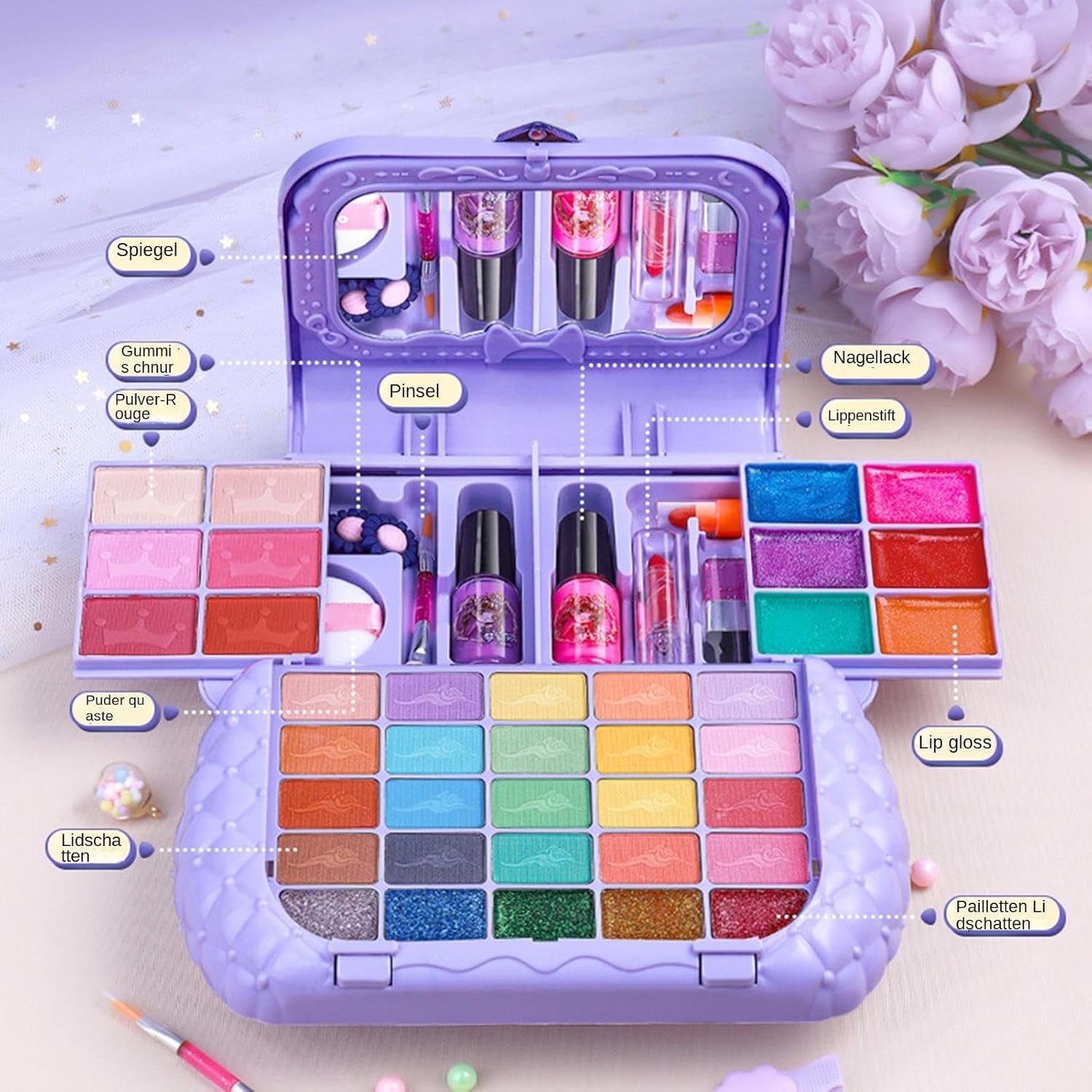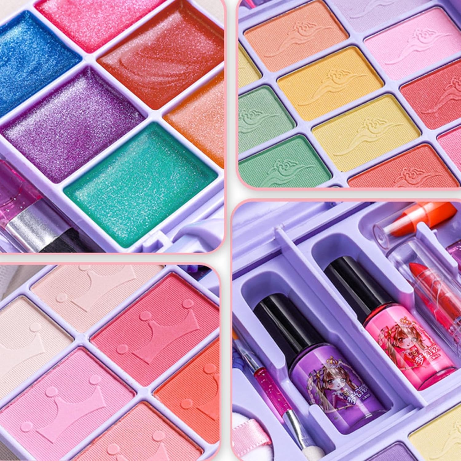 Esperienza di trucco giocosa: questo set di trucco per bambini contiene una vasta gamma di accessori, dando alle menti l'opportunità di sperimentare ed esplorare stili più creativi divertendosi con i giochi di trucco. Sicuro e innocuo: prenditi cura della pelle sensibile del tuo bambino con il nostro set di trucco per bambini. Realizzato con materiali delicati e delicati sulla pelle, garantisce che il tuo bambino non venga danneggiato fornendo allo stesso tempo un'esperienza di gioco divertente. Facile da trasportare: con questo set di trucchi per bambini che può essere facilmente portato ovunque, il tuo bambino potrà divertirsi di più con il trucco. Dotato di pratica maniglia, è perfetto per i viaggi o le feste. Versatile: regalati il fascino del trucco da favola con il cofanetto trucco ideale per i bambini. Perfetto per feste da principesse, compleanni e qualsiasi attività divertente per bambini, aggiungendo un tocco di brillantezza a qualsiasi gioco Regalo meraviglioso: questo set di trucchi per bambini è un regalo premium per le ragazze amanti del trucco, assicurando che siano tenute occupate e intrattenute durante le feste di compleanno, la Festa dei bambini o qualsiasi altra occasione